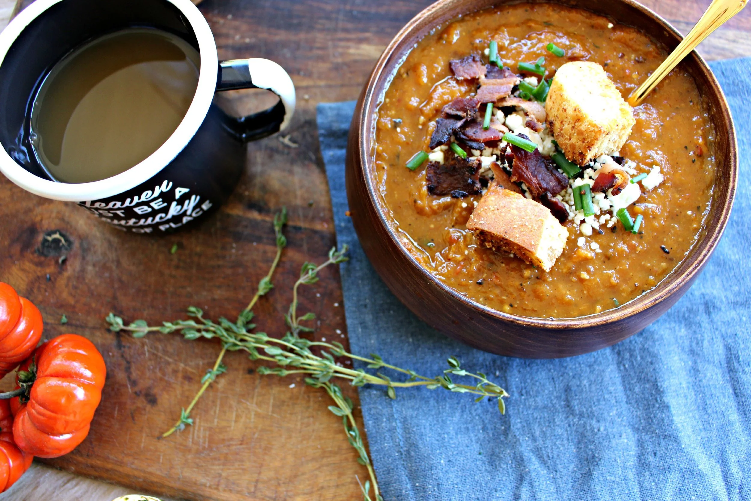 This butternut squash soup is something I have been craving lately as the seasons change. Roasting the vegetables with the bacon gives the squash an amazing smoky and deep flavor that sets this soup apart. Don't forget the toppings too as they add a bit of crunch and make this soup even better! Find the full recipe here.