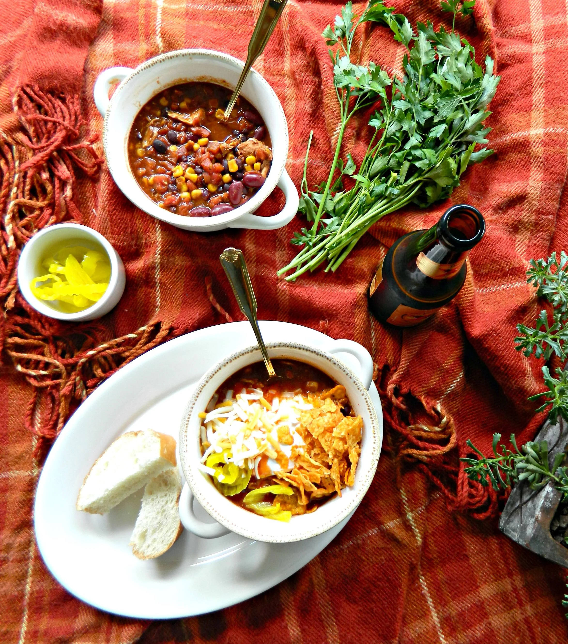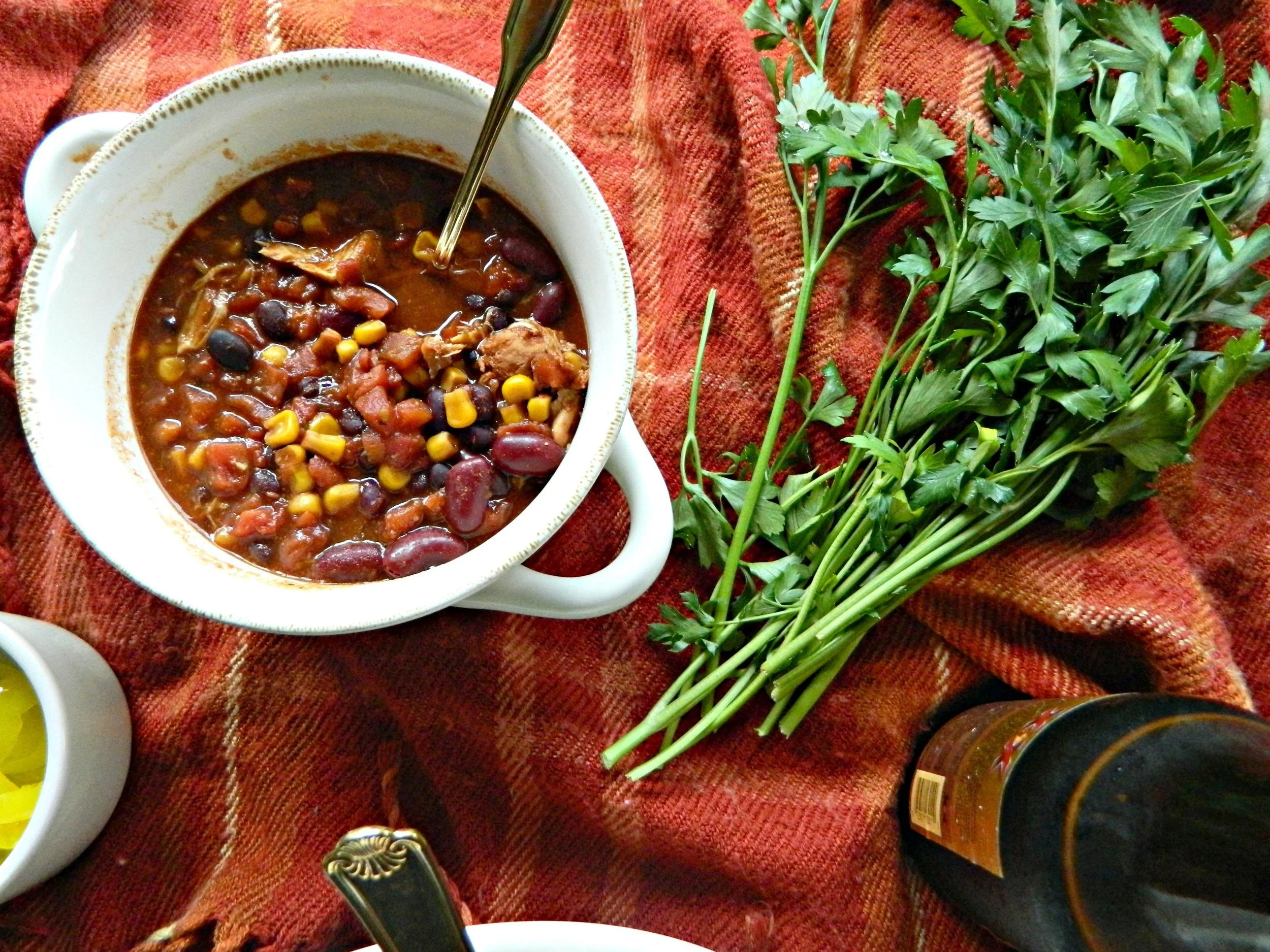 A crockpot staple for me, this recipe is too easy not to try and also super low calorie! Open a few cans, dump them in the crockpot, and you are good to go! The best part is all of the toppings that you can pile on this chili when serving! Find the full recipe here.