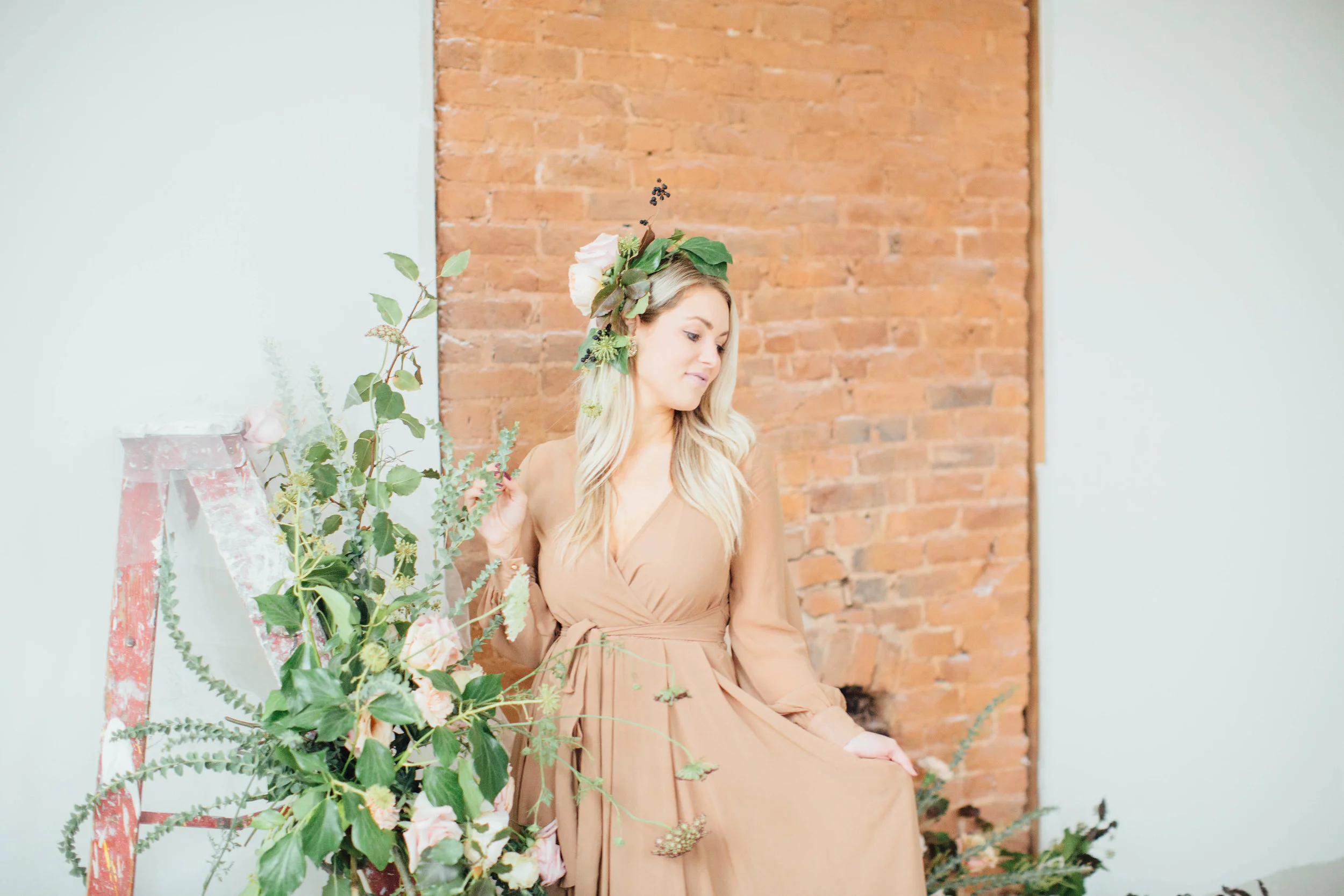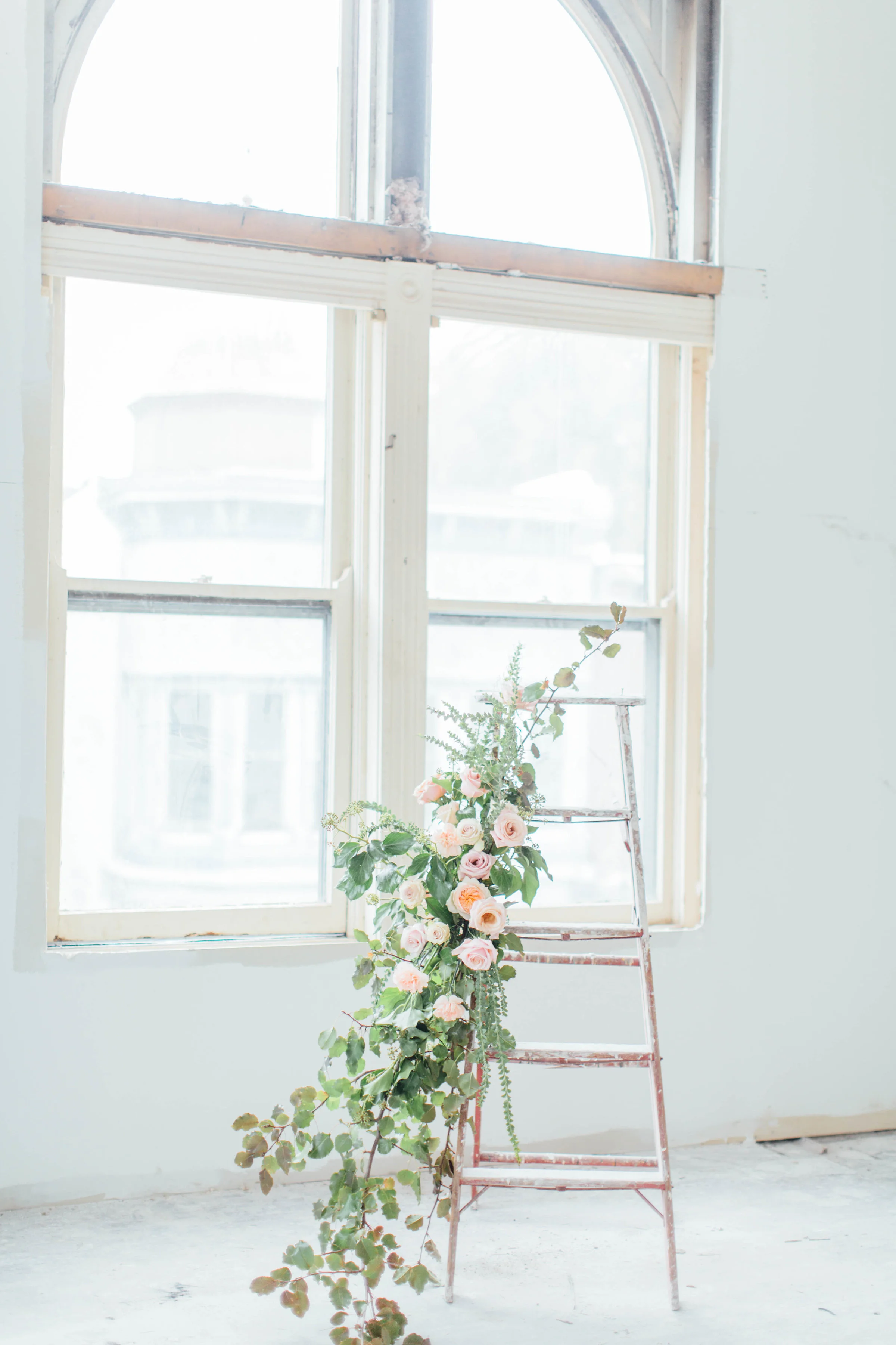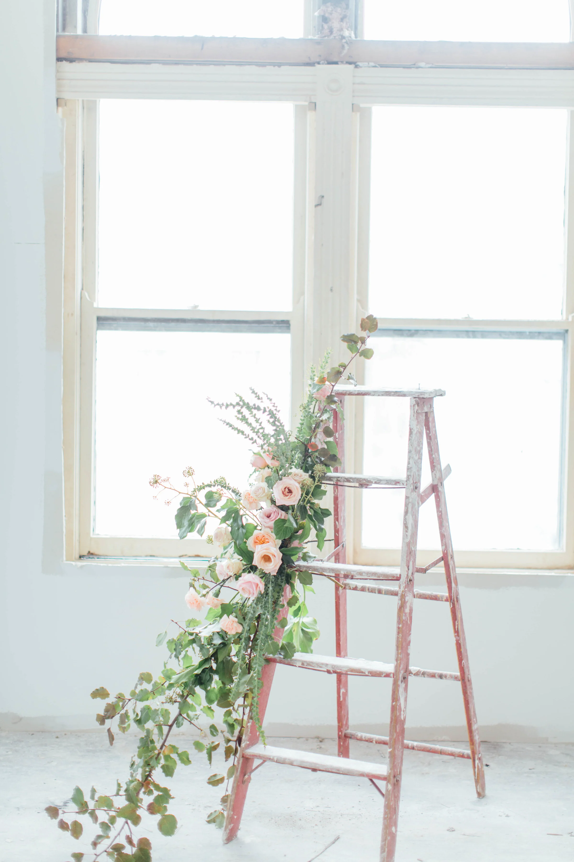 This past week I had the privilege of participating in the most fun styled shoot put together by the ladies of Blush Box + Co. to promote the opening of their new studio space. I'm so excited that they will also be a part of Gathered Mercantile and this shoot is just a small preview of all the gorgeous pieces they have to offer in their boutique! Brooke with On a Whim photography had such an amazing + unique vision for this shoot and the end product was even more beautiful than I imagined. I was thrilled to use the Amsden as the backdrop for these gorgeous photos and loved getting to show everyone the space. We shot everything in the upstairs corner office (soon to be Shop Twenty Something boutique). Zachary Brady Designs provided the most beautiful floral arrangements and even whipped up some stunning custom designs on the spot (like the ladder + fireplace arrangement). I loved getting to shoot with two of my best blogger friends, Kayla Weber + Candice Michelle (both of their blogs are linked below). Both of these ladies inspire me daily and I'm so happy to know them and have their support. Take a look at some of my favorite photos from the shoot below + be sure to check out all the vendors involved (I've linked them all as well).