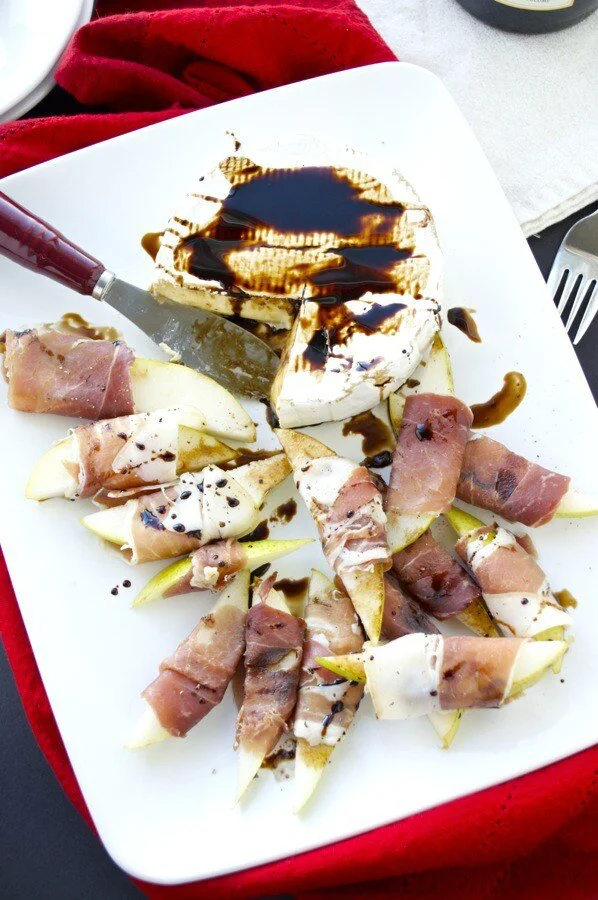 Brie, prosciutto, + pears- say no more! A little salty + a little sweet makes this an ideal appetizer plus it makes such a pretty spread!