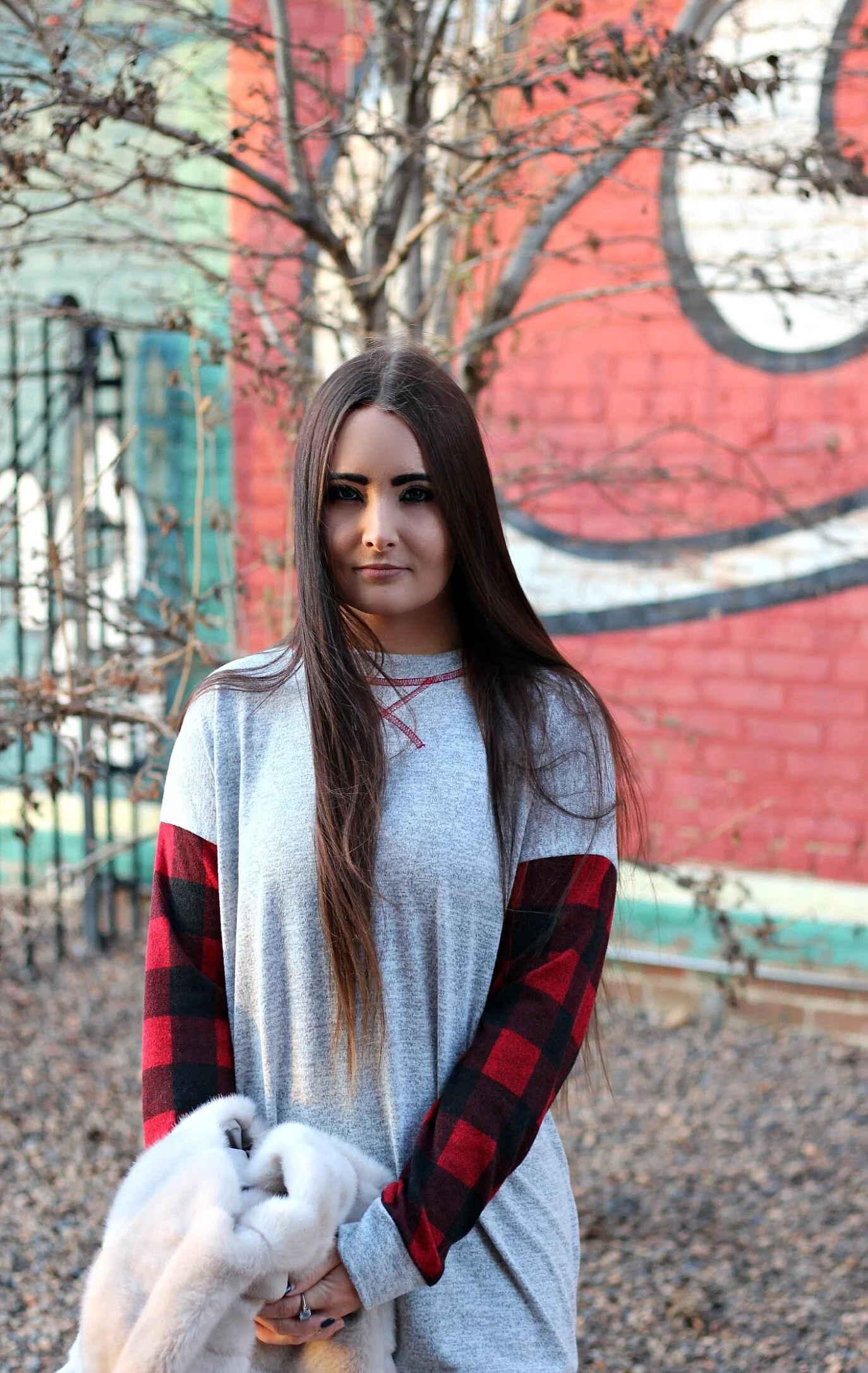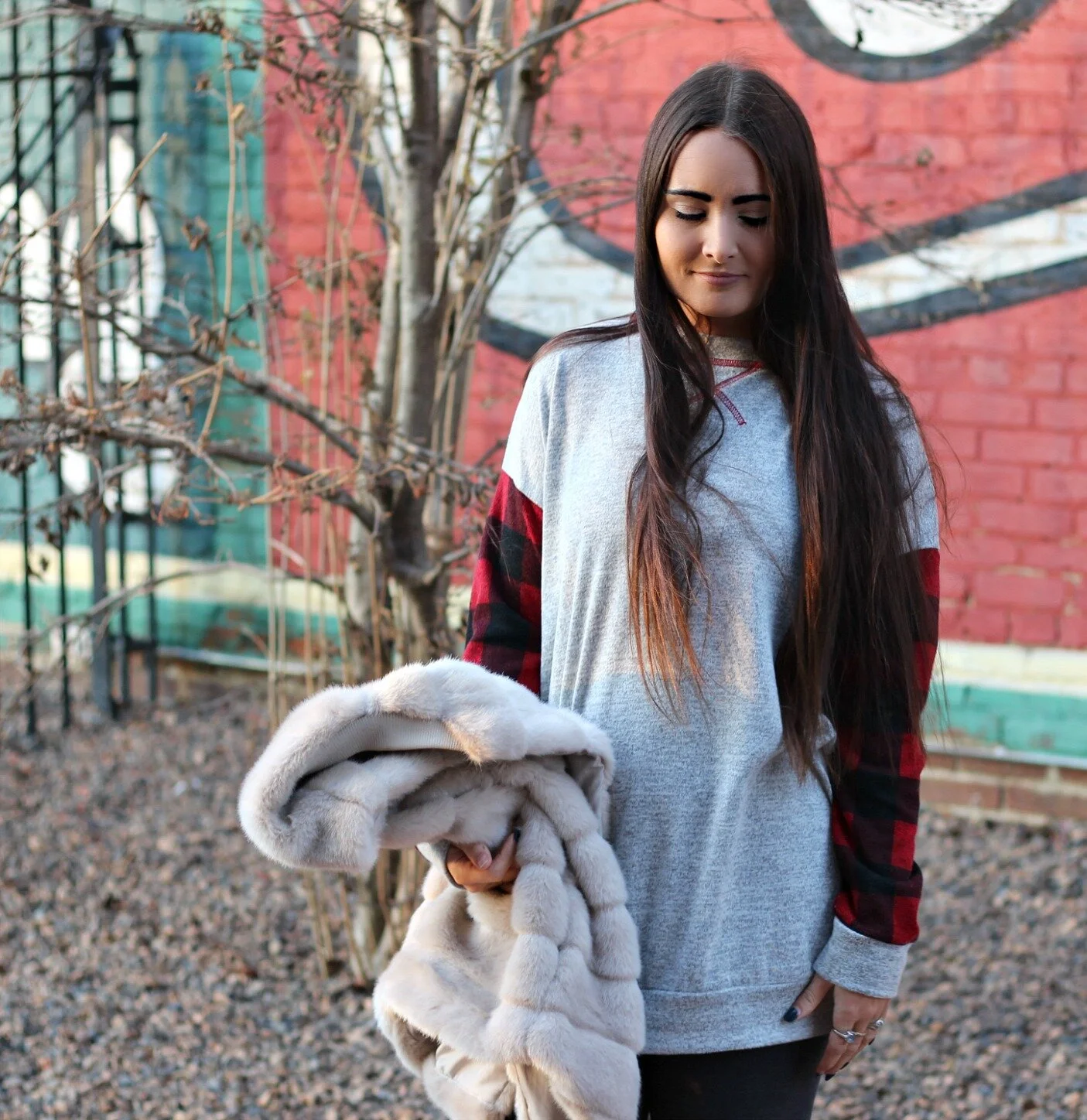 I'm all about cozy for the holidays and this top is a new favorite from Shop Twenty Something! It is one of the comfiest things I have ever worn and long enough to wear with leggings too. I love the cute buffalo plaid detail and the weight and material is warm but also perfect for layering. Grab one soon because they're selling fast! I've also linked the rest of my outfit including my fave leggings and winter boots above + below!