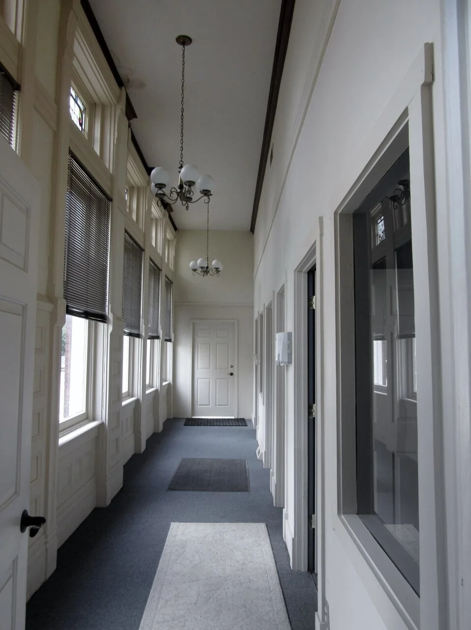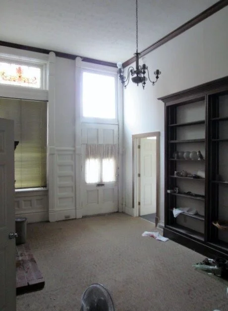 On the main floor there are 3 separate entrances/storefronts and our initial plans include a coffee shop, store/market highlighting local vendors + makers, and hopefully a beer hall or bourbon bar of some sort. The upstairs is now separated into four different office suites/studio spaces and we will be renting these after renovating them (so if you're in need of a nice office space in Versailles with views of Main Street, let me know- free decorating for your space included!). The building has been used for many things recently including political offices, police offices, etc. and is now separated into many small offices/cubicles on the main floor. We are going to knock out basically all the walls and completely open up the entire space, restoring the original 14 foot ceilings throughout and bringing back as much of the original character of the building as we can (unfortunately whoever renovated the building in the late 80's- early 90's did not do a great job in preserving many of its historical elements). We are excited to be working with an amazing team from Andover Construction and Burnworth Design on this project who specialize in historical commercial renovations.