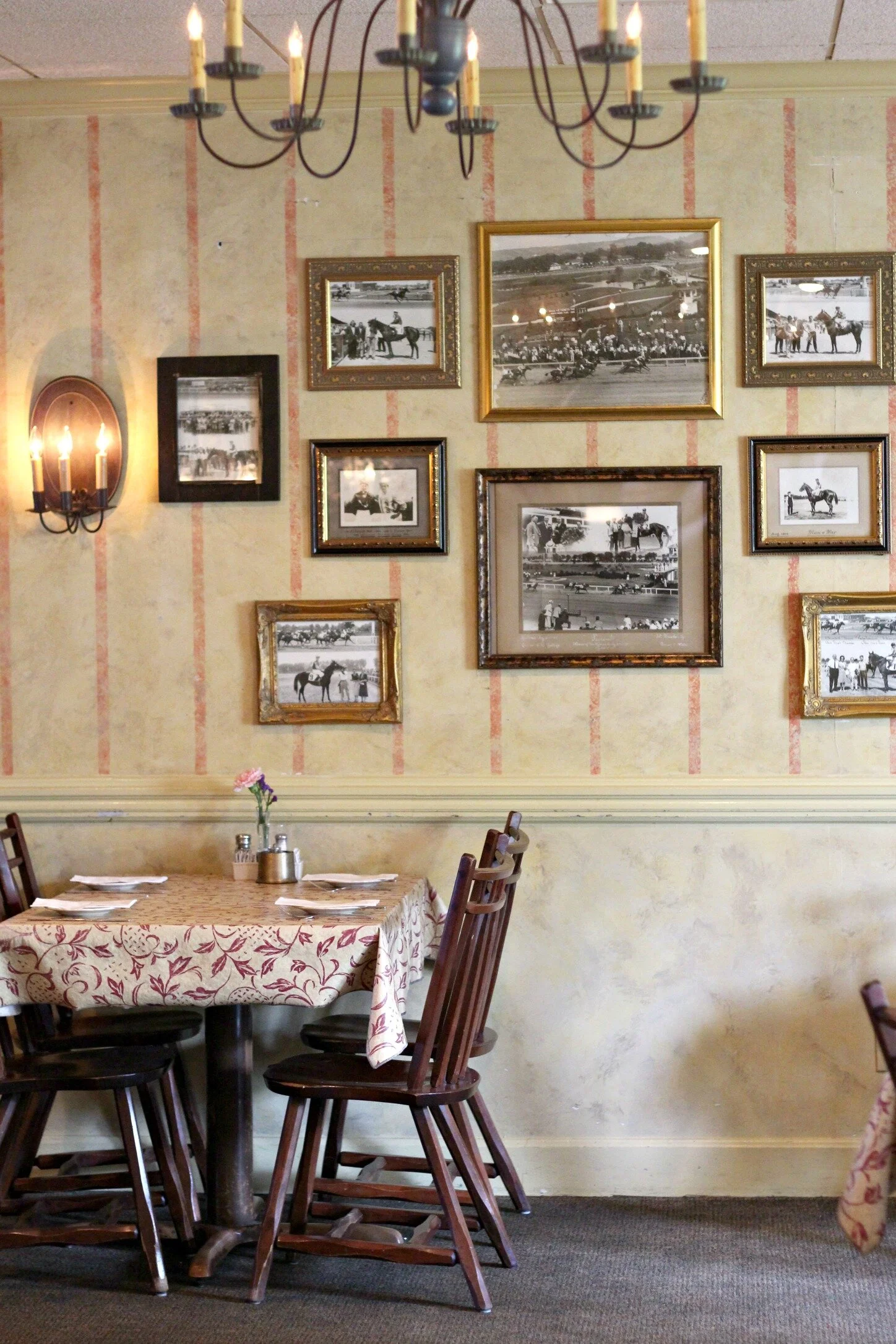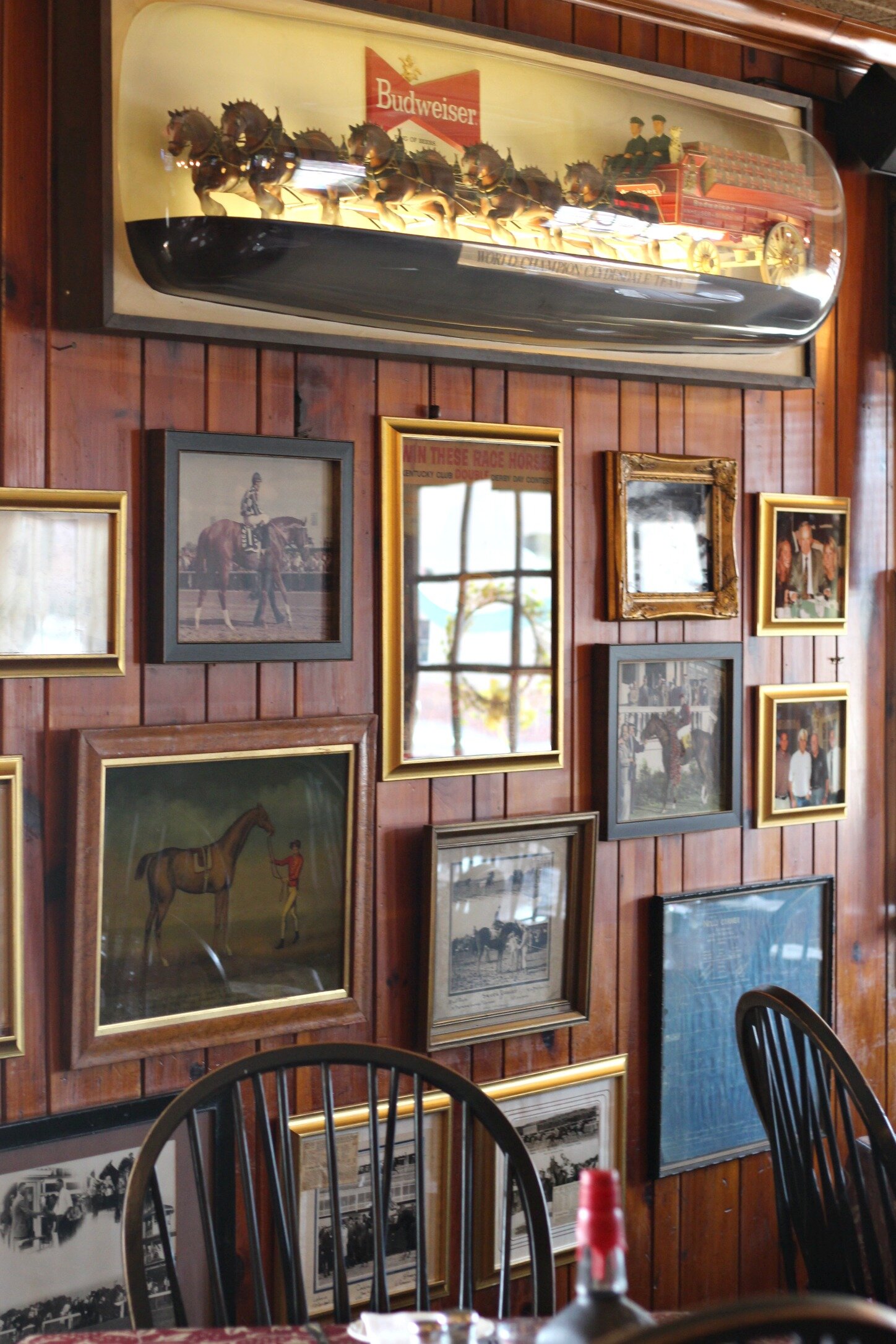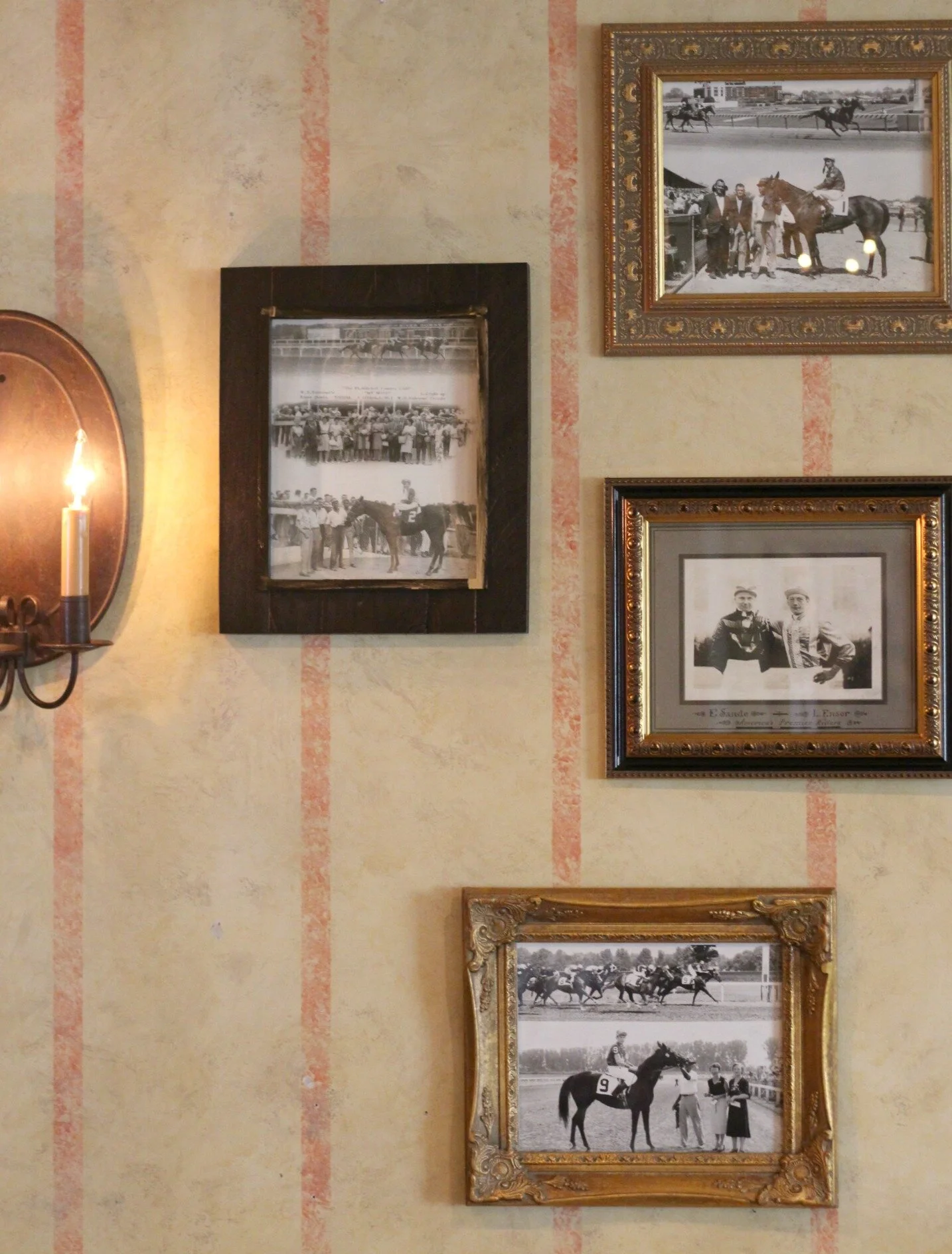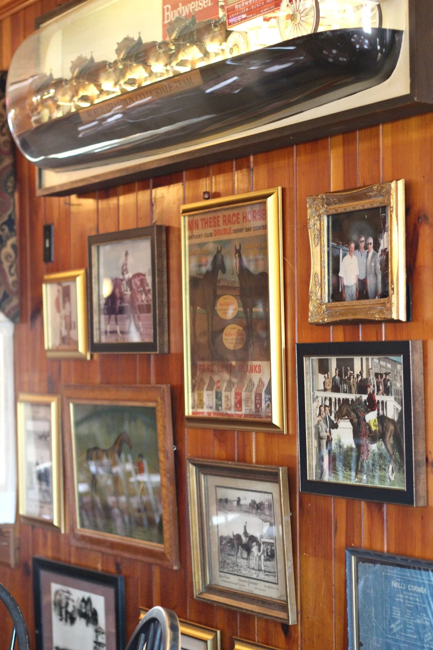 Last week I had the privilege of installing some gallery walls at the historic Greyhound Tavern in Ft. Mitchell, Kentucky. The owners of the restaurant had reached out to me because they wanted to update some of their wall art and create more of a gallery wall feel in both the dining room and tavern area. They had such an amazing collection of vintage horse racing and equestrian prints, and I even got to dig in their attic and look through piles of old photos and prints to choose from!