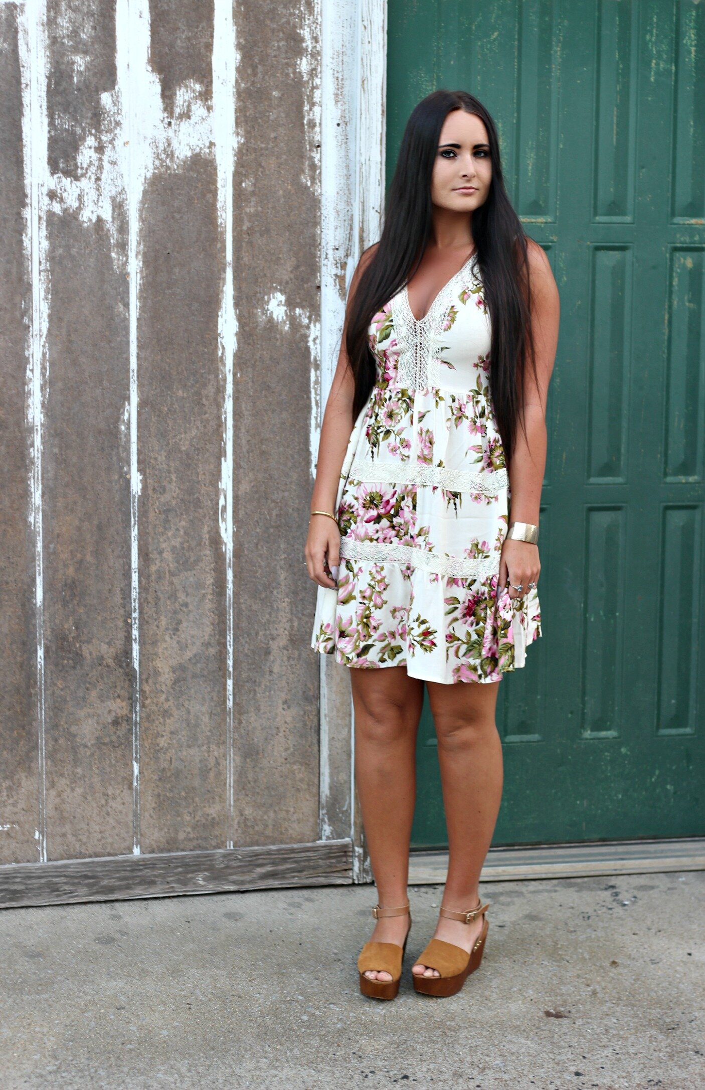Floral dress: Target | Wedges: Seychelles via Amazon | Bangles: Vintage