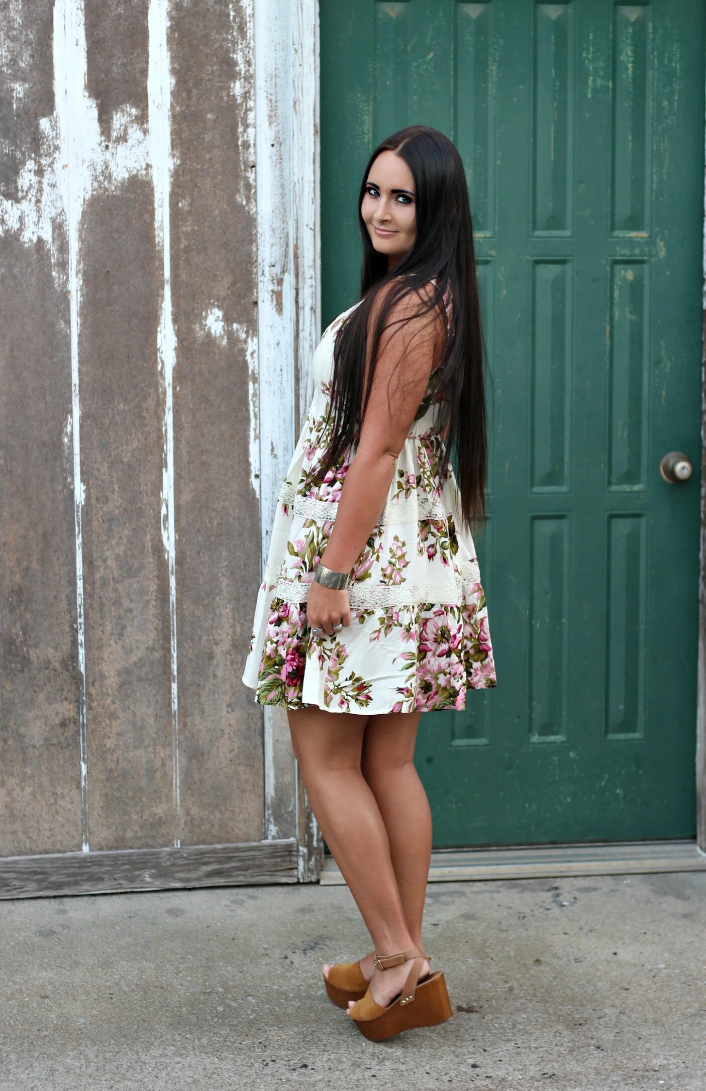 We all know I just can't turn down a good floral print! The colors in this little babydoll dress from Target are what caught my eye immediately. It looks exactly like some of my favorite vintage floral prints but with a more modern silhouette which I love! The lacy plunging neckline is super flattering and it has a tie in the back so you can adjust the waist as needed. This one fits true to size and I'm wearing a medium here. Pair it with your favorite wedges (mine are these Seychelles) and you're good to go for summer! I've linked my entire outfit including a few more floral dress and wedge options at the end of this post!