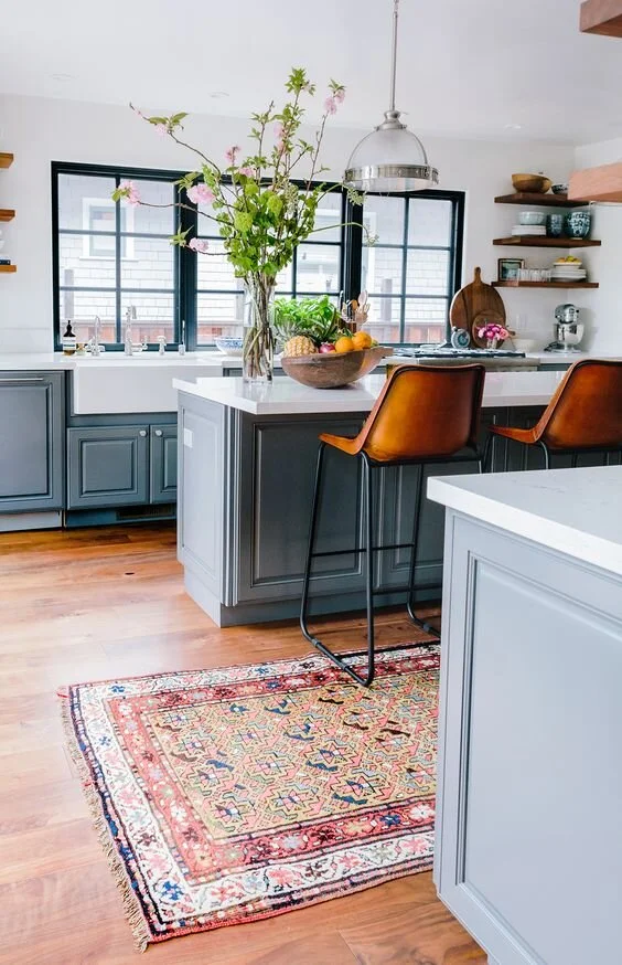 This seems to be THE "it" color of the moment in home decor. It feels very traditional in a way, but also fresh and modern when used with the right design. I love it for a front door, walls, or even kitchen cabinets, and I'm even considering this shade for accenting some built-ins in my living room! For a similar color, try Sherwin William's "smoky blue" or "still water."