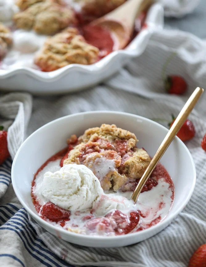 This cobbler is the perfect summer comfort food! Serve with big scoops of vanilla ice cream and enjoy the sweet, gooey strawberry filling! Find the full recipe here.
