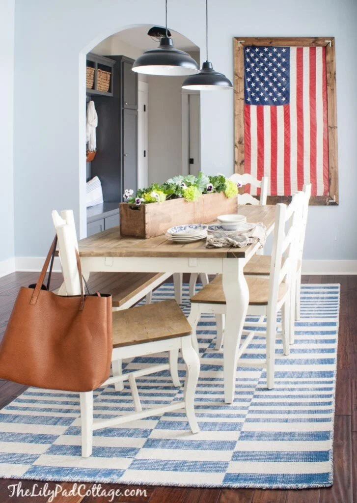 I have send countless pictures with American flags hanging as decor but never had seen a unique twist like this framed version. I love this idea for not just fourth of July but a year-round pop of color!