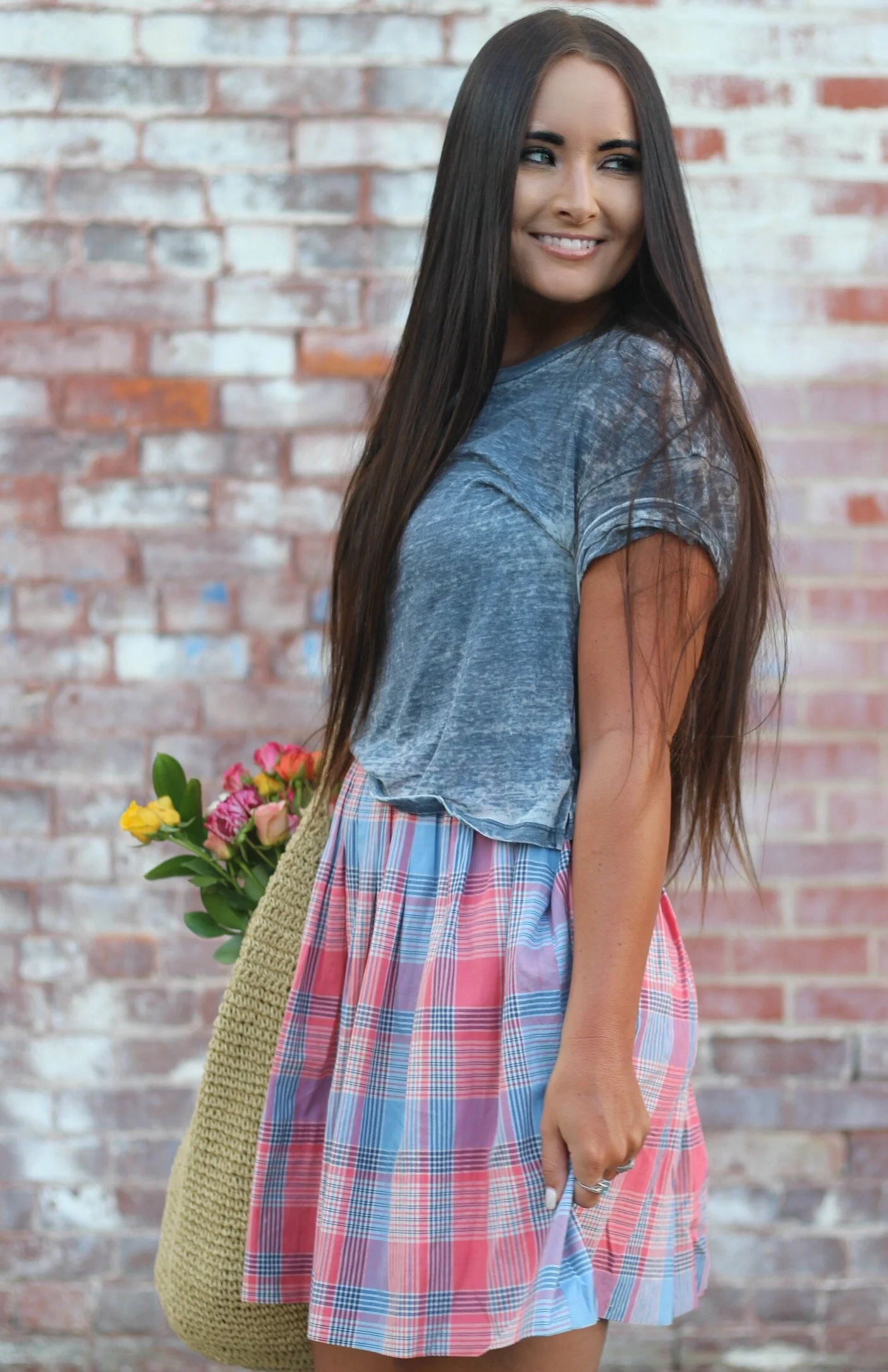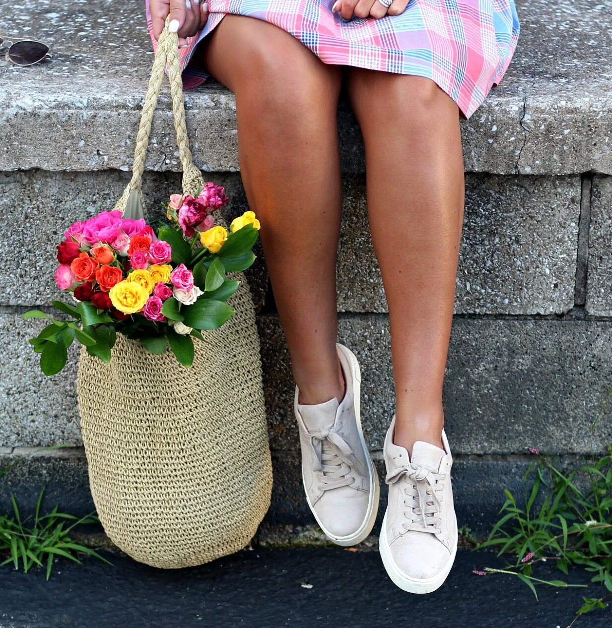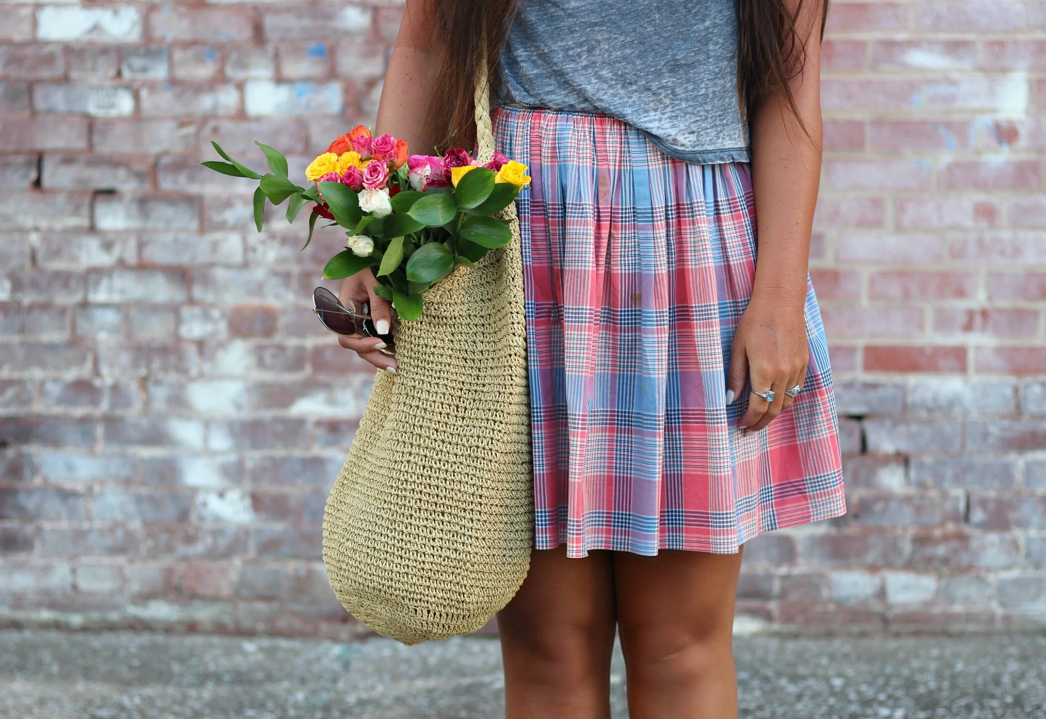 Obviously I can't get enough of my vintage printed skirts lately and this combo pretty much sums up my ideal summer weekend outfit! I love pairing more casual staples like a distressed tee + sneakers with my favorite girly vintage skirts. This one is several years old but the shorter length + vintage plaid will make it one of my favorites for years to come! I've linked lots of similar skirts, tees, and my fave (and most comfy) summer sneakers from Frye at the end of this post for you to shop!