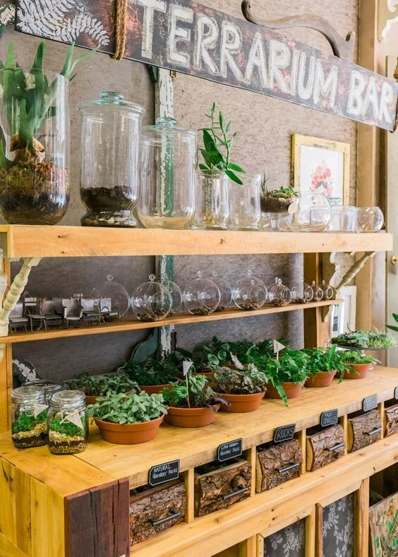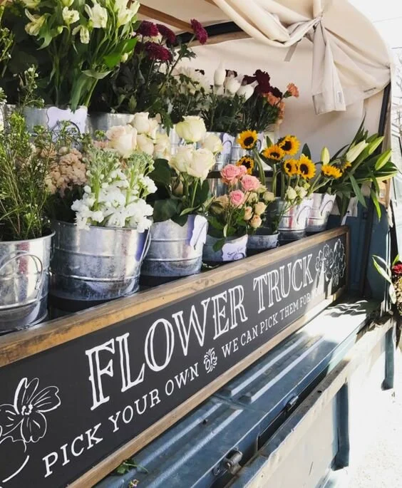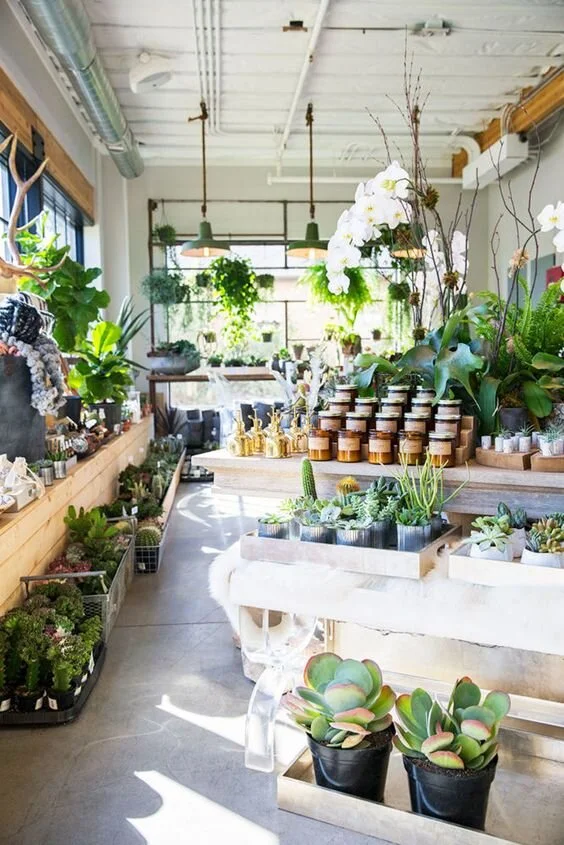 One of my ideas for this space is to have a fresh flower and plant bar. A space where you can pull from tons of vintage jars, vases, and planters and create your own custom arrangements in-store. I'm talking with a few local flower farmers and am hoping that we will have a variety of locally grown fresh blooms as well as a mix of faux stems, plants, succulents, and maybe even some wreaths and garlands too!