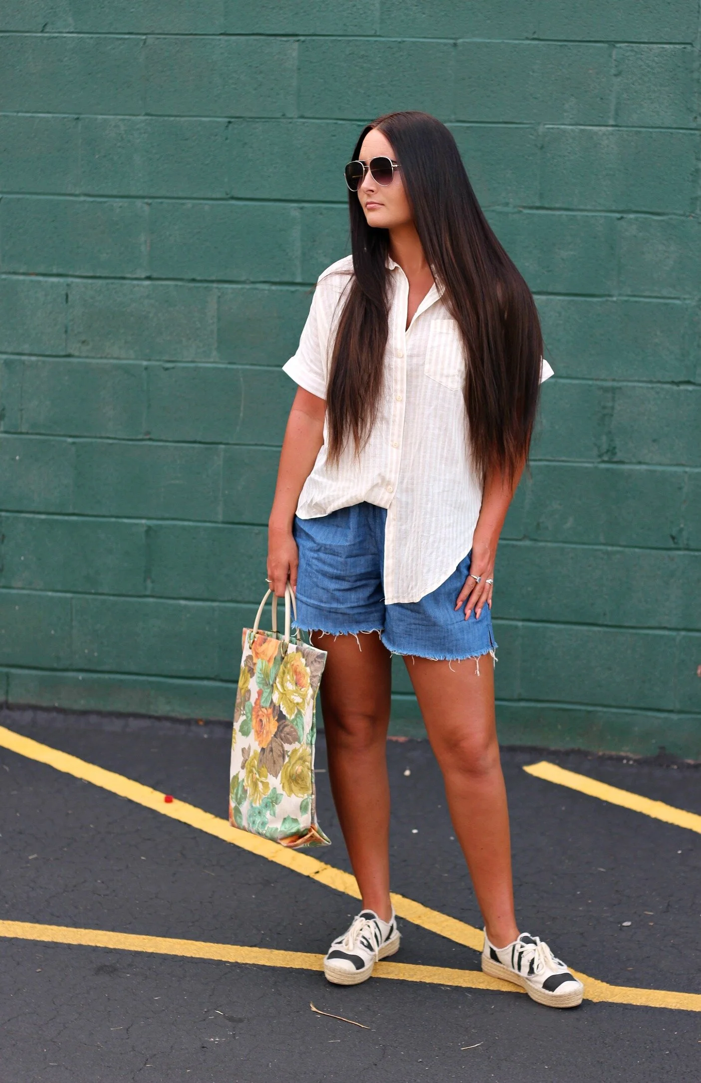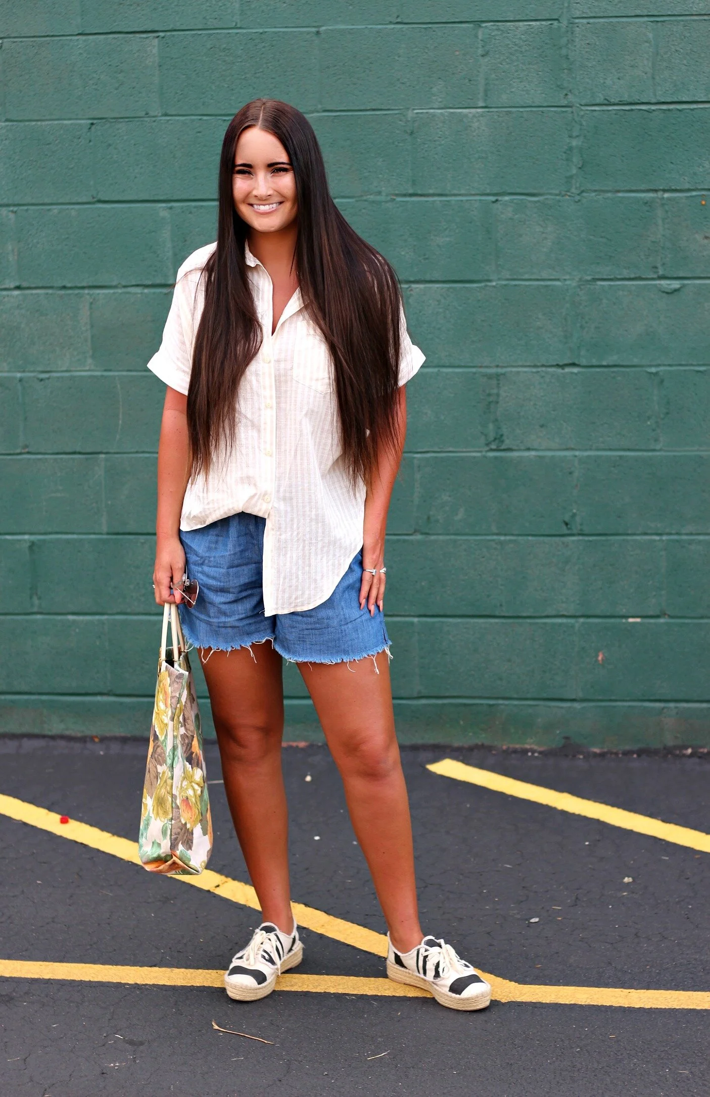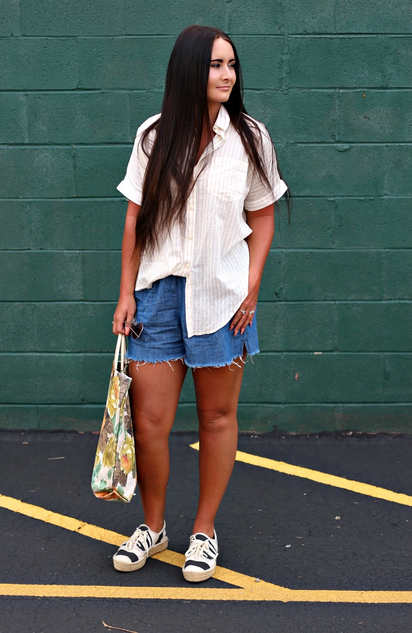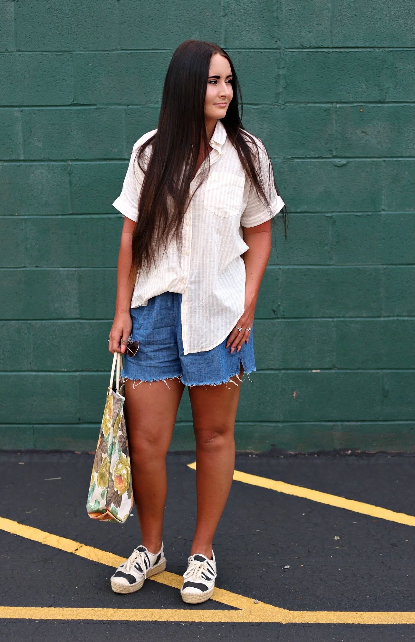 Y'all know I'm ALL about the easy breezy basics for summer and Madewell has you covered with the best of those pieces this season. I recently stopped in to the new Madewell store here in Lexington at The Summit at Fritz Farm and stocked up on a few summer essentials that I have been wearing non-stop ever since. First of all, I love all of their short-sleeve oversized button-downs- many of them in light summer stripes, and all have just the perfect laid-back + comfy fit (I'm wearing a medium above for reference). Next, let's talk about shorts. I have the HARDEST time finding shorts that fit at all in the waist, but I will save you my long rant about the fit of modern shorts. THESE chambray shorts from Madewell have a drawstring waist and are actually big enough for my butt/thighs, AND they are pretty much the perfect length too. I'm so happy to have found these AND they're also under $30 right now! Hurry and grab a pair of these because they are SO comfortable and have that perfect laid-back look for everyday wear. I've linked my entire outfit and a few of my other favorite summer essentials from Madewell at the end of this post for you to shop!