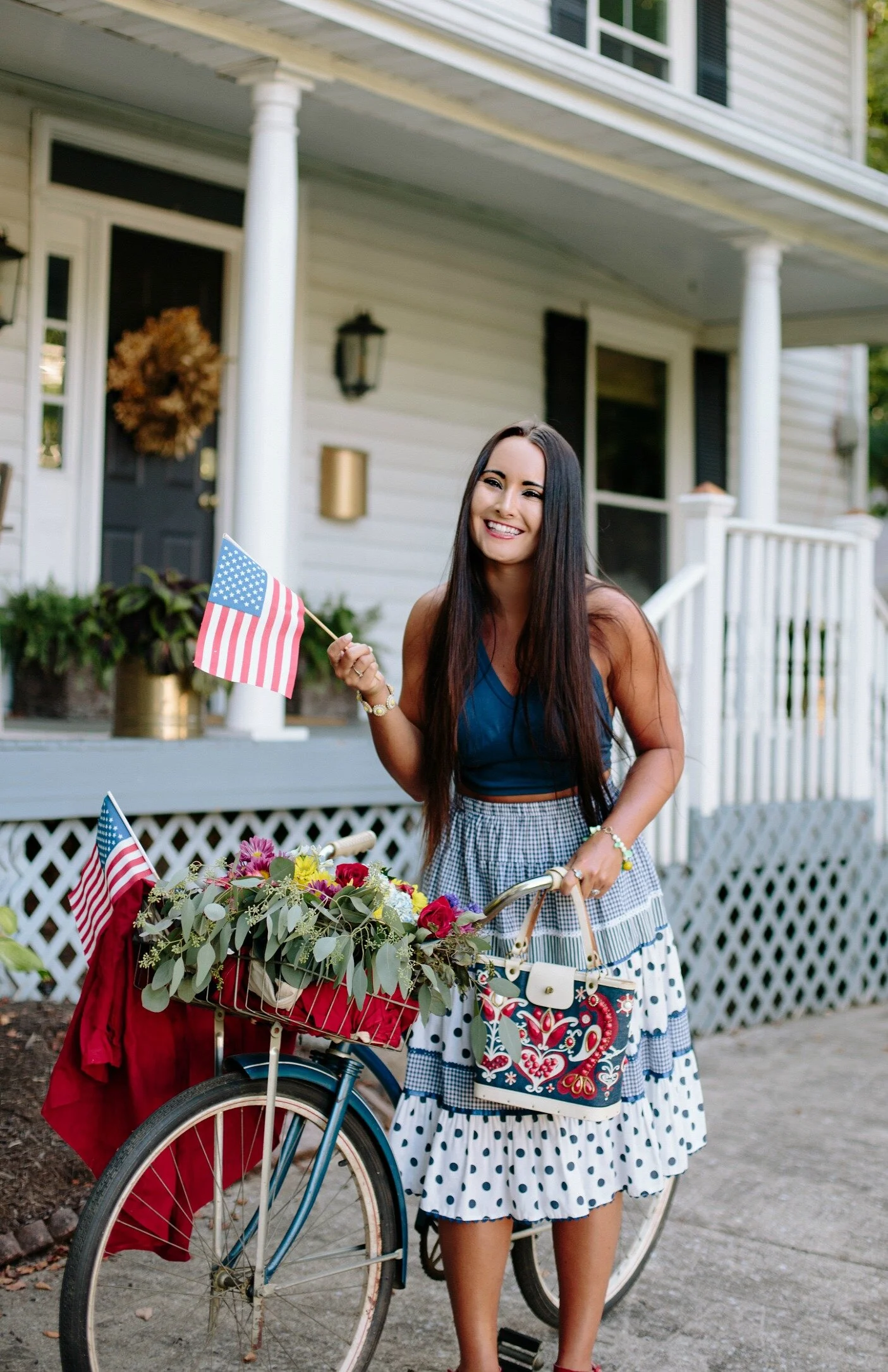 There's not many things I love more than dressing in theme, so naturally 4th of July is one of my favorite holidays. I find that my summer wardrobe consists of SO many red, white, and blue pieces (mostly vintage) that I have to start wearing my patriotic outfits a week before the holiday to squeeze them all in. This polka dot vintage skirt + 70's crop top will always be two of my favorites that I continue to wear summer after summer. I also have a couple of perfectly patriotic purses that I love to show off each year, this Enid Collins one being my favorite. I've linked lots of similar vintage pieces for you to shop at the end of this post- Happy 4th!