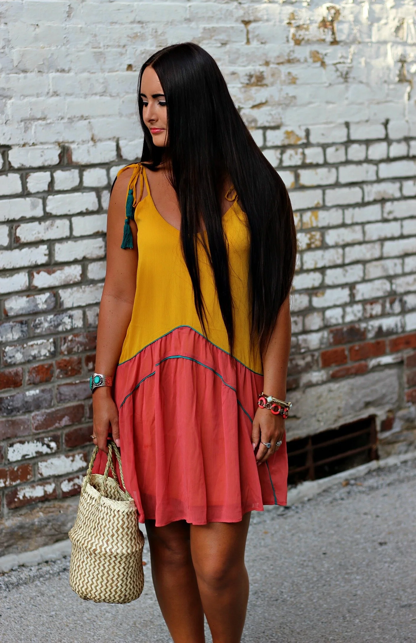 Just when I was ready to dive head first into fall fashion, this perfect little dress revived my summer wardrobe! I love the unique color combination, tassel detail, + super flowy silhouette. Even better it's under $25 and comes in a variety of sizes from XS-XXL! You can adjust the strap length as needed and the rest of the dress fits very loose + flowy so it's very easy + comfortable to throw on for everyday wear! I paired it with another pop of color in these fun floral print slides from TJMaxx (linked several similar styles below too!) and my favorite basket tote (linked above) that you can now shop in our store. You can find all my outfit details linked above + below for easy shopping!