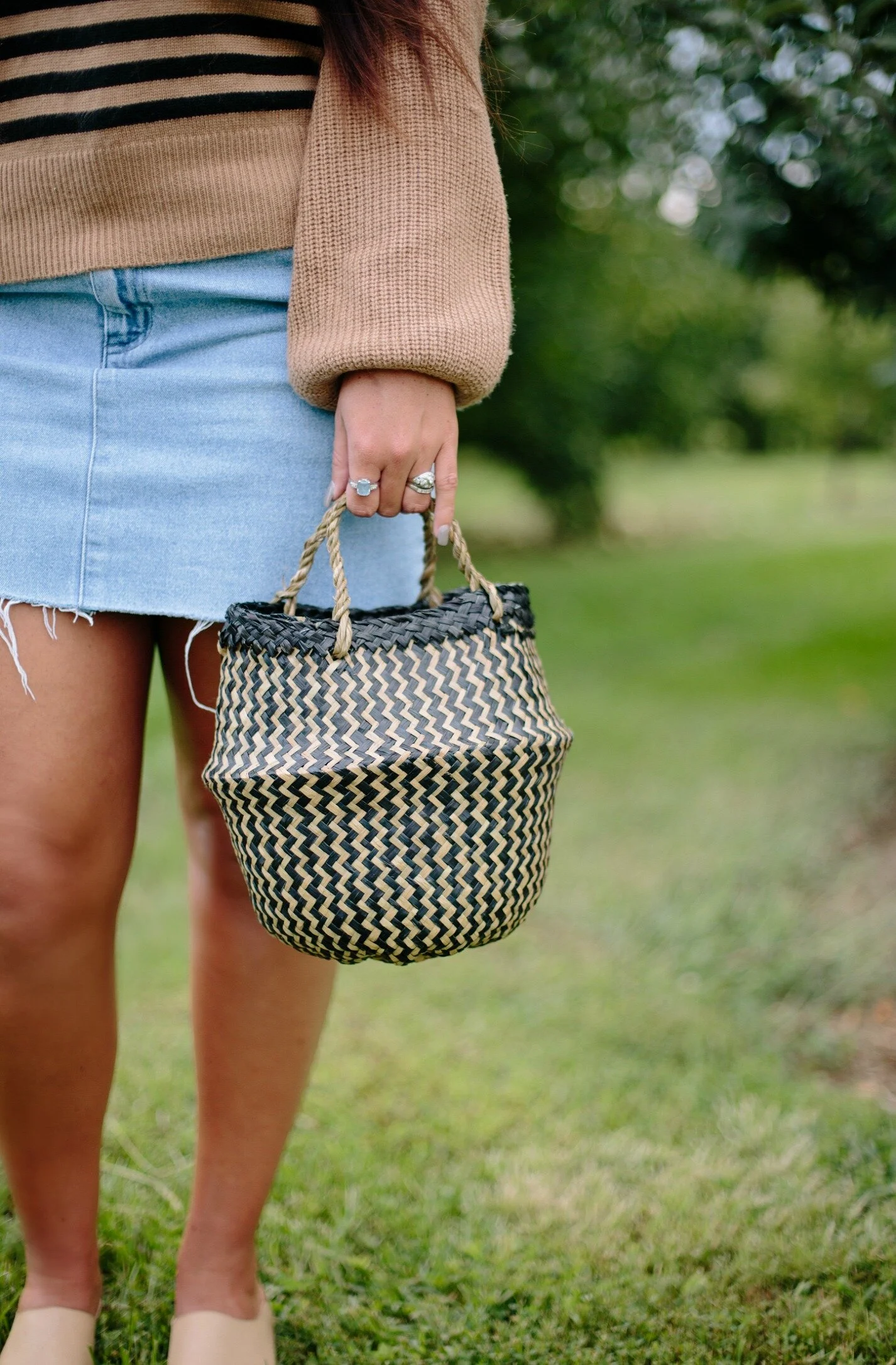 Striped Sweater | Denim Skirt (vintage- similar here) | Mules | Straw Tote | Necklace (vintage- similar here)