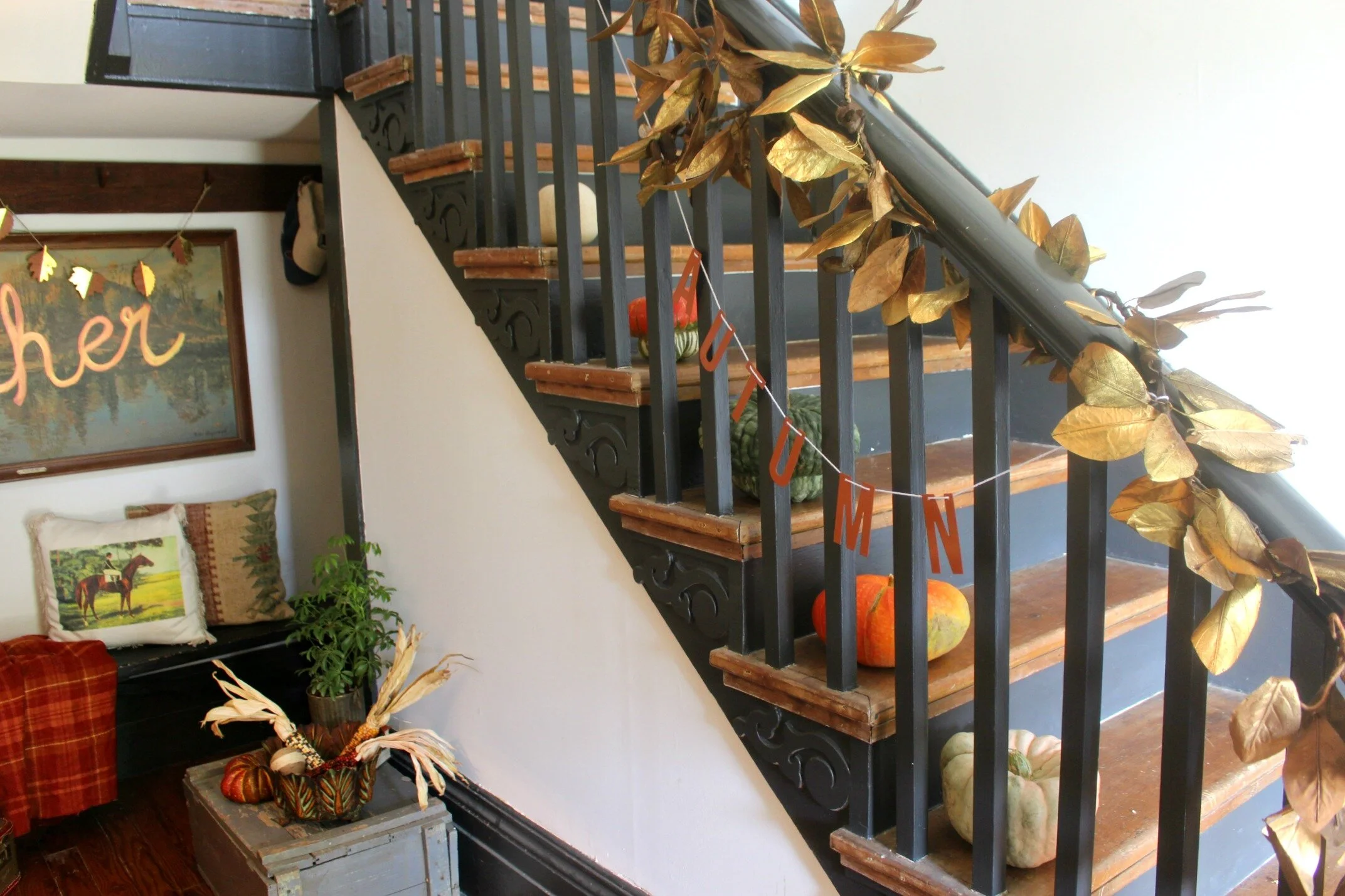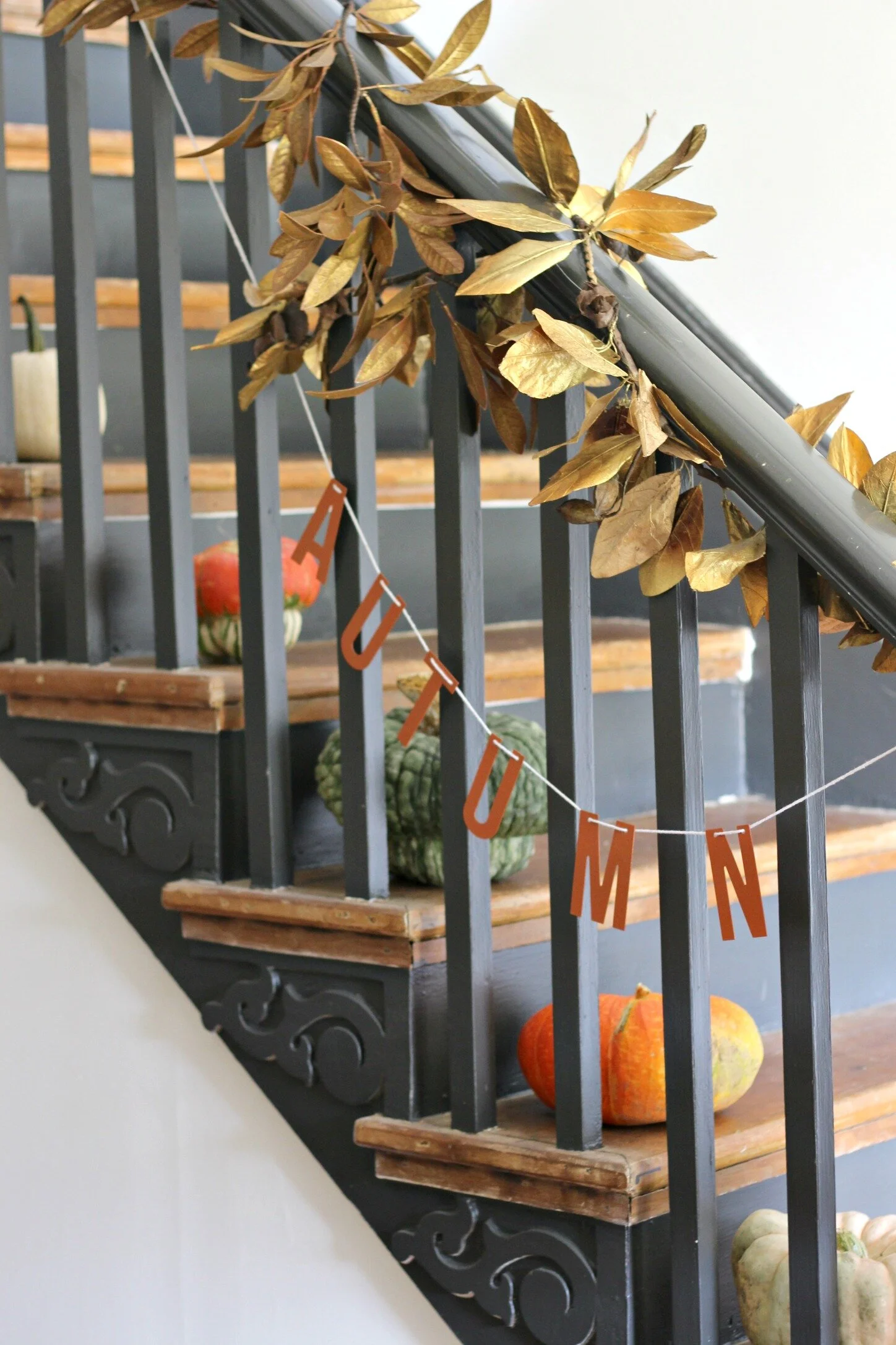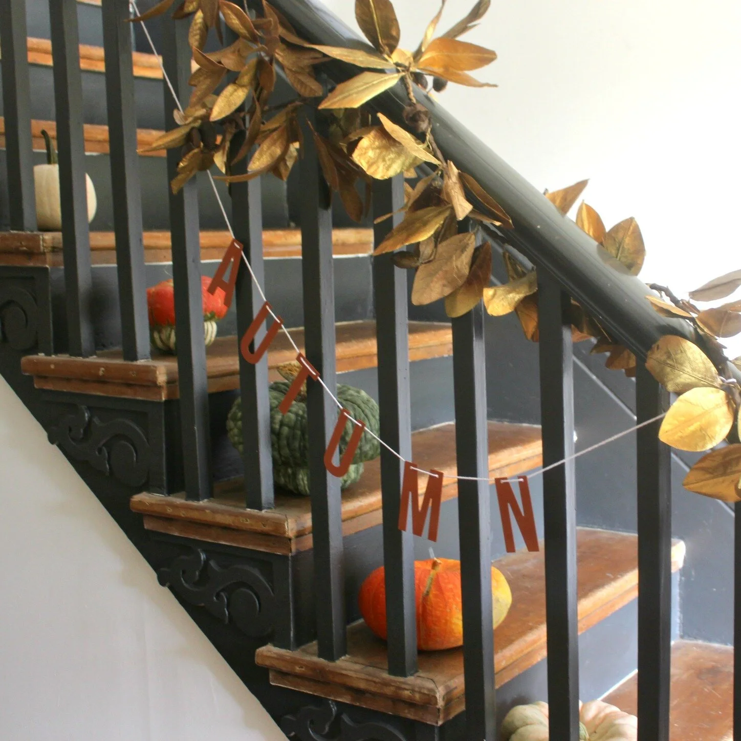 "Autumn" garland: Target Dollar Spot (currently available in-stores) | Pumpkins: Louis Flower Power shop