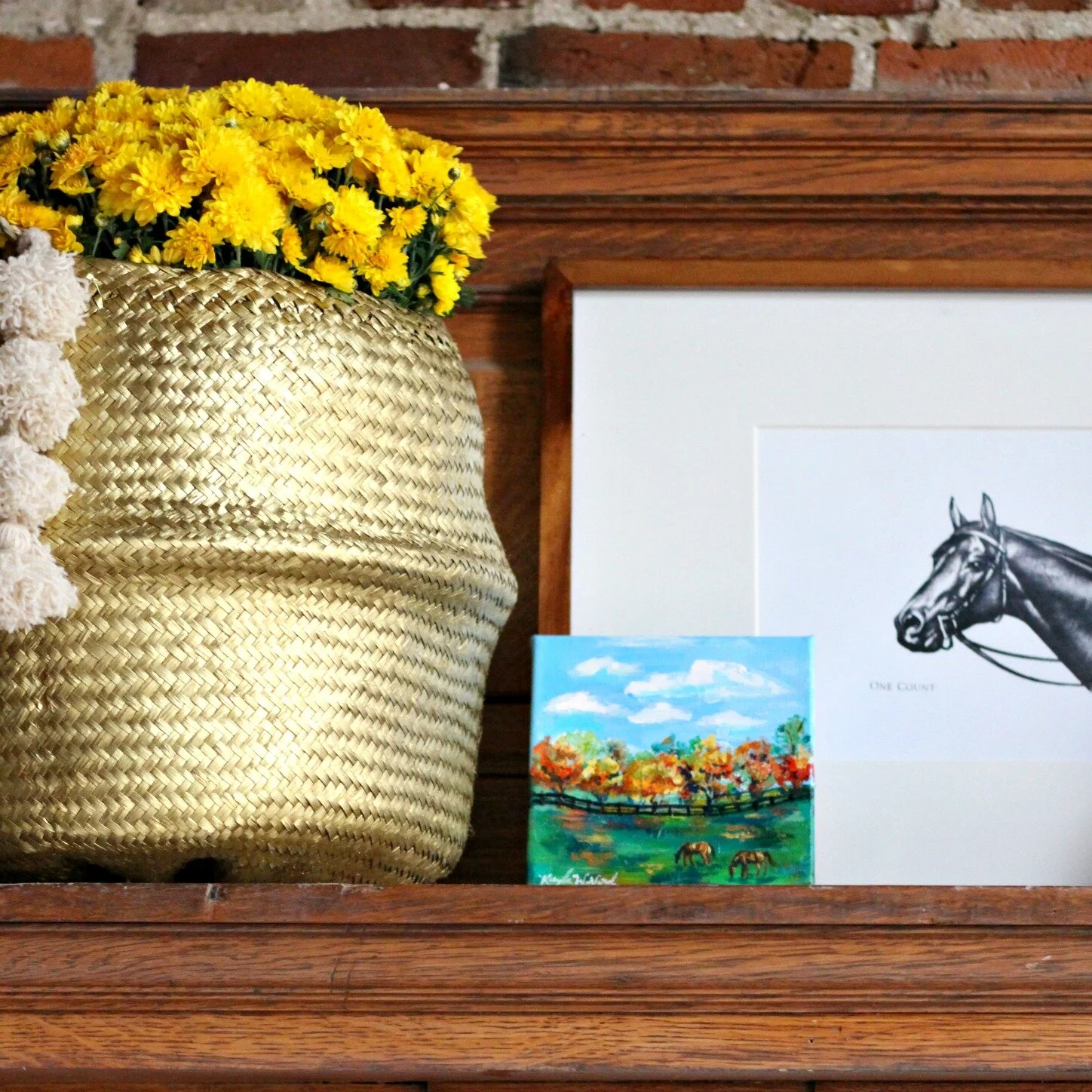 What better way to celebrate our first fall weekend than with a makeover giveaway?! I've partnered with two of my local favorites, Springhouse Gardens + Kayla Weber Art to bring you the perfect collection of fall plants + decor for decorating your mantle, porch, or entryway! The winner of the giveaway will also receive custom styling of the items in your home by me! This giveaway includes: 3 mums from Springhouse Gardens; 2 pumpkins from Springhouse Gardens; mini fall painting by Kayla Weber Art; framed vintage equestrian print from Miss Molly Vintage; 3 basket planters from Miss Molly Vintage; vintage lantern + vintage glass bottle from Miss Molly Vintage; and custom styling by Miss Molly Vintage.