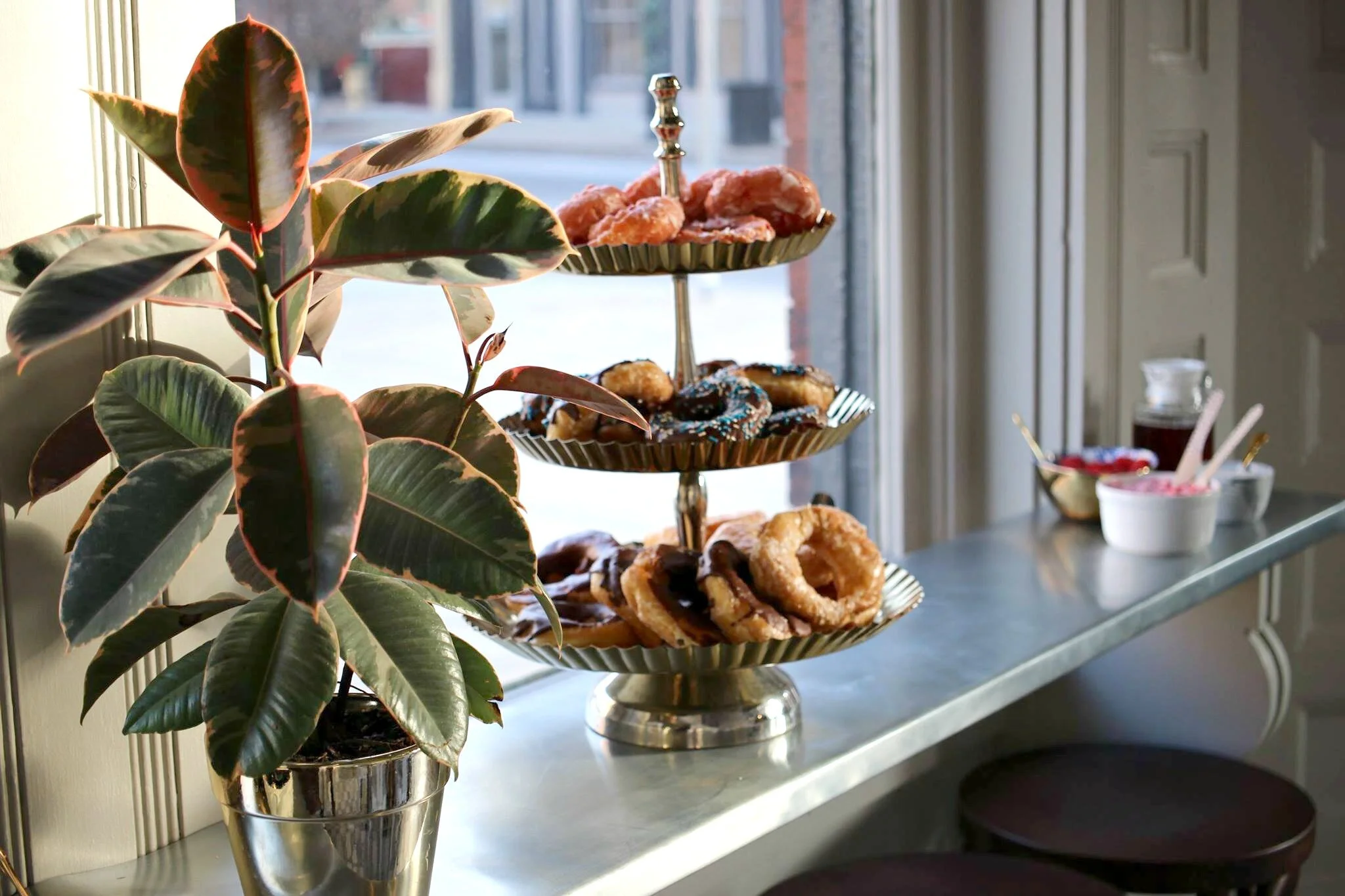 I've listed the full menu that I served below and will link up all the recipes as I share them on the blog in the next few weeks. I served an assortment of donuts from local favorite, Doughdaddy's; baked french toast casserole with fresh raspberry compote butter; spinach + feta quiche; and fruit and yogurt parfaits in little individual glasses. In addition to our regular coffee menu, I also set up a mimosa bar with fresh fruit and 3 different juices (find all the details on that here). This was super easy to put together and everything listed was a quick and simple recipe. I have also listed all the bloggers who attended below + linked their blogs as well- be sure to give them all a follow!