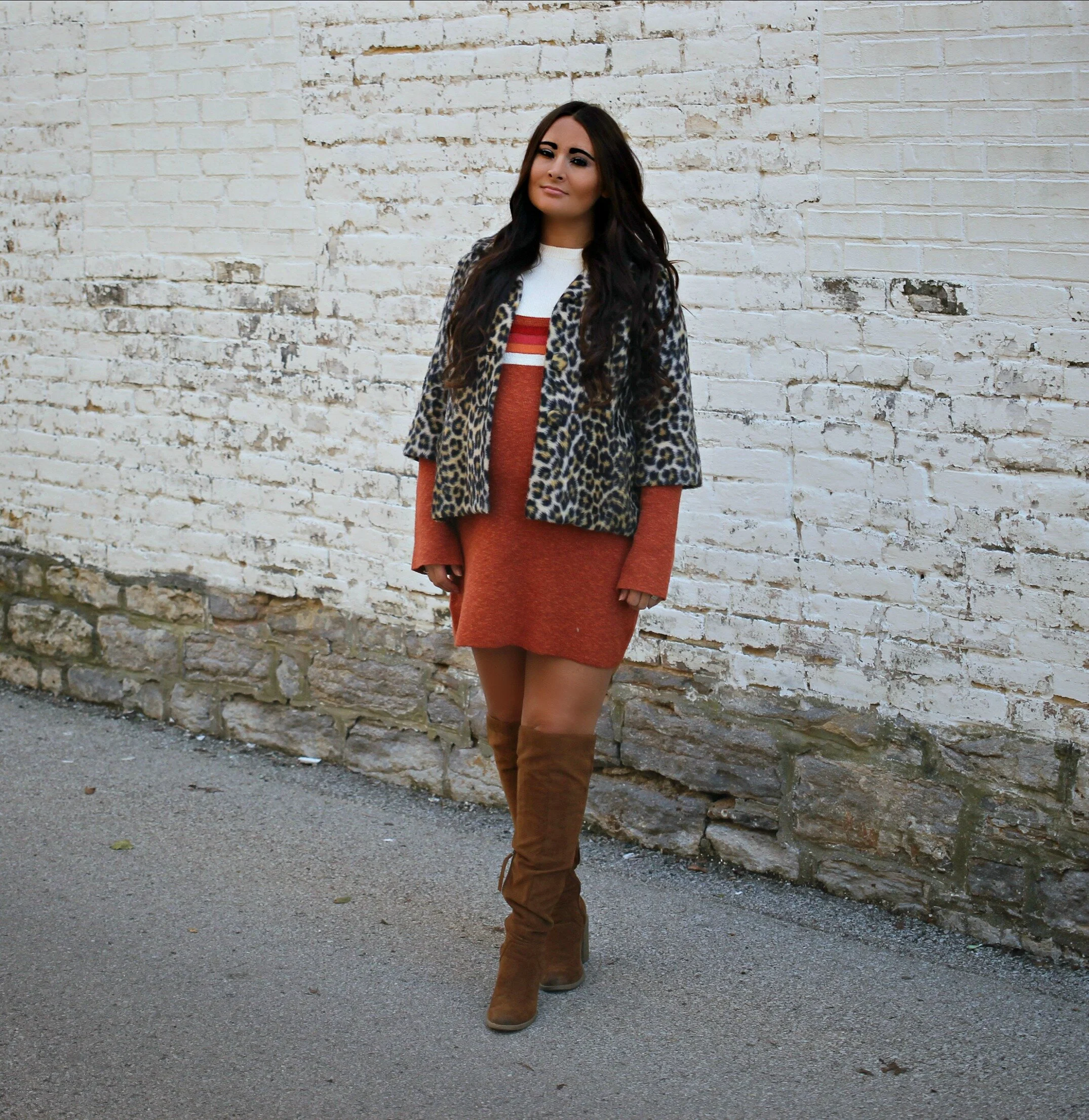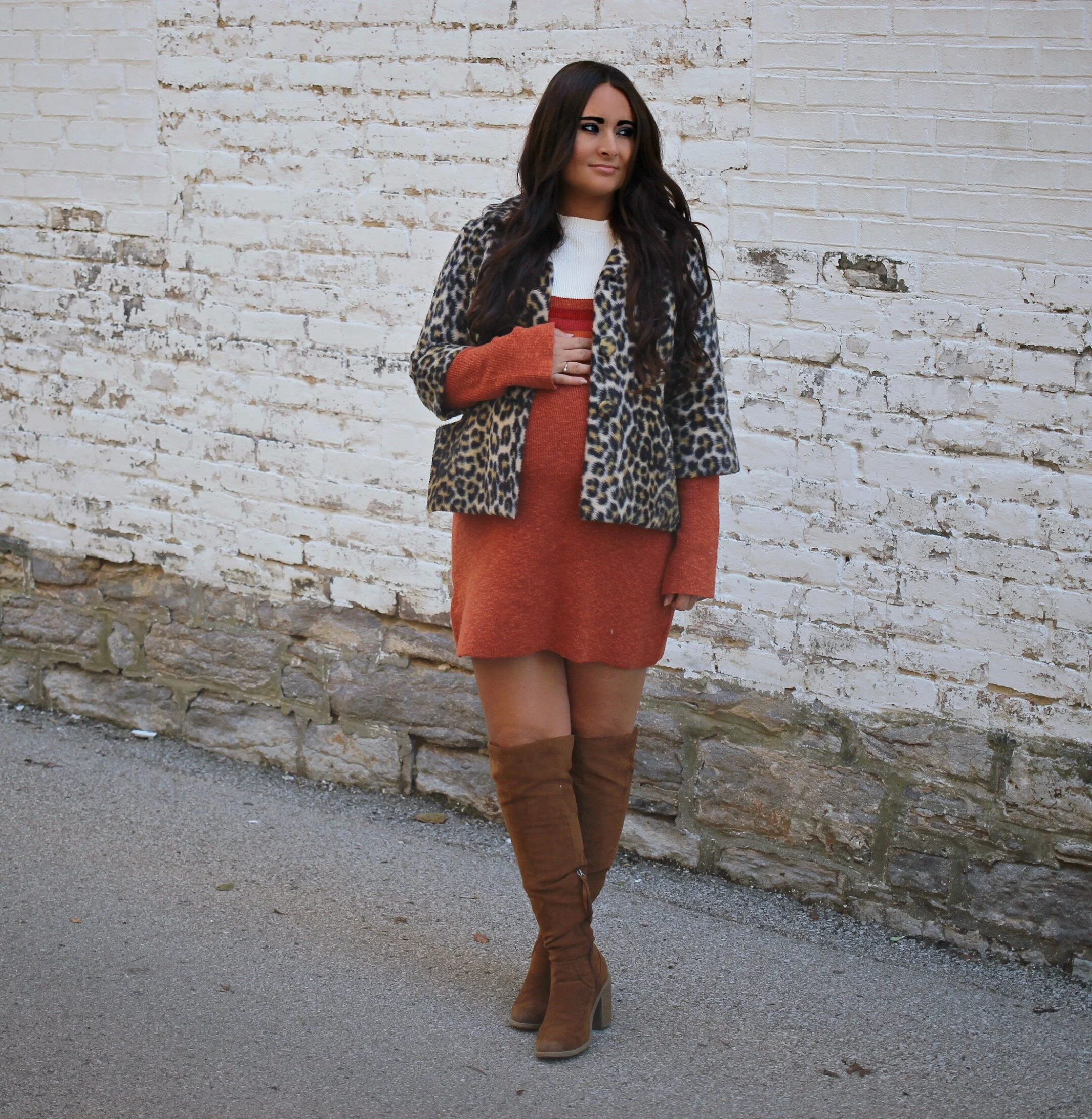 Colorblock Sweater Dress + Vintage Leopard Jacket