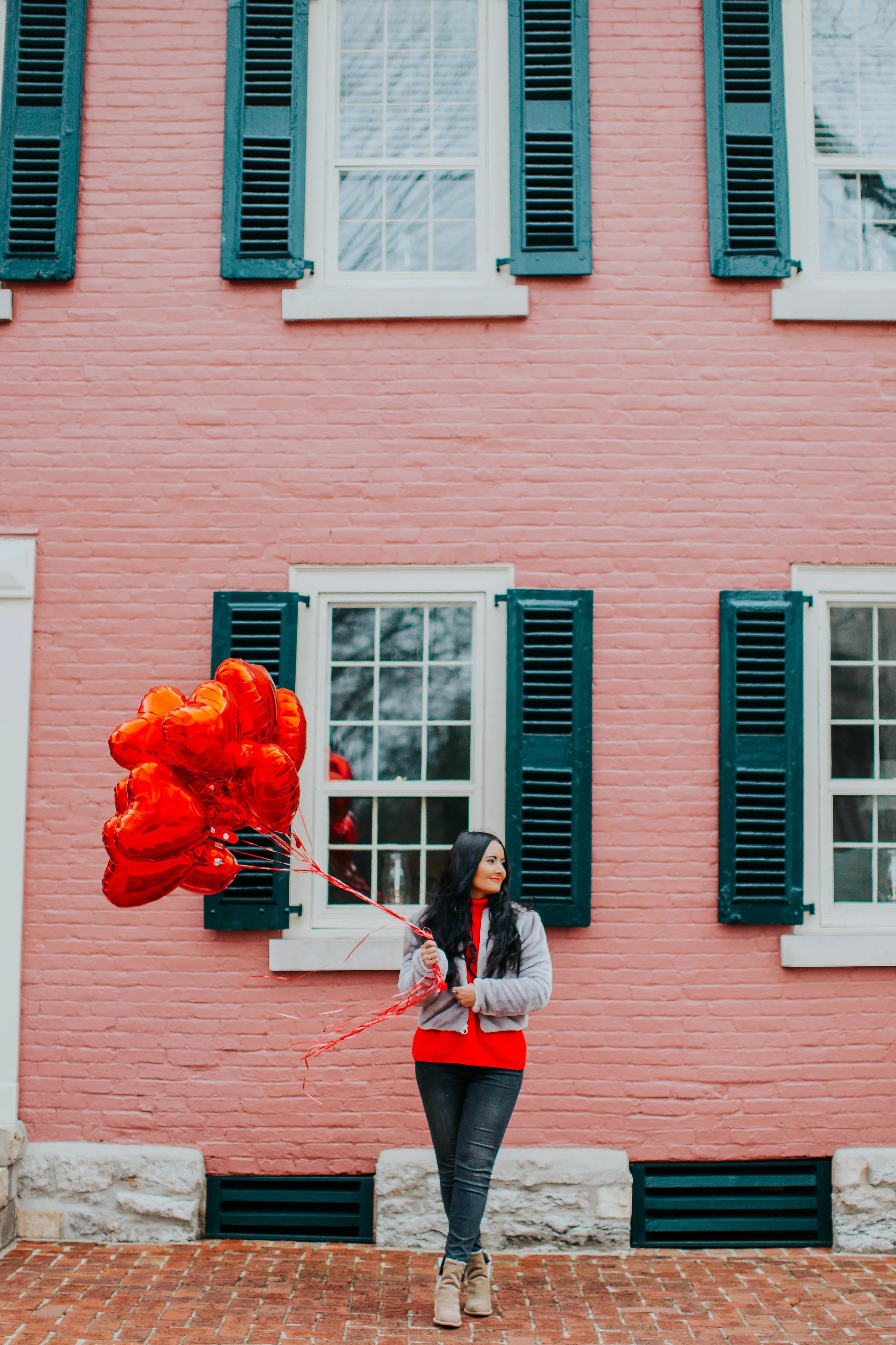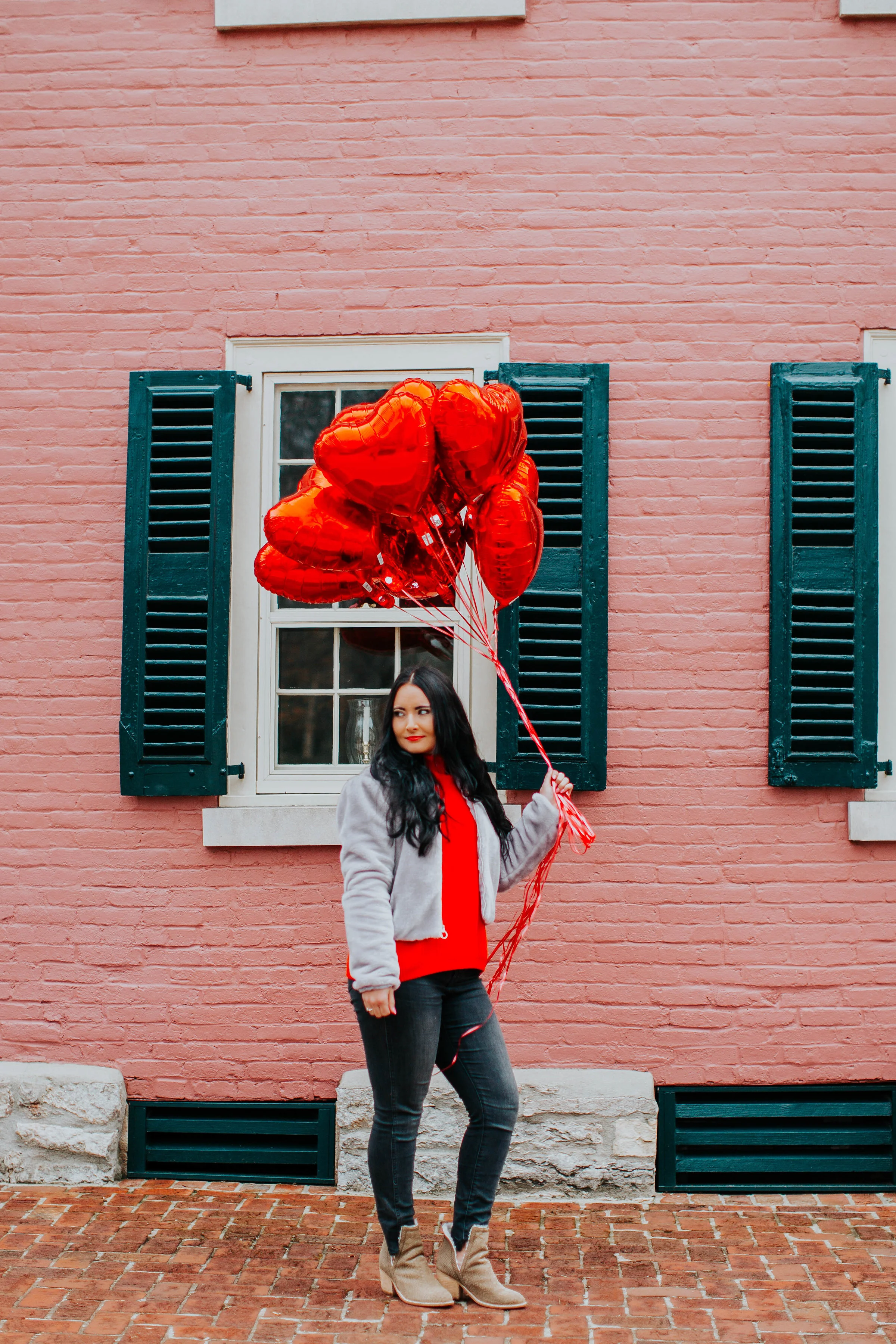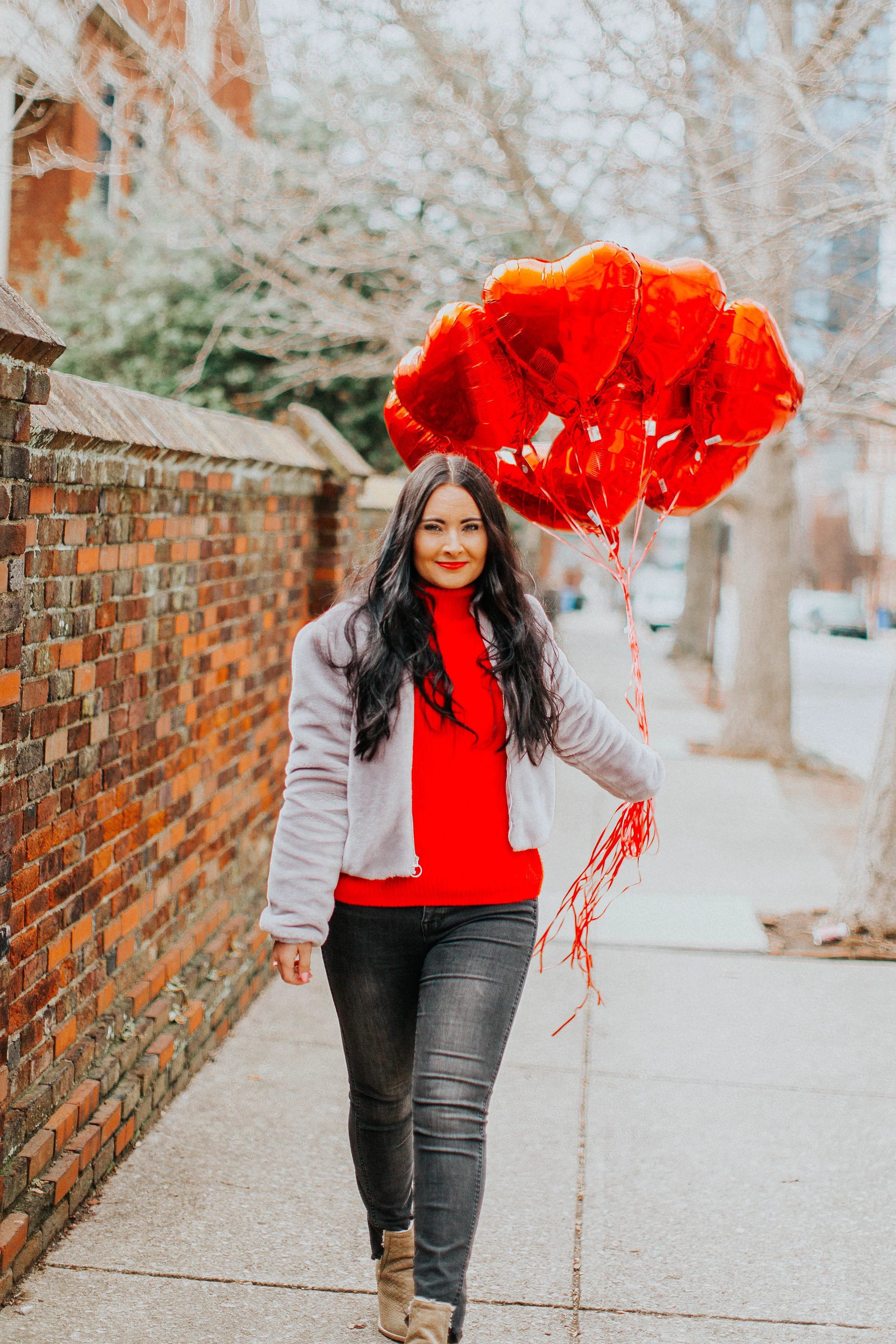 Happy Valentine's Day! This fun shoot with pops of pastel + red was one of my favorites to date! I knew I wanted to shoot in front of one of my favorite houses in Lexington in Gratz Park. This home reminds me of a Charleston house on rainbow row! The star of my outfit is this faux fur pastel jacket (which I snagged on clearance at Target!). Since it's currently not online, I linked tons of similar options below! I paired it with another Target fave, this mock neck sweater (also seen here) which was the perfect pop of red to match my heart balloons! I've also been loving Maybelline's new matte ink lipcolors, and this Heroine shade is the perfect bright red! You can shop all of my outfit details which are linked for you above + below!