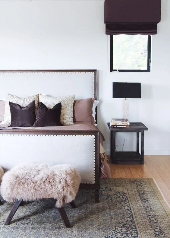 2. Go with pale, layered neutrals on your bed with lots of cozy textures: This is one of my favorite color combos for a bedroom anyways and such a modern yet classic take on bedding. You can still totally give your bed that super cozy, crisp feel with soft, pale neutrals like grays, tans, taupes, creams, and blush. You can even throw in some deeper colors like charcoal, chocolate brown, mustard, and navy for contrast! Texture is also a huge key in creating that cozy, layered look! Mixing and matching materials like linen, velvet, and/or faux fur adds lots of dimension and really gives you a high-end look. Take a look at some of my favorite examples of pale neutral bedding below: