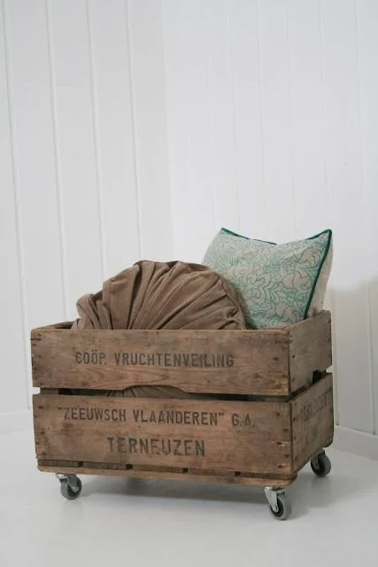Another inexpensive DIY idea is to add wheels to an old wood box or crate. You can find these in a variety of styles and sizes at garage sales, thrift stores, or antique stores. You can even paint or stain it to match the decor in your bedroom.