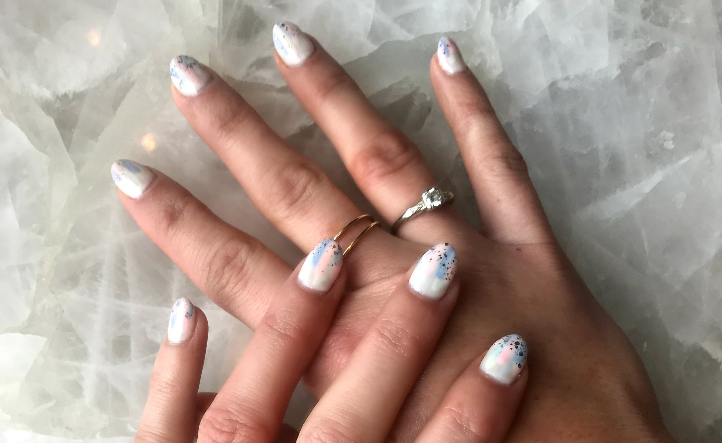 I'm always so excited to try out new local businesses in the Lexington area, but especially when one of my dear friends is one of the owners! Lexington's newest must-visit spot is Varnish Nail Shoppe, an chic and high end all-natural nail salon. They truly nailed every detail in this shop from the minimal, midcentury decor to the well-curated array of products and services. The service is top-notch and you really feel pampered every step of the way! One of my favorite parts of my manicure is when they mixed up a custom sugar hand scrub with my favorite scents right in front of me. I also really loved the selection of stylish polish colors that they had available AND they specialize in doing some super chic nail art too! I went with a super light pastel watercolor gel manicure with just a touch of glitter (see below).