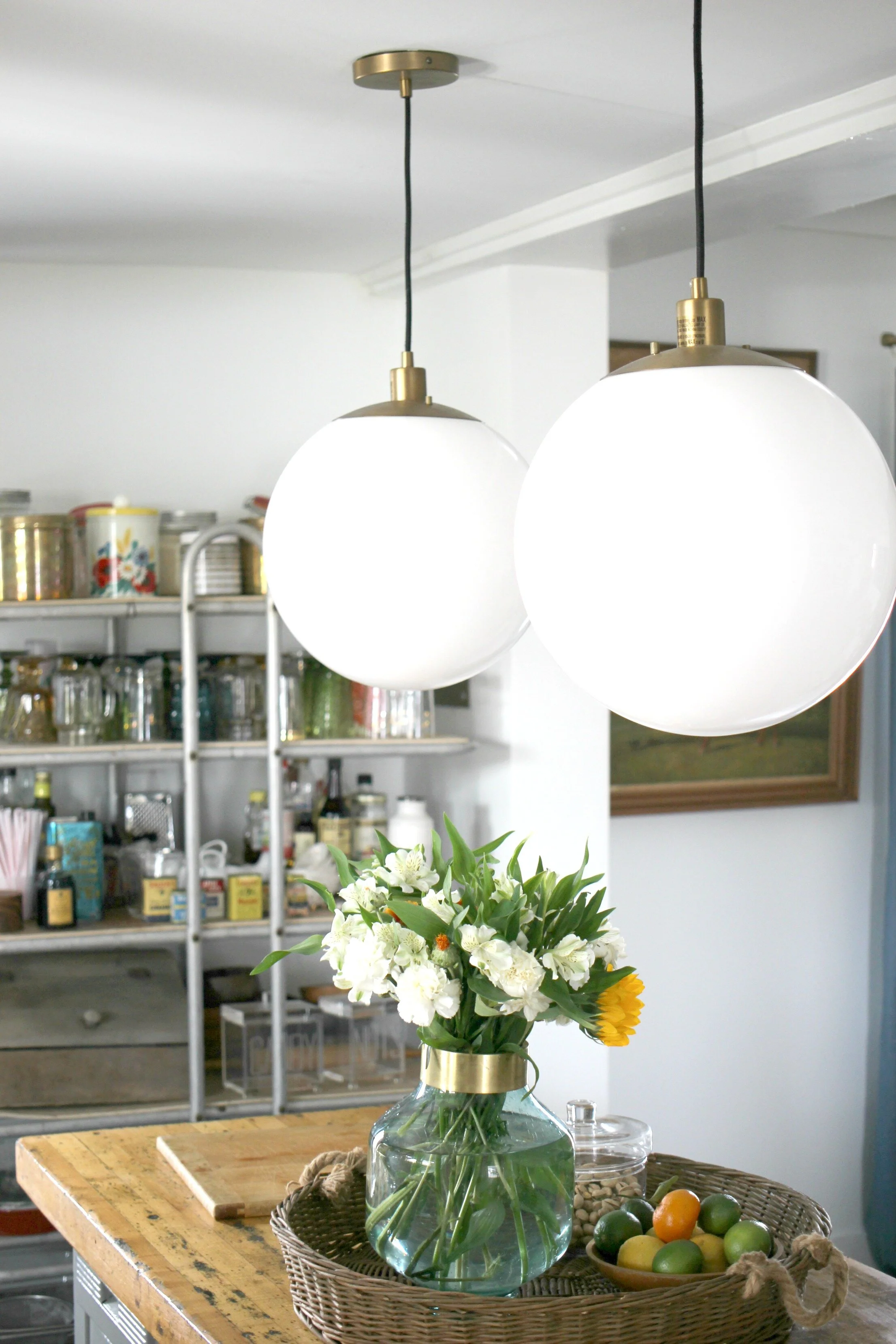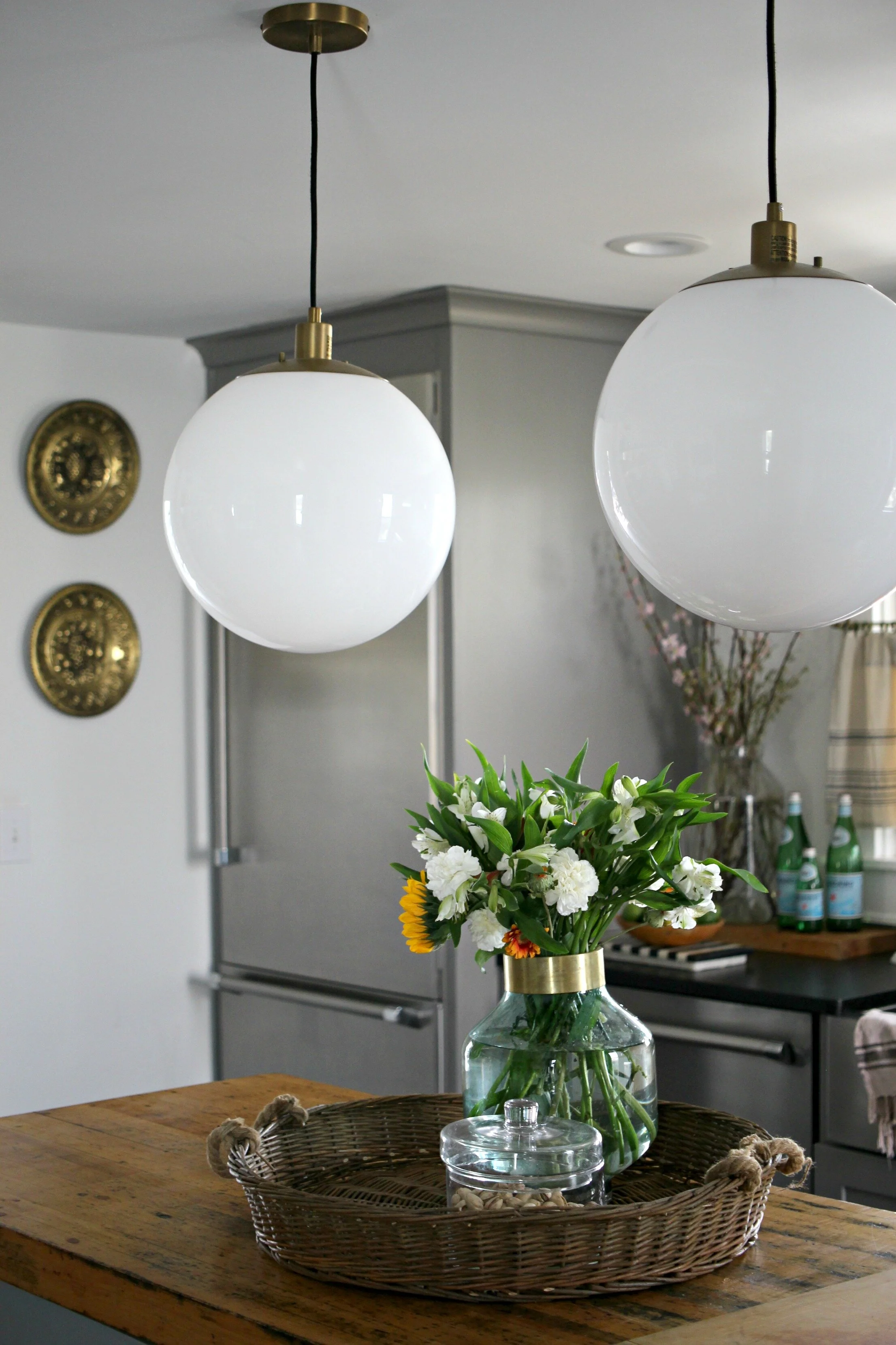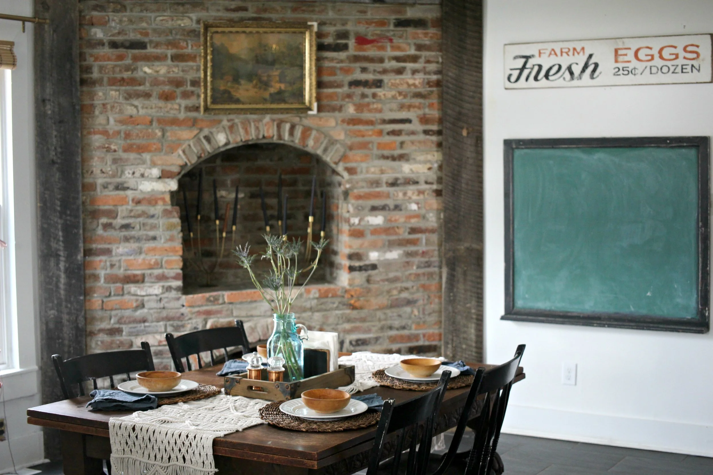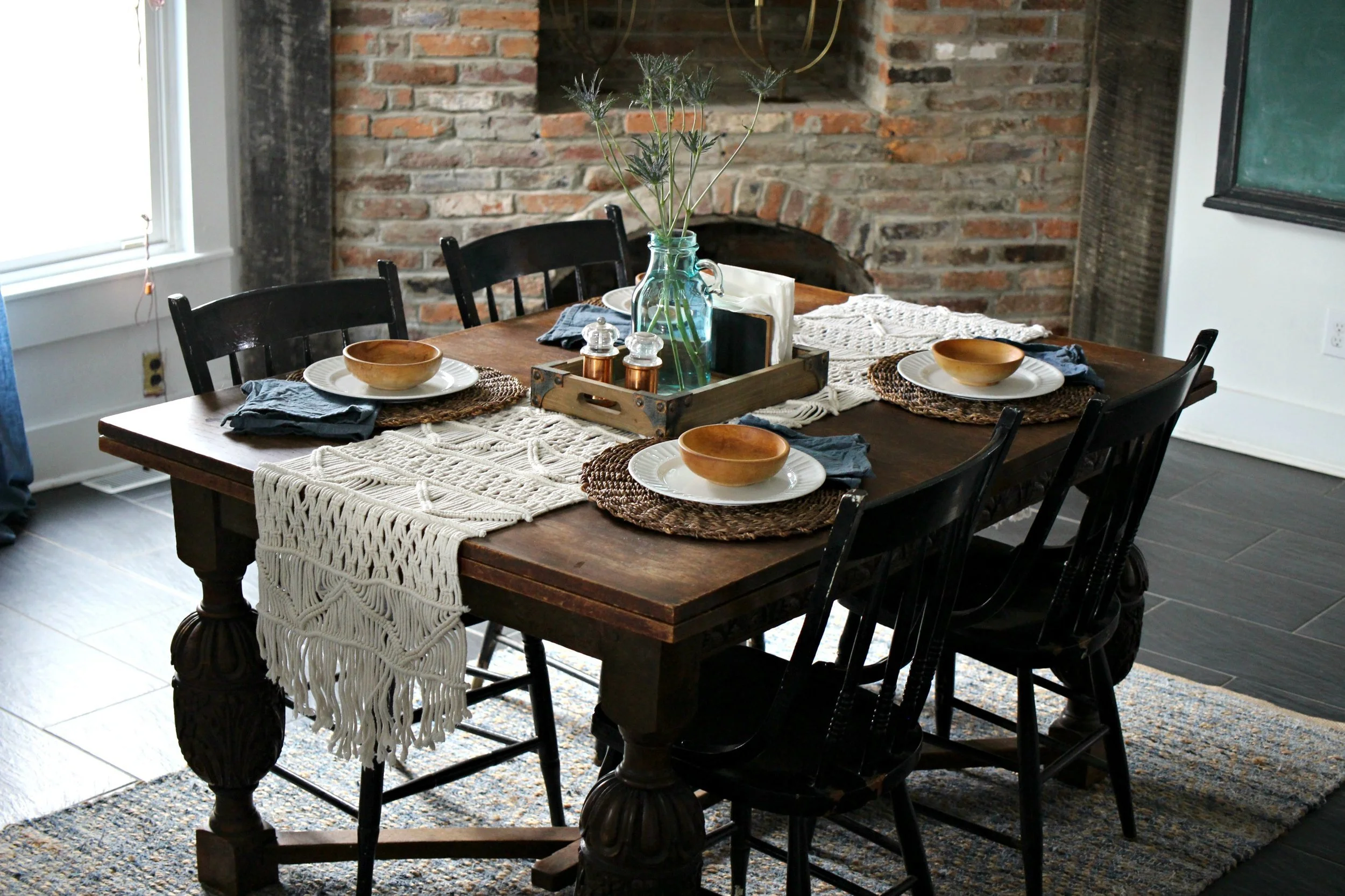 It took me a little longer than usual this year, but I've finally gotten all my winter decor packed up and am slowly freshening up my home for spring. The kitchen is one of the first areas I've focused on because it's so easy to add a few spring touches in here. A few bowls of fresh citrus like lemons, limes, and oranges are perfect for adding a pop of color on your kitchen island or on your countertops. I also like to have lots of fresh flowers everywhere. You don't even have to do a full blown arrangement, as sometimes just a few simple stems in a large jar can be just as effective. Finally I also brightened up my table settings with this amazing macrame runner and some simple white plates. You can find my kitchen details + fixtures are listed here, but if you have questions about anything else not listed, just ask!