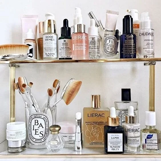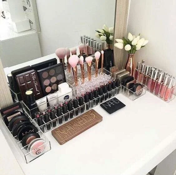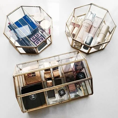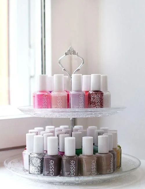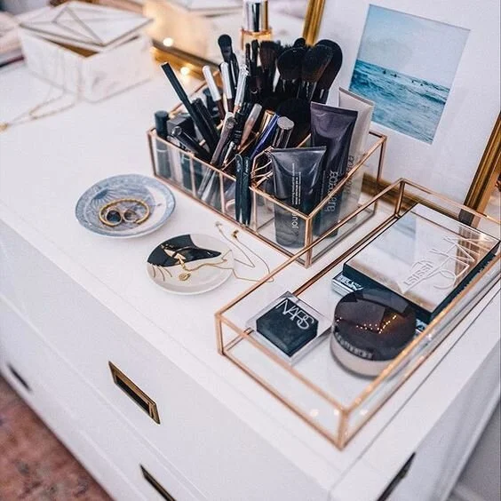 6. Utilize the top of your vanity too with more decorative organizers, tiered plates, mirror trays, stacking organizers, etc.