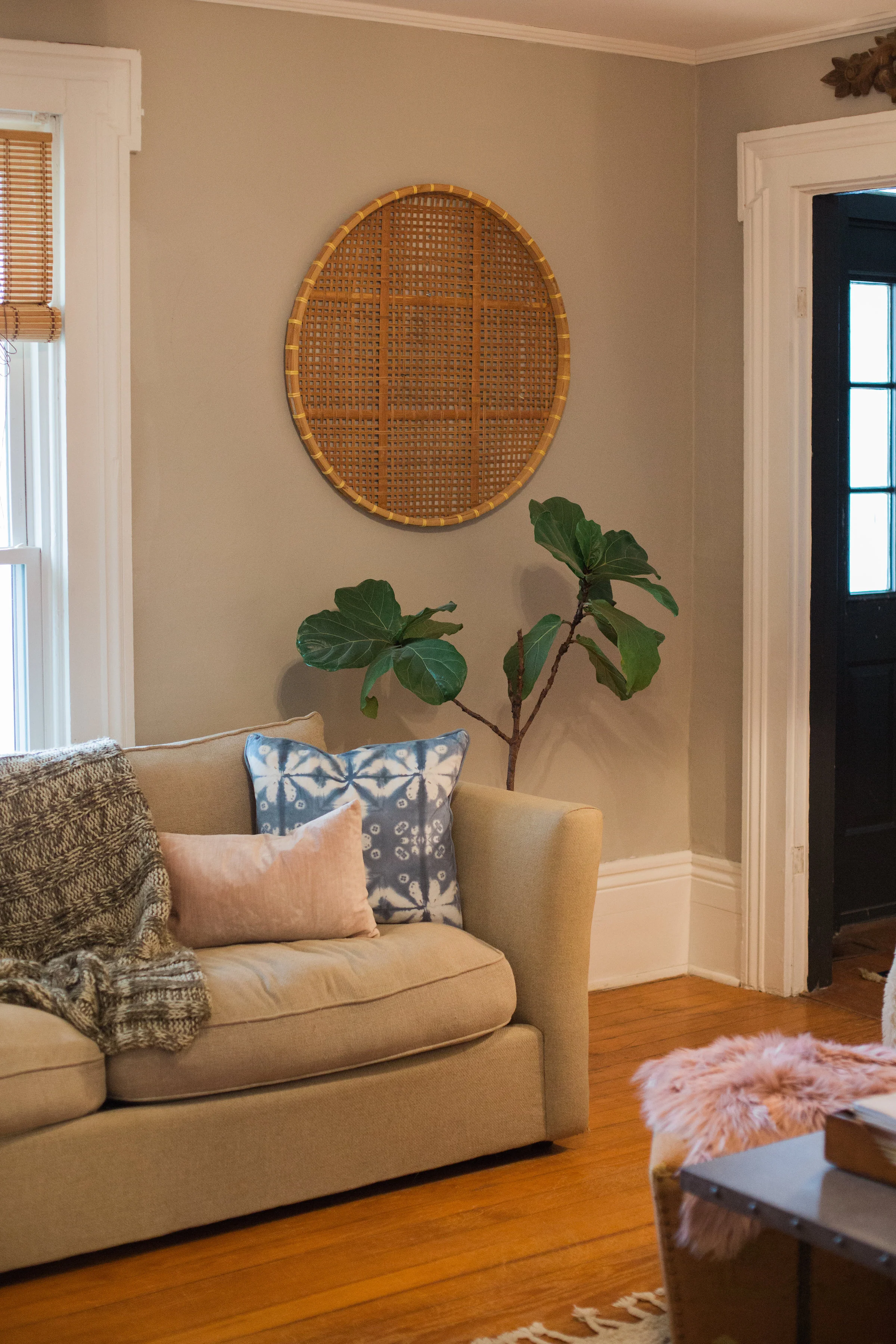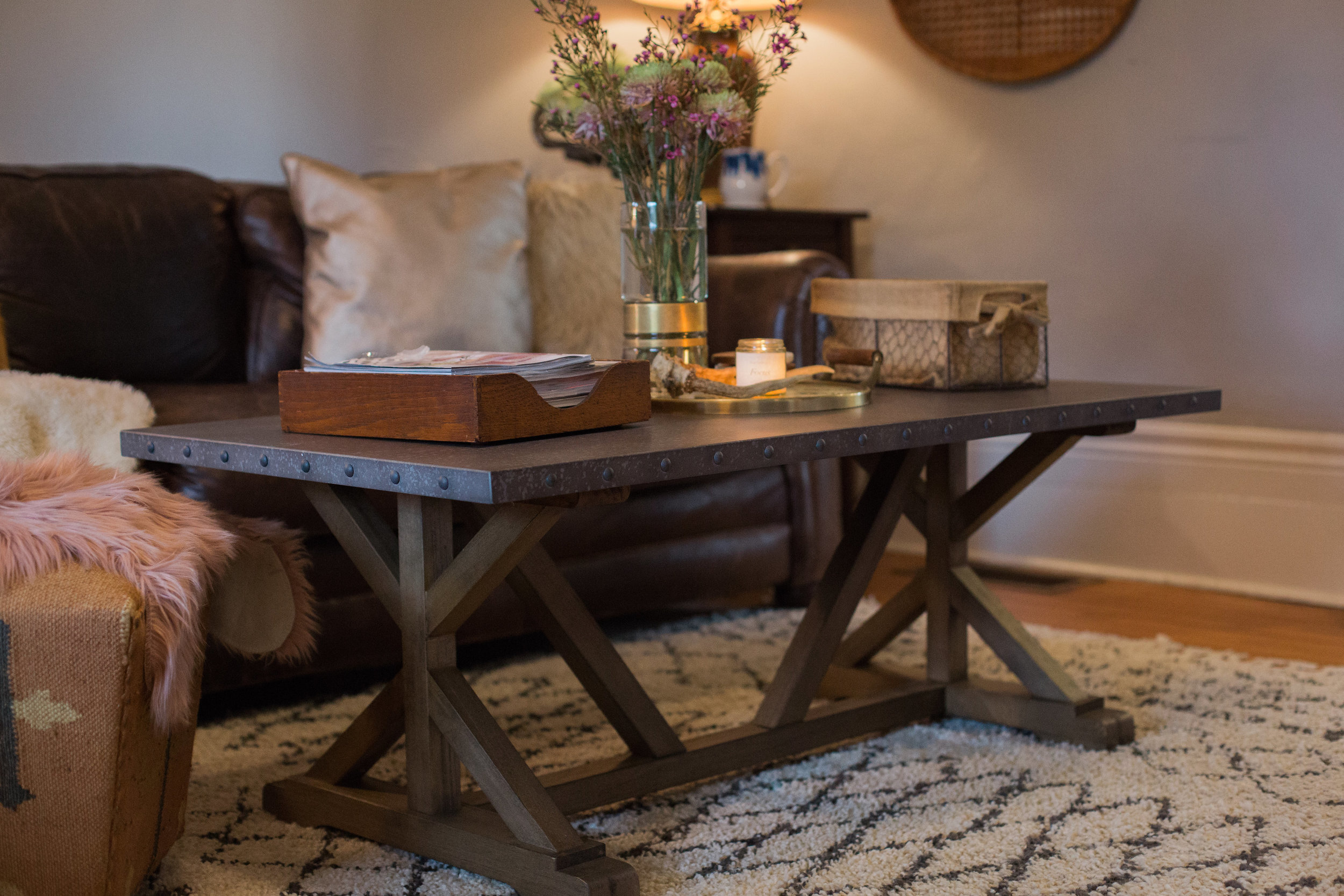 The time of year that is most challenging for me in decorating is definitely the January and February months. I've packed up all my holiday decor but it's still a little too early for full-blown spring colors and accessories. This year I was able to bridge the gap a little easier by incorporating some pale pastels and lots of layered neutral textures into my living room to bridge the gap between January and the beginning of spring. As spring as crept closer, I've continued updating and adding more spring touches and accessories throughout the space. I'm loving the feel of all the pale neutrals, layered textures, and pops of green- a little boho and a little farmhouse style overall. I also got a new coffee table which I'm loving as it totally has the perfect modern farmhouse look. Below I've listed a few easy eays to update your living room decor for spring while still keeping it super cozy! Take a look at how I gave my living room a little mini makeover to wake it up after the winter months!