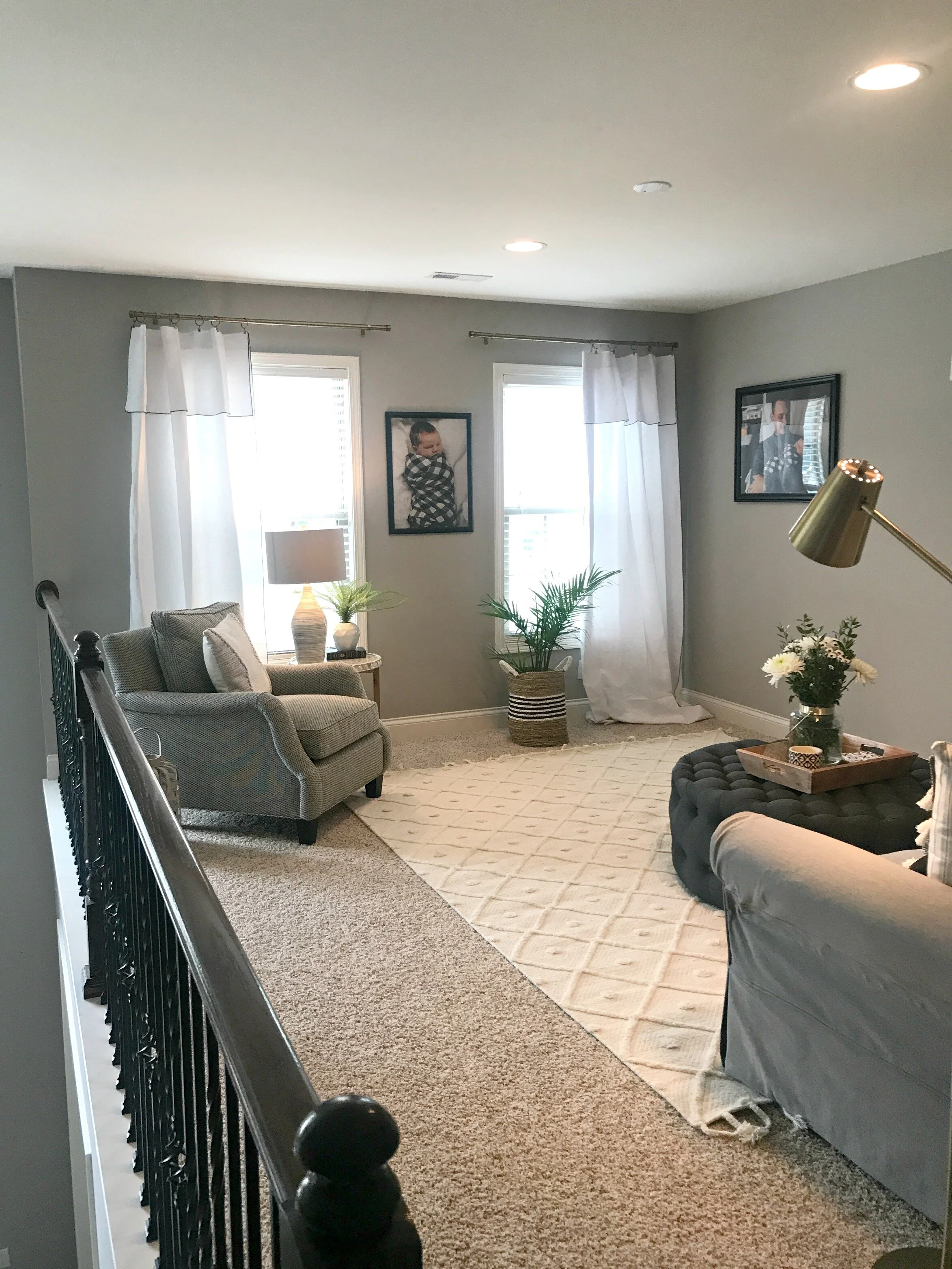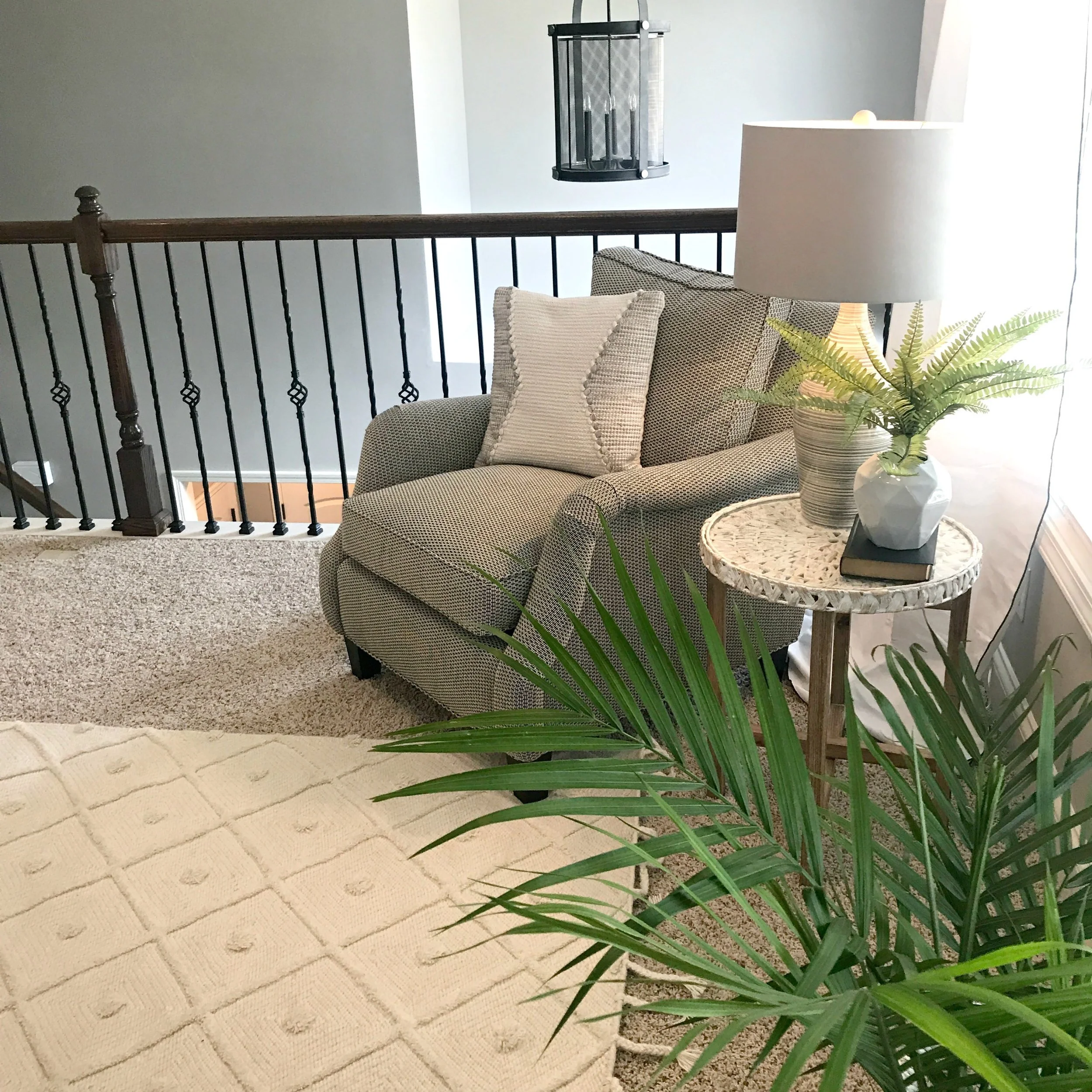 This past week I started wrapping up the final stages of a design project I've been working on for the past couple of months for one of my favorite clients. The install day of all the finishing touches and accessories is always my favorite because it always makes the space feel the most complete and cozy! This was my first time tackling a loft living space at the top of the stairs like this and it was definitely challenging, but I love the (almost) finished product. The main challenge was trying to make such an open space feel cozy and comfortable, as well as figuring out the right way to arrange the furniture when you are basically missing an entire wall of the room!