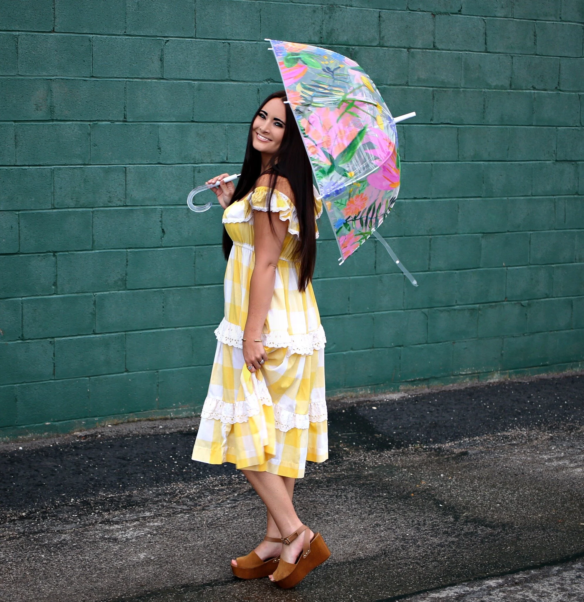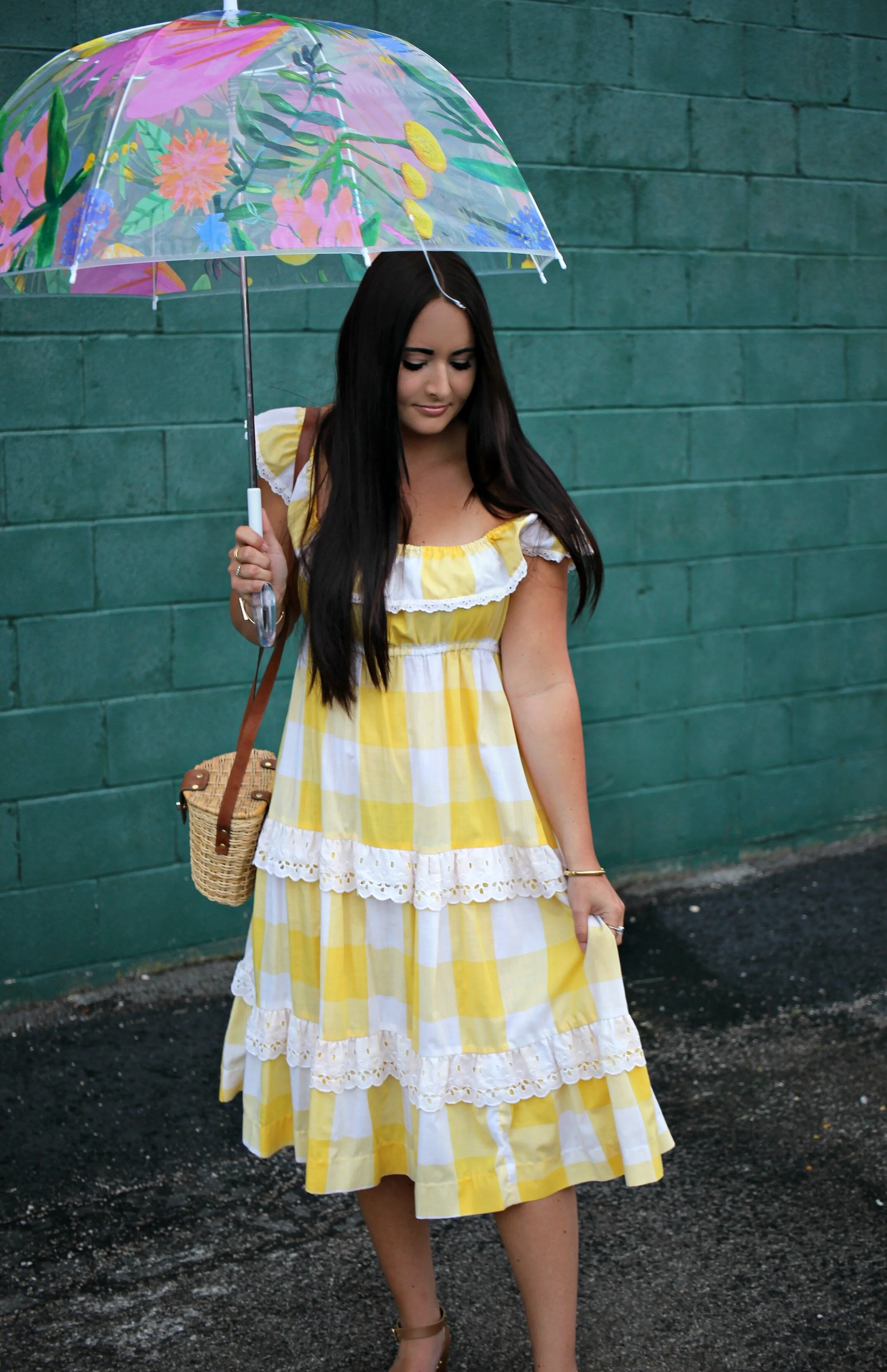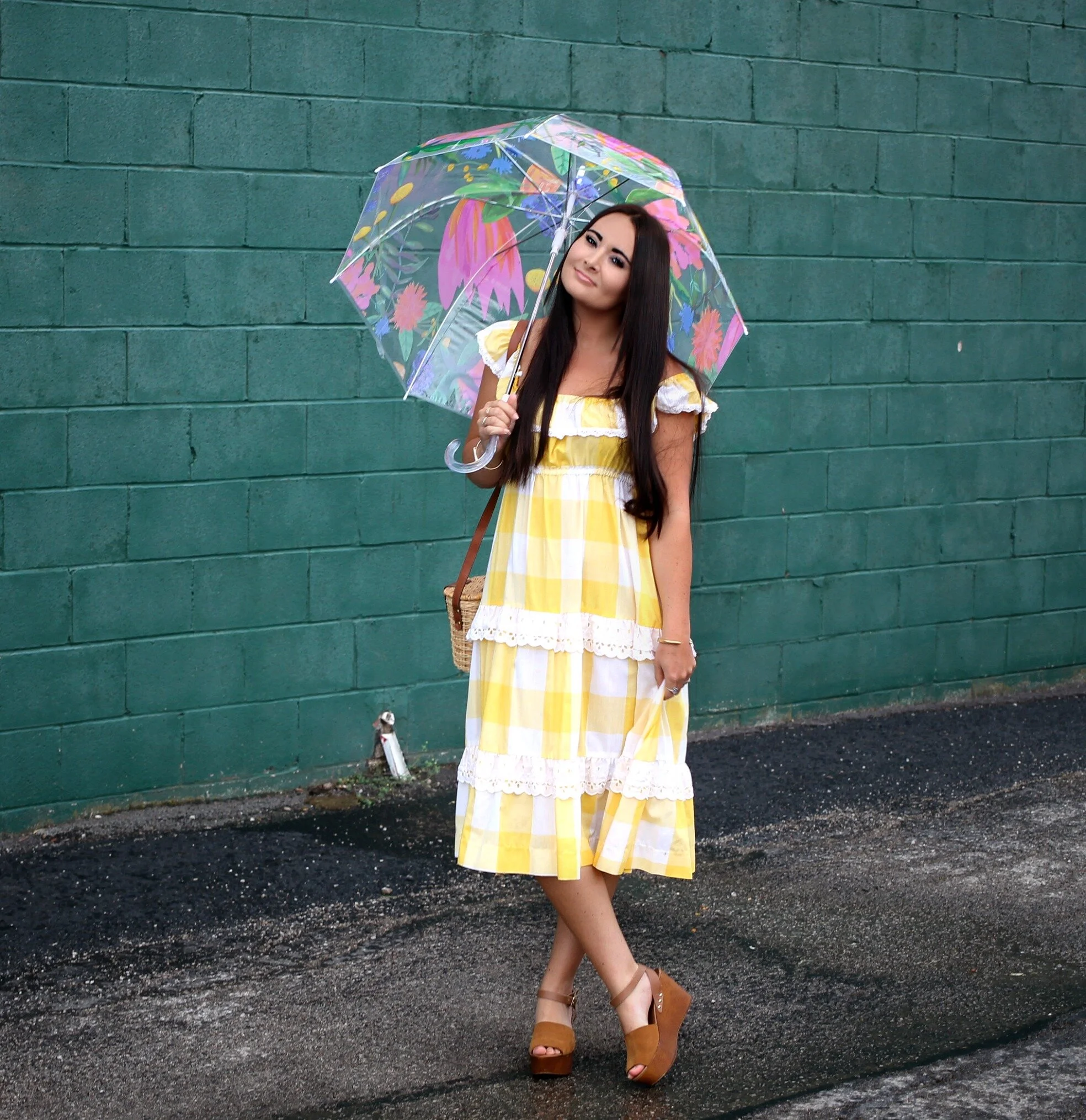 This sweet gingham vintage dress is one of my all-time favorites. I love the cheerful color, ruffle eyelet details and empire waist cut. The elastic waist and sleeves make it oh so comfortable and easy to throw on for summer too. I've linked both some new + vintage dresses yellow gingham dresses below for you to shop as well as the rest of my outfit details!