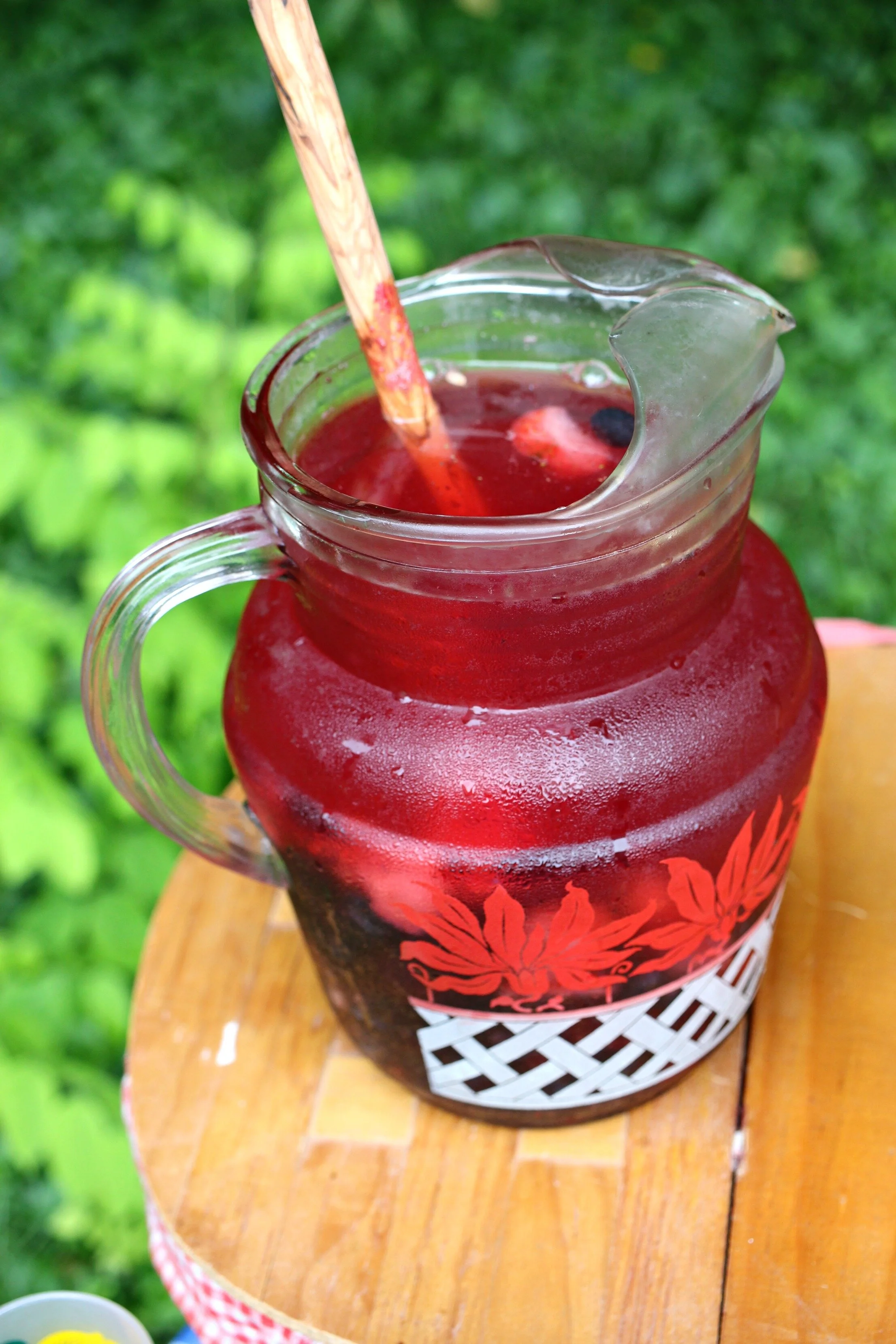 Directions: Add all ingredients to a large jug or dispenser- adding berries + lemon slices last; stir well to combine; you can cut recipe in half to make a smaller amount if needed