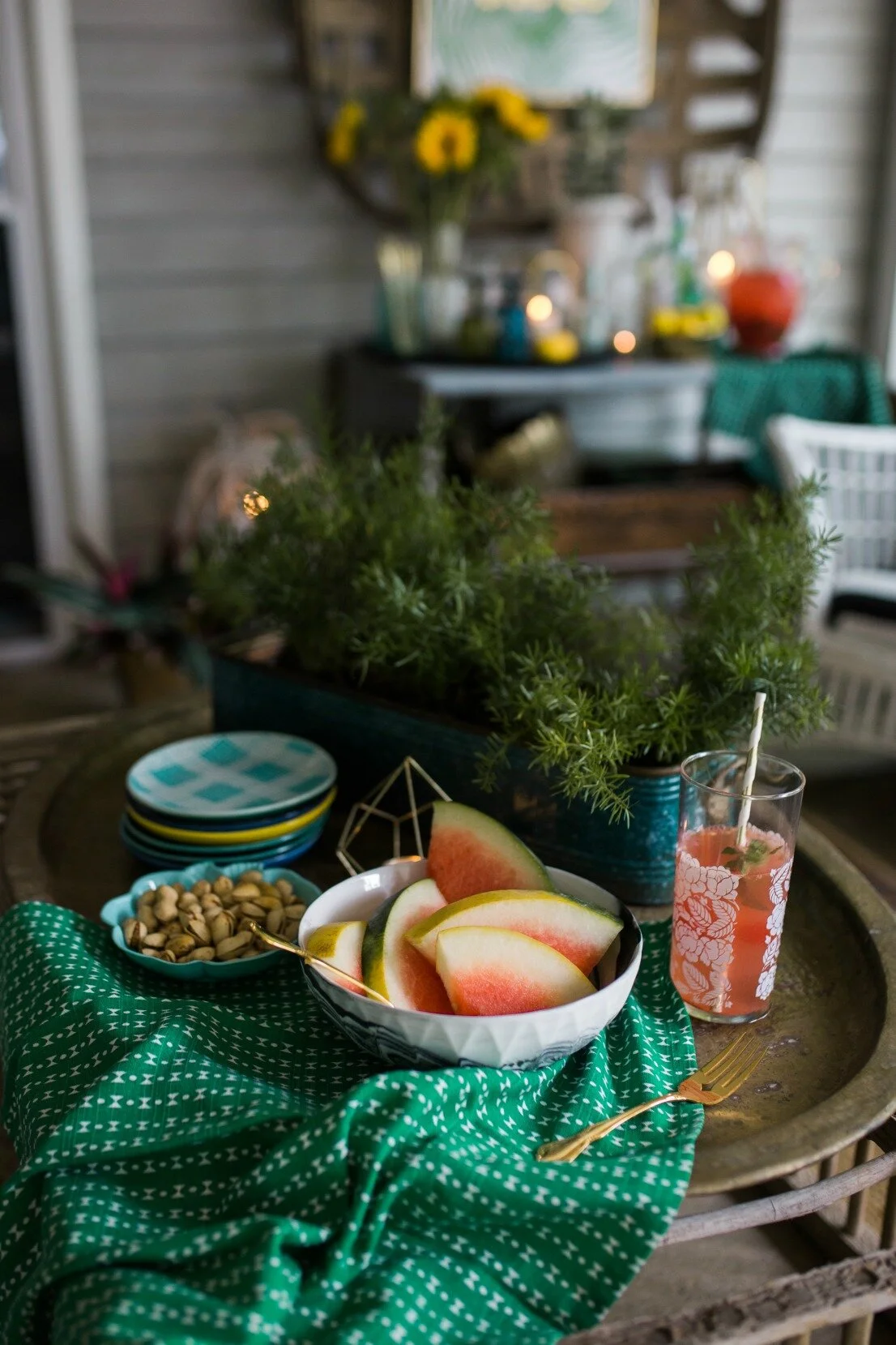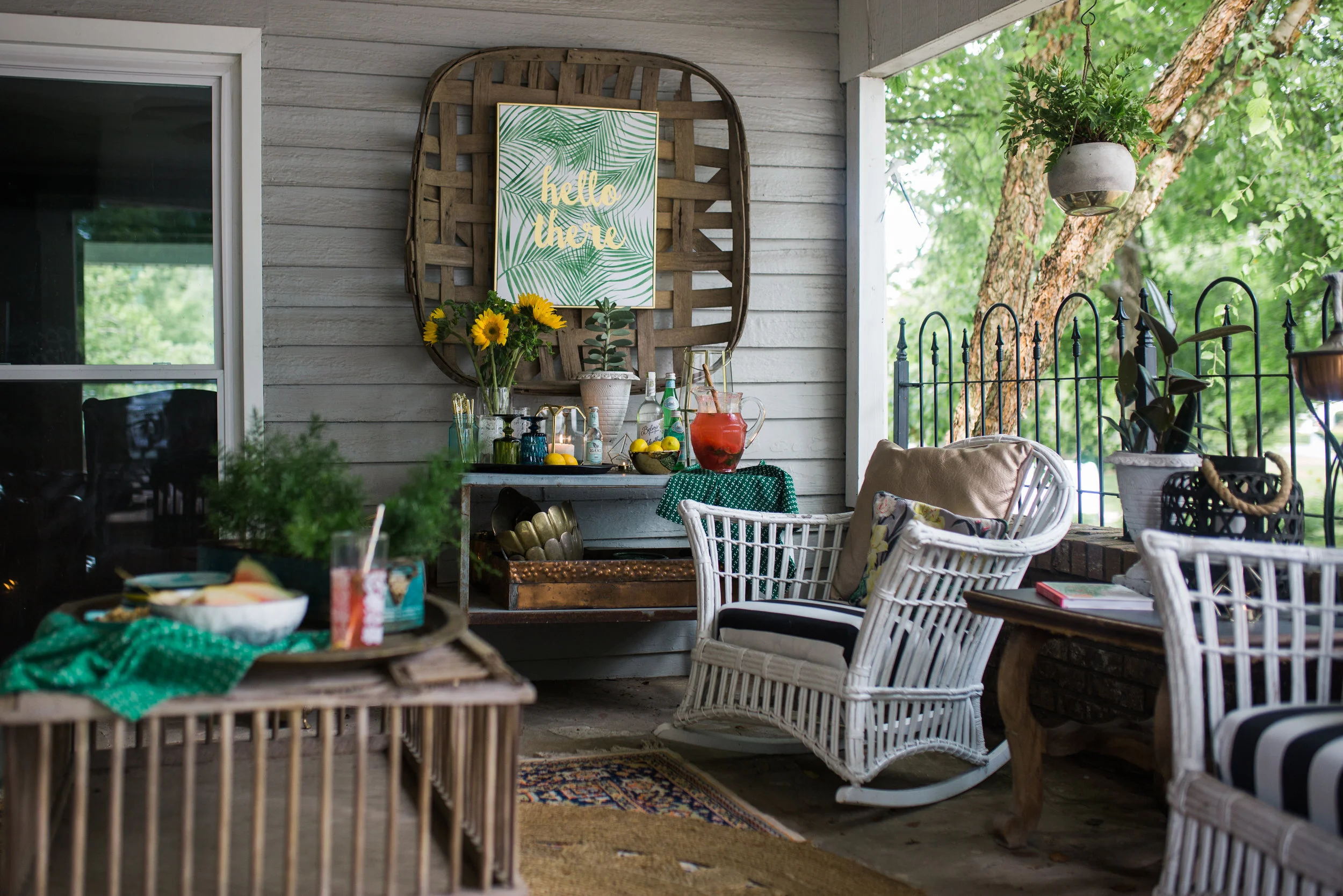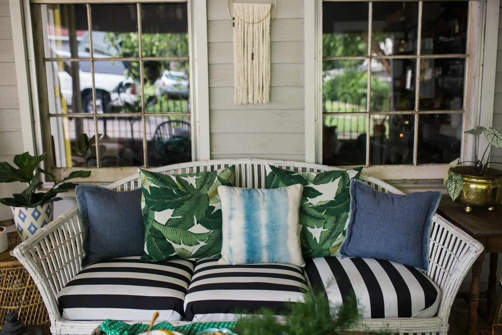 Today I'm sharing my summer patio which I refreshed and redecorated just a little bit since last year. The biggest change out here was recovering the cushions on my furniture with this black and white striped fabric from Amazon. The cushions have springs on the inside and are flat on the bottom, so I was able to recover them easily with a staple gun, scissors, and no sewing. I shared a little more about my porch clean-up process and everything that I added/ changed here.