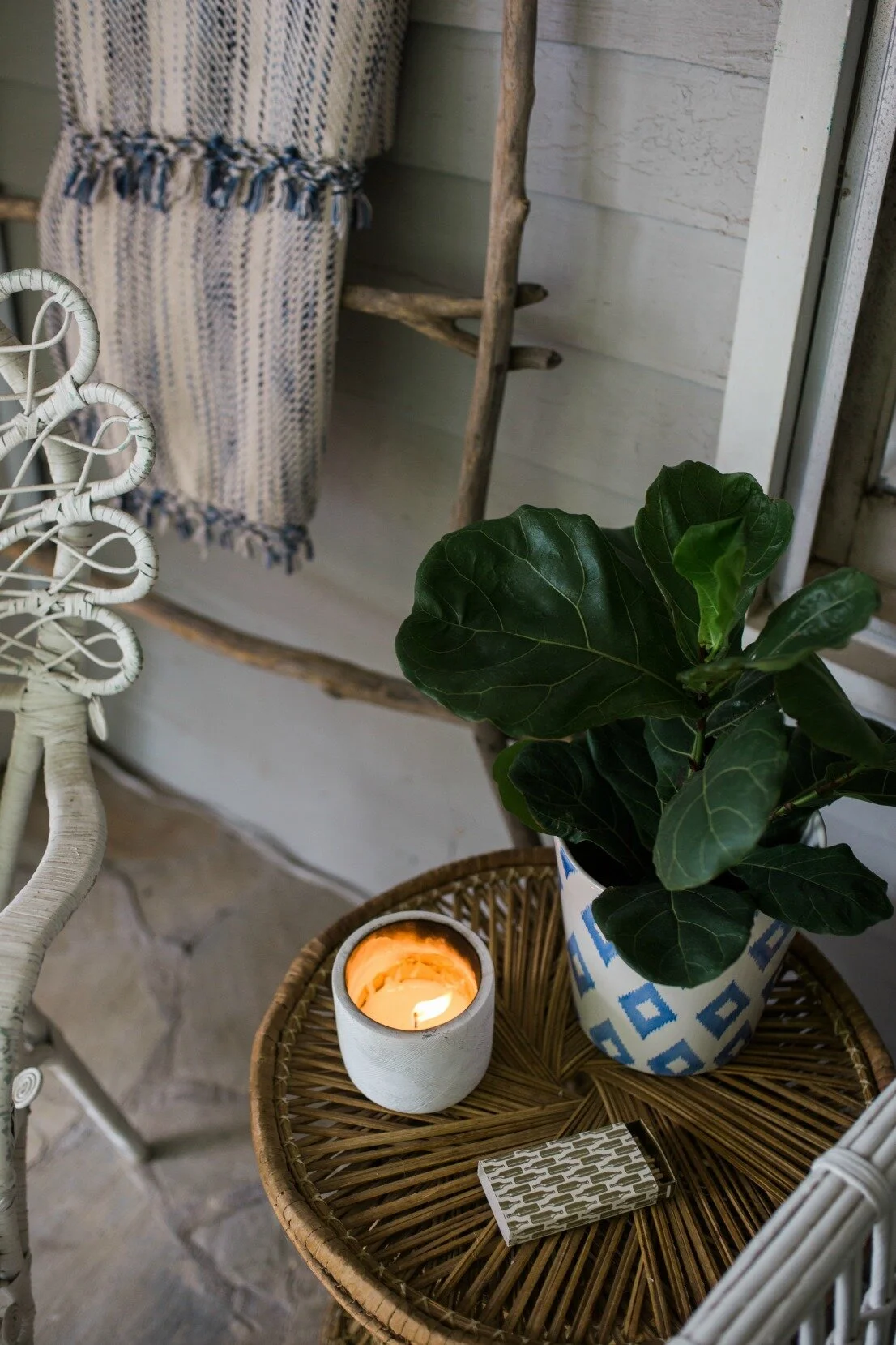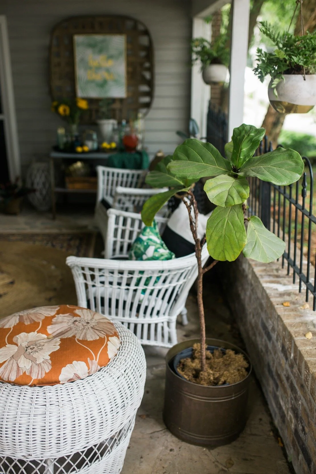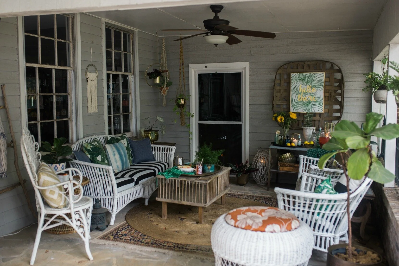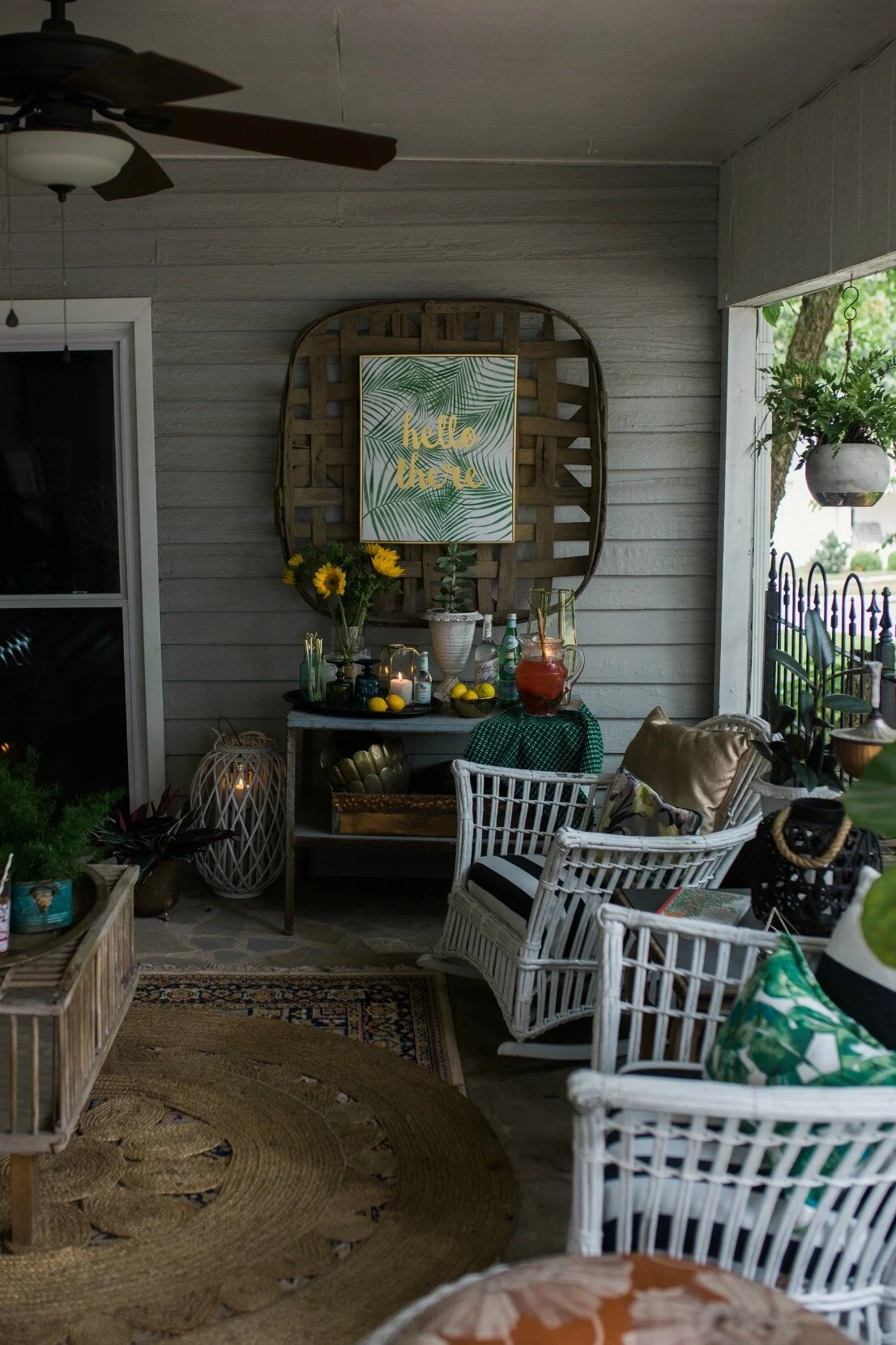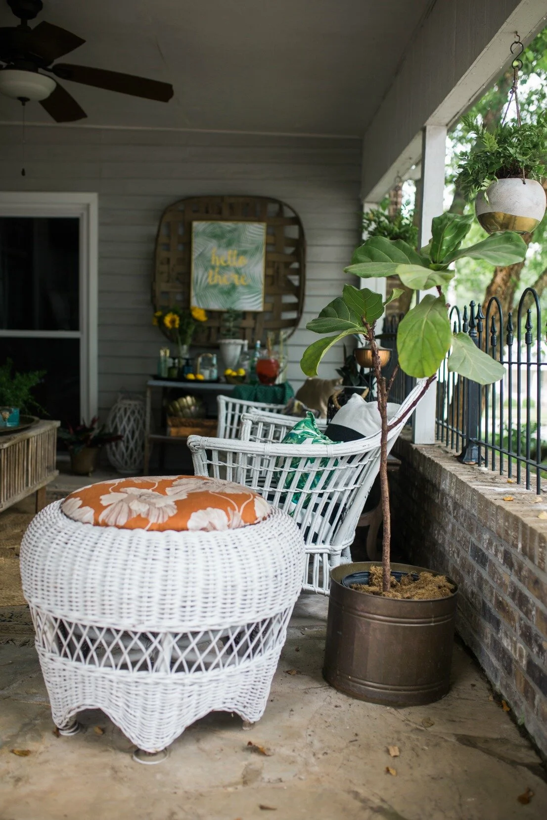 Like many areas of my home, most of the items out here are not new, and most are thrifted or second-hand. I think it makes even more sense in an outdoor area to be a little more thrifty and creative with furniture and decor since it may easily get damaged or wet quicker. I was lucky to get my wicker patio furniture for free as it was my grandmother's and is still in amazing shape. Other than that, all of my furniture was thrifted or collected from garage sales, while most of my accessories/decor pieces are newer from Homegoods, At Home, or Target. I love to mix and match the older and newer pieces and I think it makes the space feel extra cozy! I've linked tons of similar decor pieces for you to shop below, but if you have any questions about anything else on my porch- just ask!