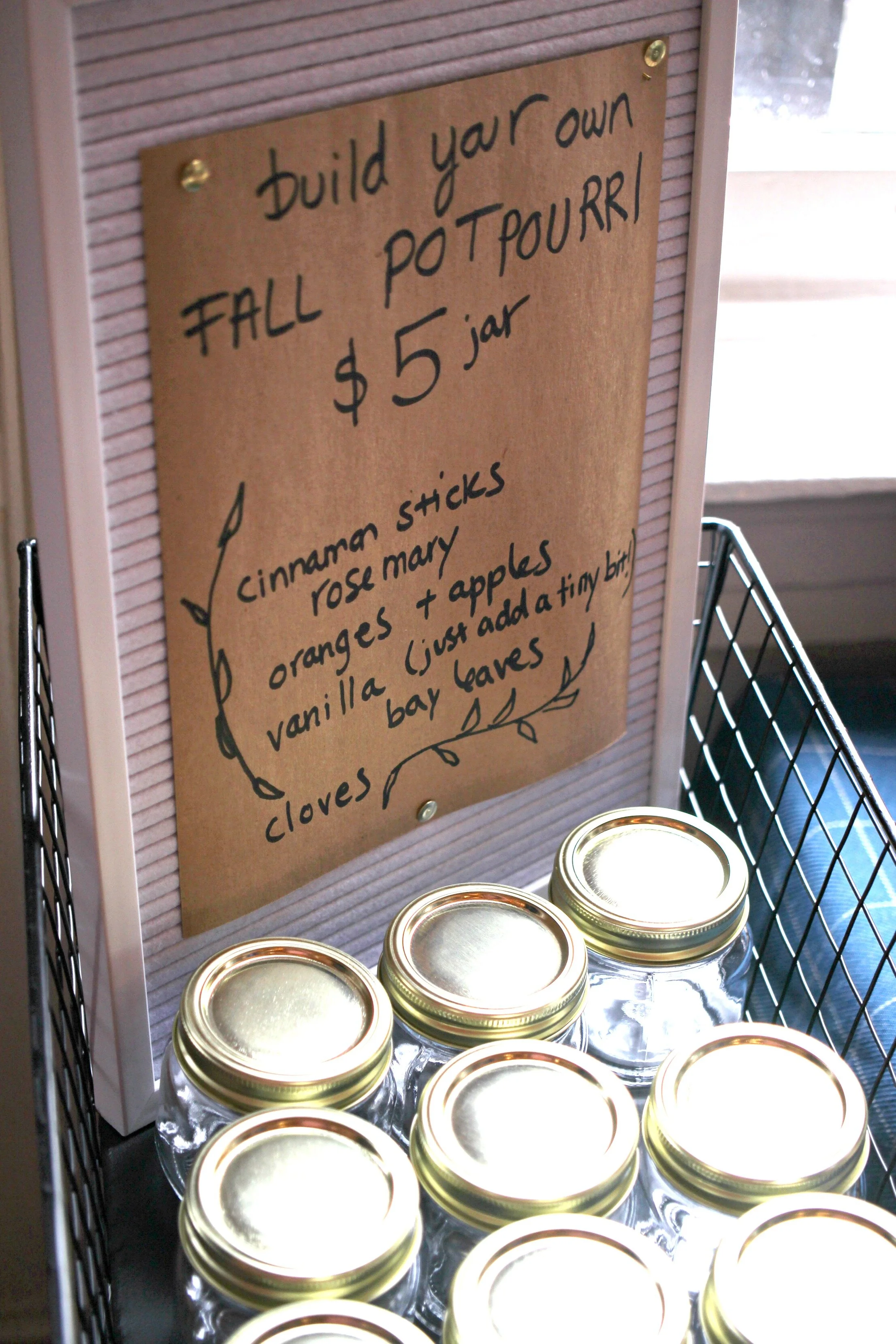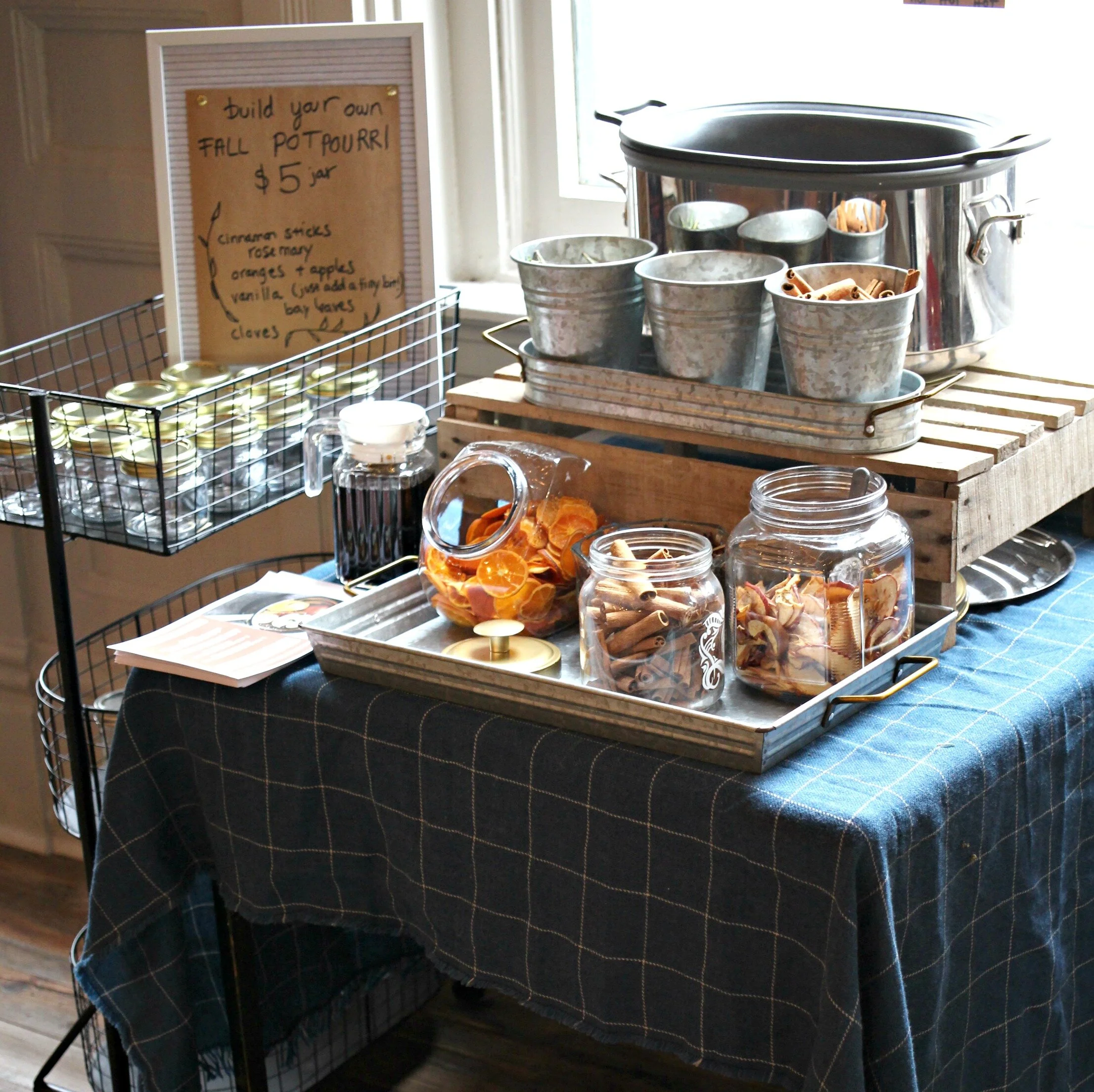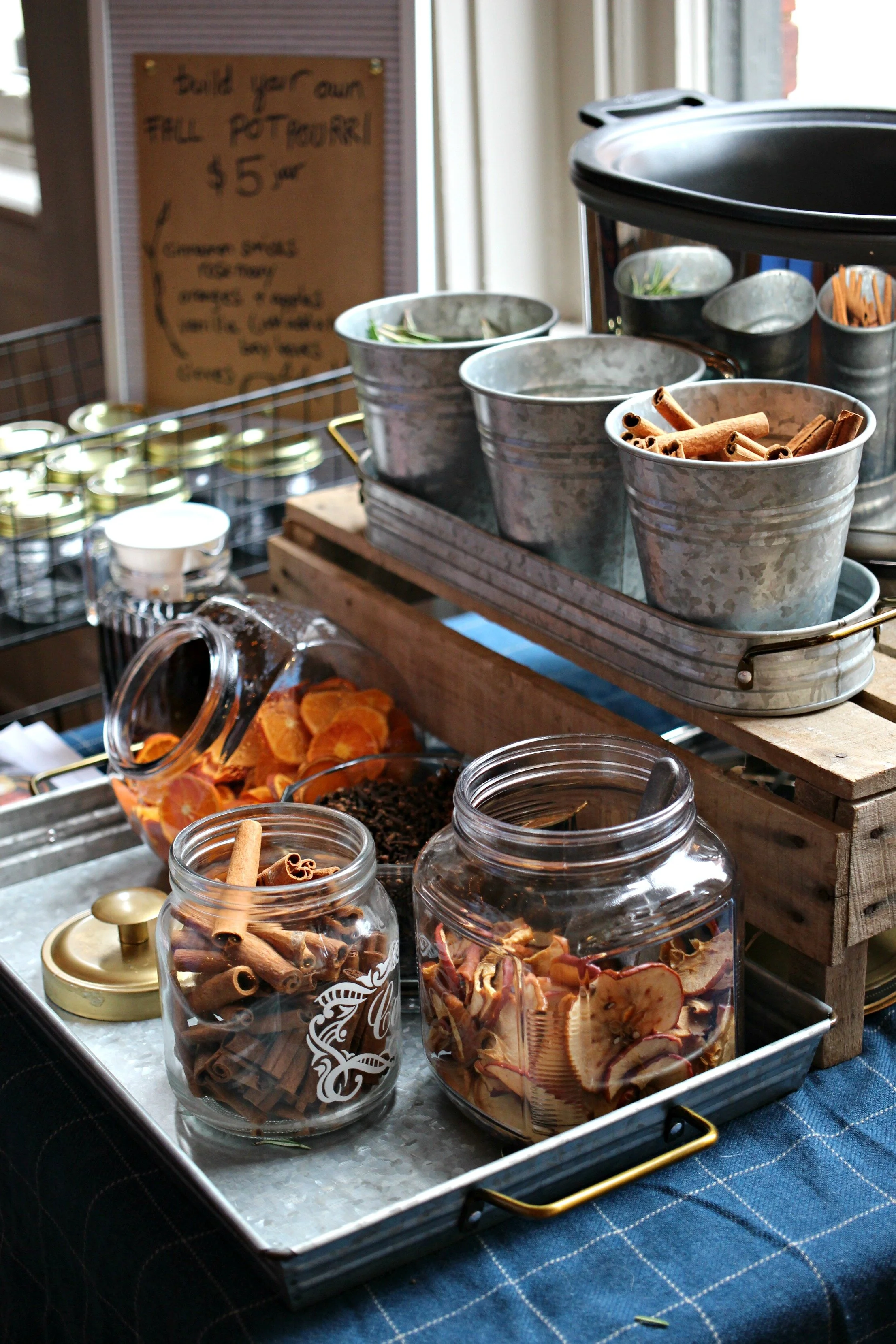 One of the best parts of autumn is undoubtedly all the wonderful scents of the season! For a couple of years I have been putting together these homemade stove-top fall scents for the store and my own home. Each year I have added a few more ingredients and perfected my recipe a little more. These little jars of ingredients pack a punch, within a few minutes they will make your whole home smell just heavenly and exactly like fall! I've included all the ingredients and step-by-step directions below so that you can make your own. We recently had our own build-your-own simmering scent station set up at the mercantile and it was a huge hit! We had all the ingredients ready and empty jars available for customers to fill and customize themselves. Be sure to follow us on Facebook and Instagram to find out first when we’ll be offering this in-store again!
