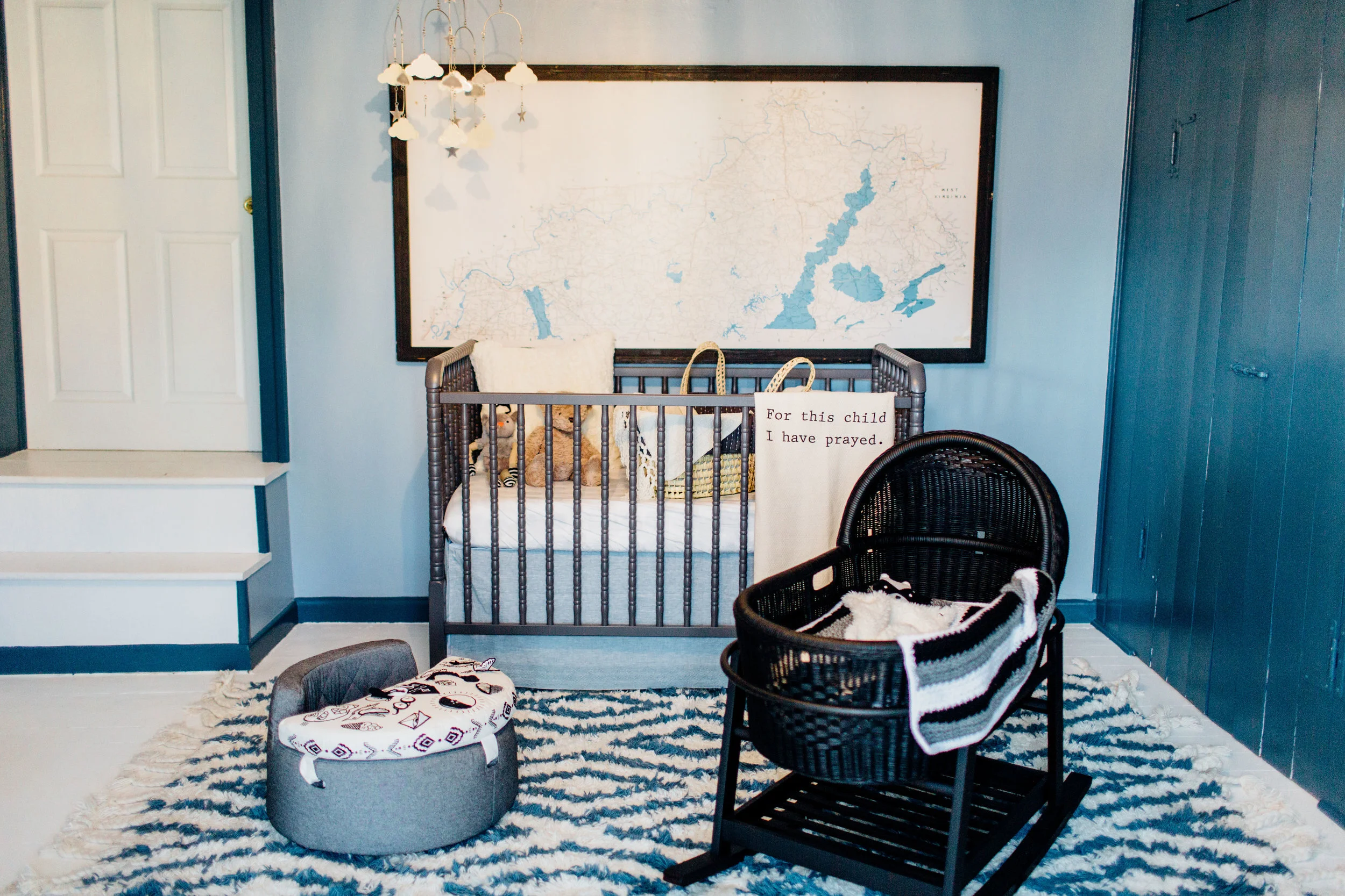 Bassinet was a hand-me-down from my sister-in-law (originally Land of Nod brand) + I painted it black