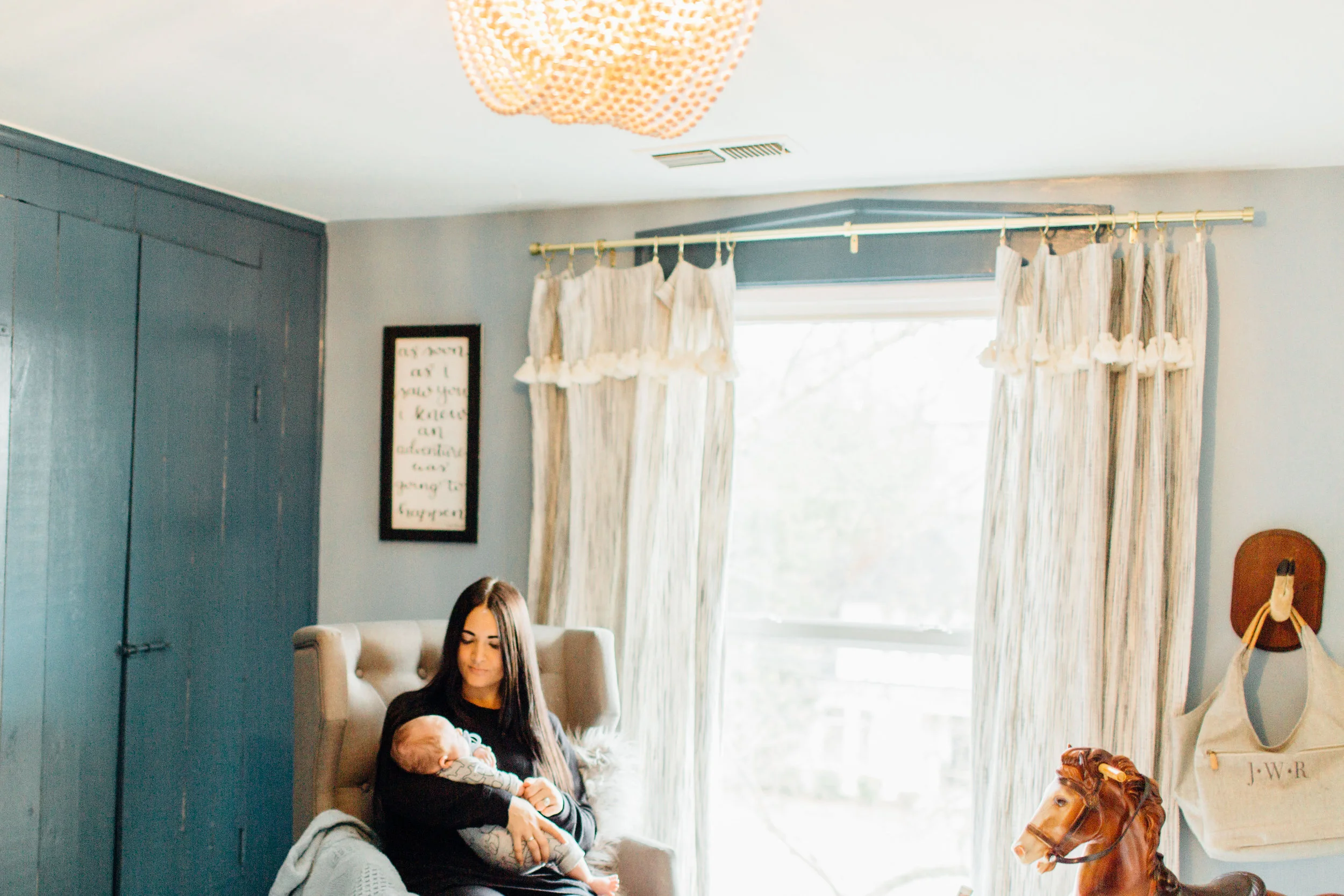 We welcomed our sweet John Woodford into the world on November 26th, 2019, exactly a week after his due date. Almost two months have simultaneously flown and crept by since then, but I am loving every second of watching this precious boy grow. John Woodford has slept in his nursery every night since the first night we came home, so this room is getting plenty of use. I wanted to finish it completely before he arrived, and since he took his time, I had plenty of extra days to work on it! There are still a few things I want to add here and there, especially now that I have a better idea of what we need practicality wise, but overall I love how it turned out. It’s the perfect mix of traditional southern, modern, and vintage with sentimental keepsakes throughout. I loved designing this space as it was just an empty, blank white room when I started a few months ago. Just about every piece has meaning in here which I love. I can tell John Woodford all about each item as he gets older and I can’t wait to watch him grow and learn in this room. I’ve linked up all the decor sources I used through out this space and some of my favorite baby items for you to shop below. If you have any questions about anything not mentioned, just ask!
