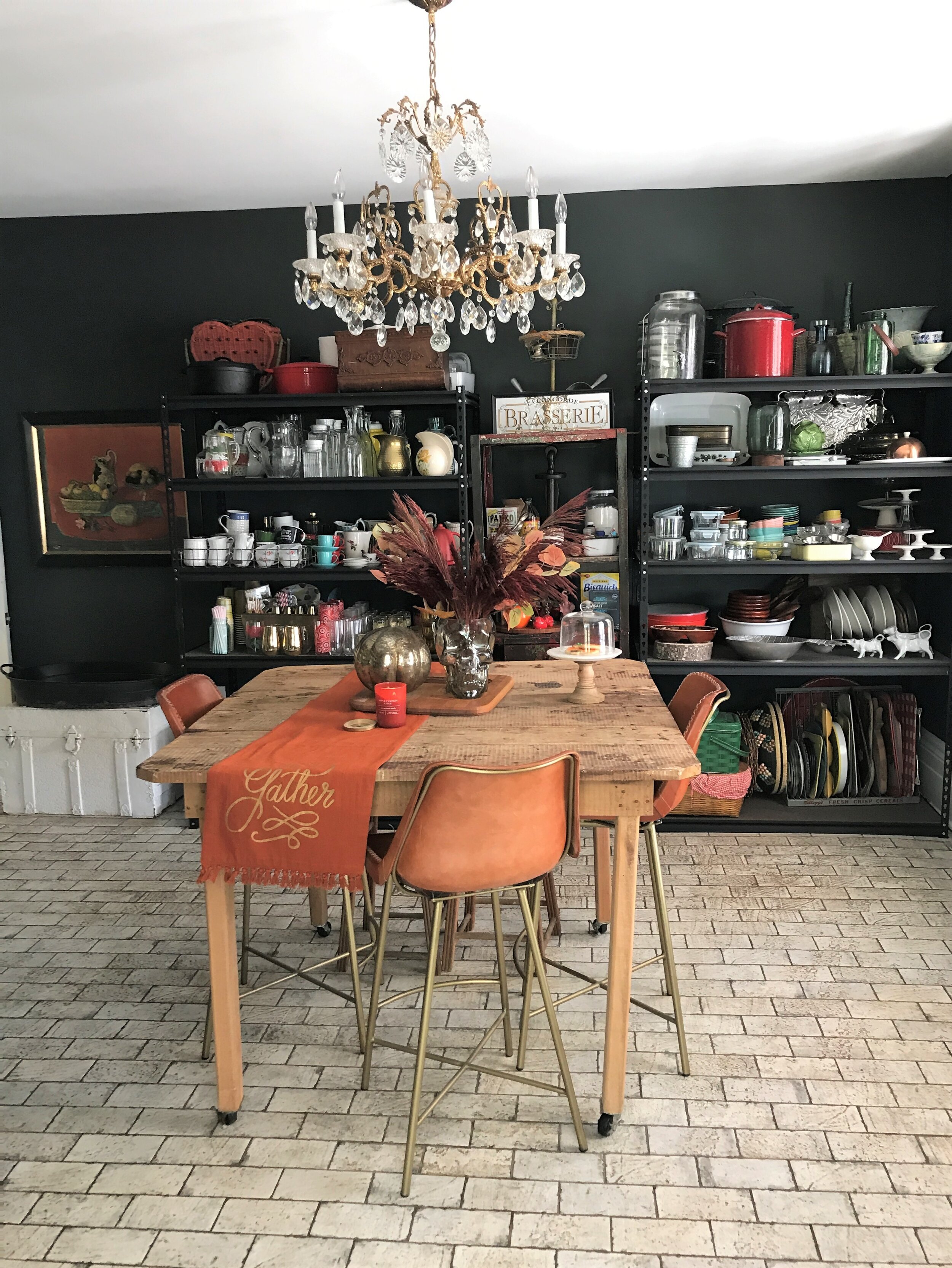 The last space I’m sharing on my fall tour this year is my pantry! I don’t usually do too much in here as far as fall decor but this year I added a few little touches throughout and it ended up being one of my favorite fall spaces! We have been using this room a lot this fall and this table is becoming one of my favorite areas to spread out and work on various projects. My favorite part of the entire space is probably the skull vase on the centerpiece of the table- it was a Homegoods find but I’ve linked some similar options below along with the rest of my fall decor pieces from in here.