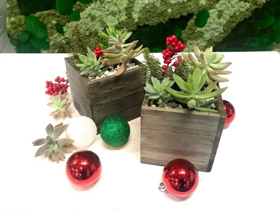 This holiday succulent workshop will double the fun by including a second arrangement to add more festive flair to your space OR for you to give as a gift to your loved ones!