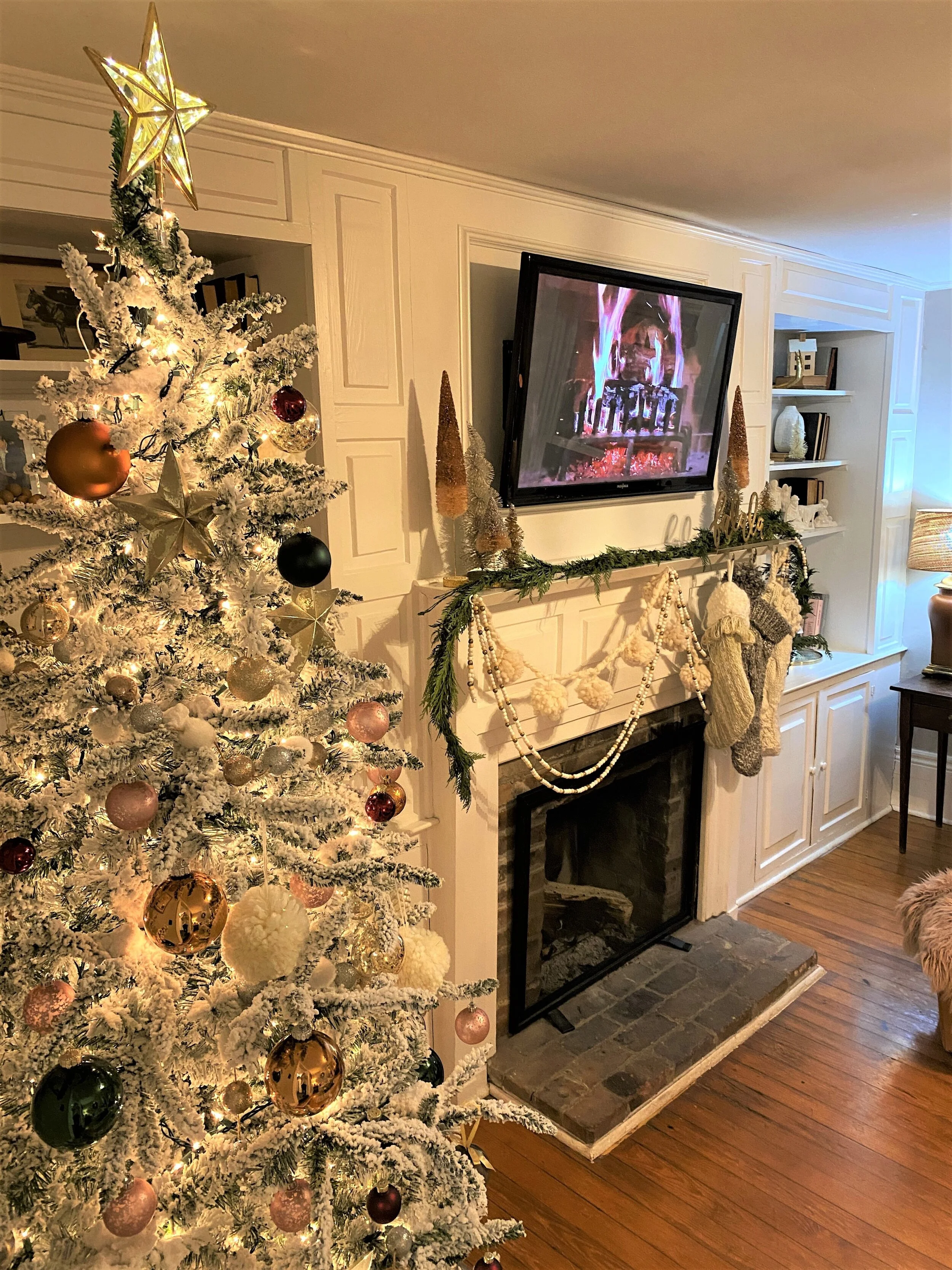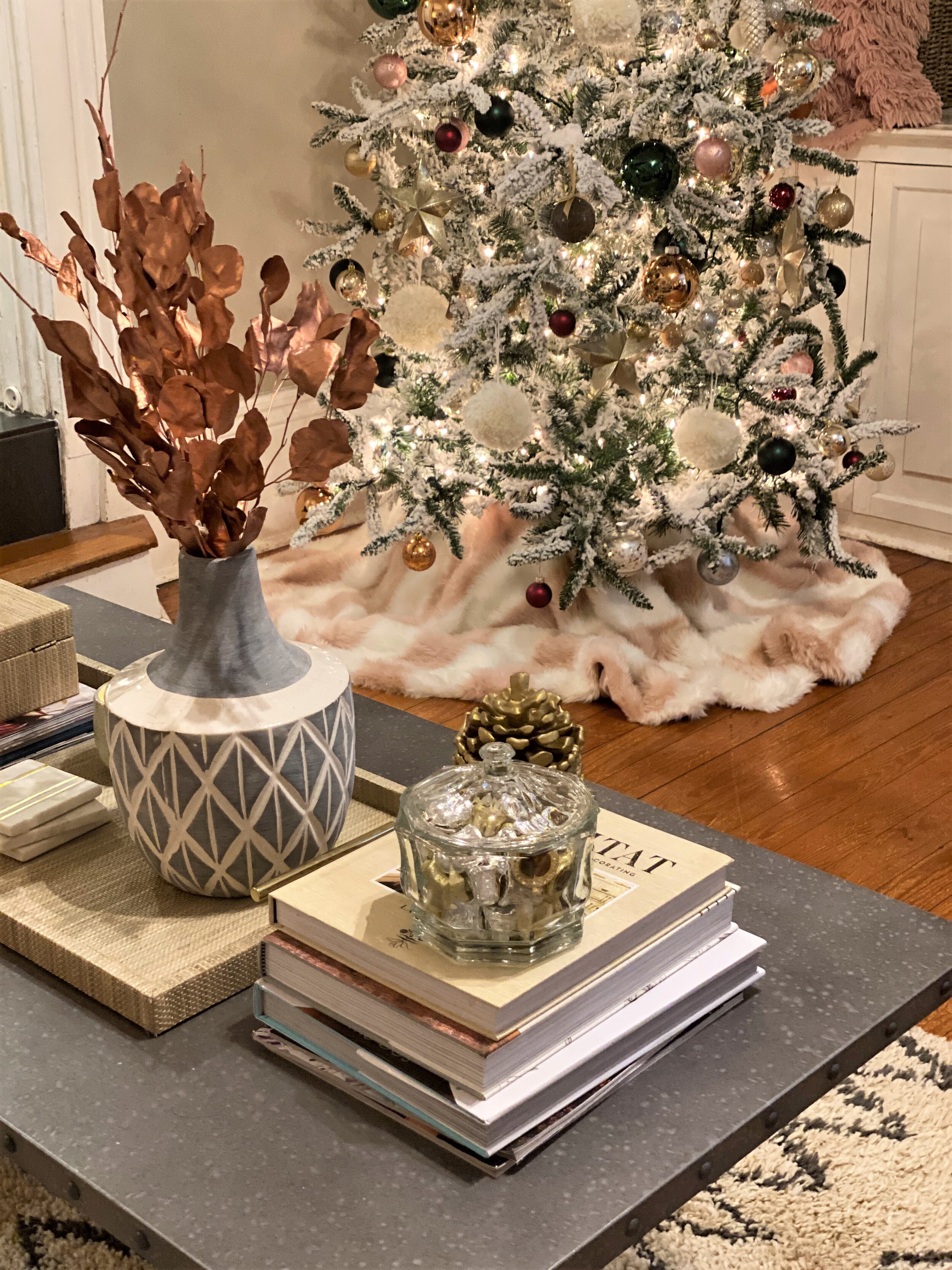 The next space I’m sharing on my holiday home tour is the center of our home, the living room! This is always one of my favorite areas to decorate and the first space I tackle every year. I love mixing the neutrals and pale pastels in here and lots of textures in the pillows, stockings, tree skirt, and garlands! Especially for your living room, I recommend choosing Christmas decor that will coordinate with your existing decor/colorscheme. It may not end up being traditional Christmas colors, but it will be unique and make the entire space flow seamlessly!