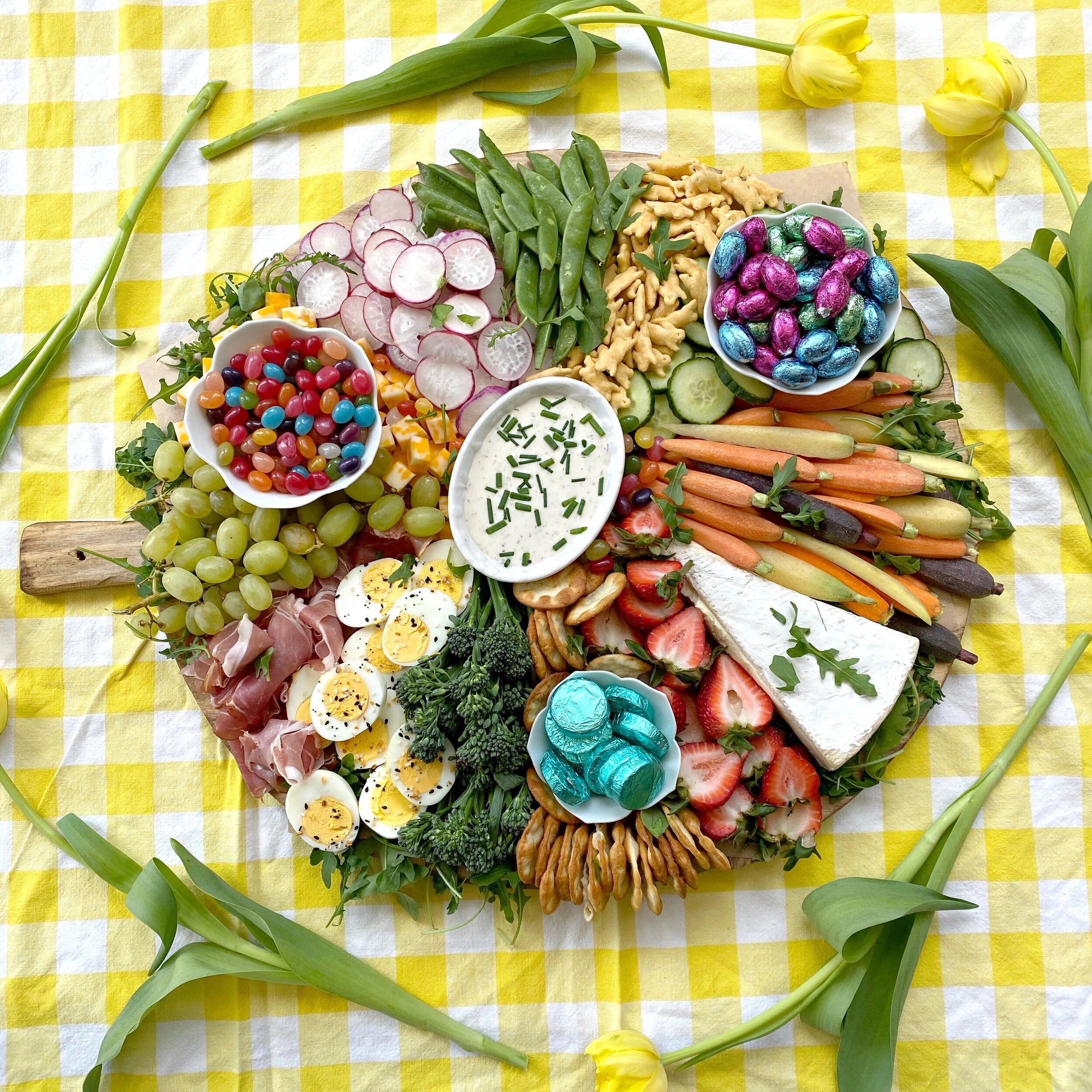 Next moving clockwise around the board, add you crackers, arranging them around your candy dish and filling from the edge of the board to the center dish.