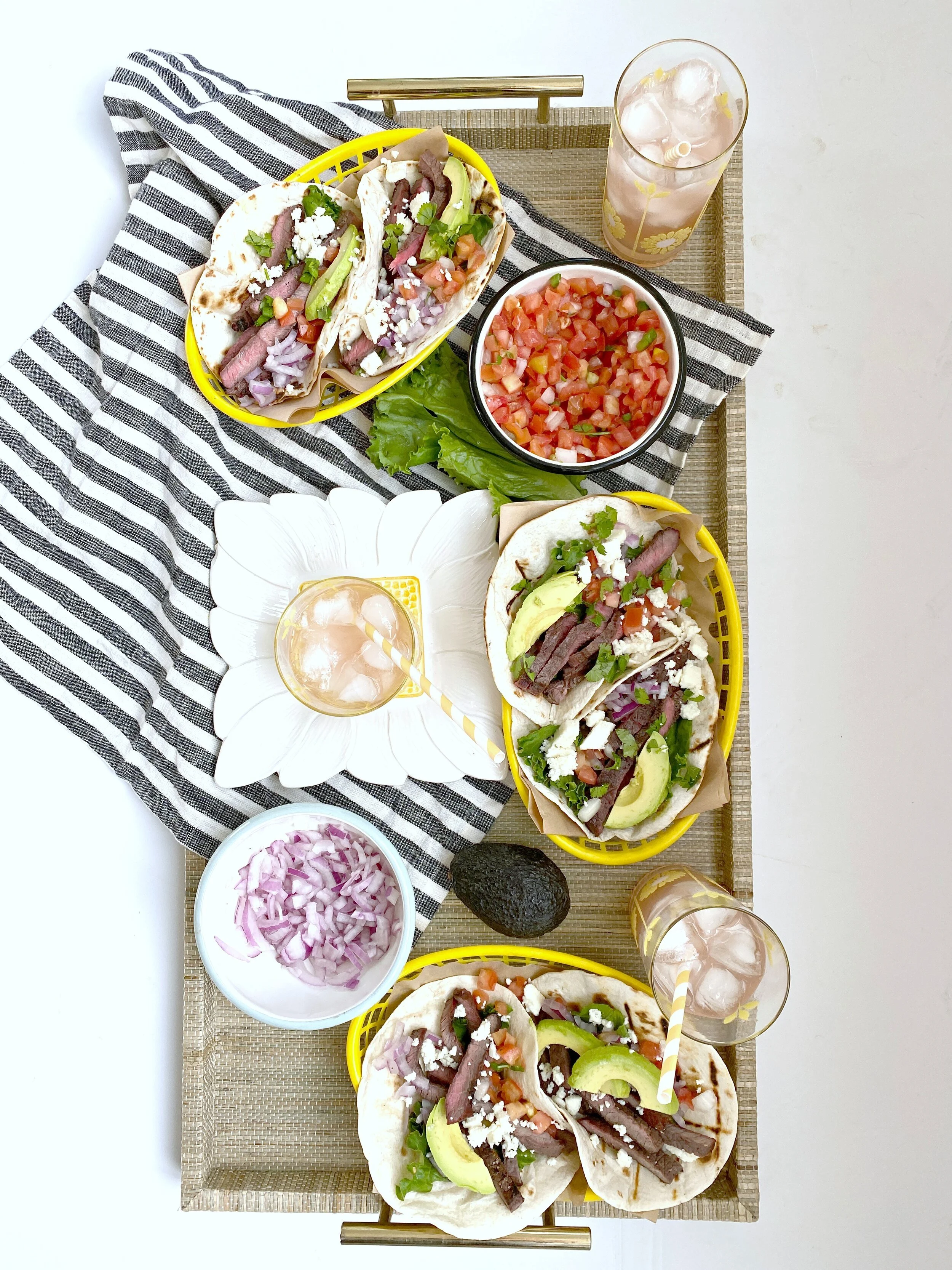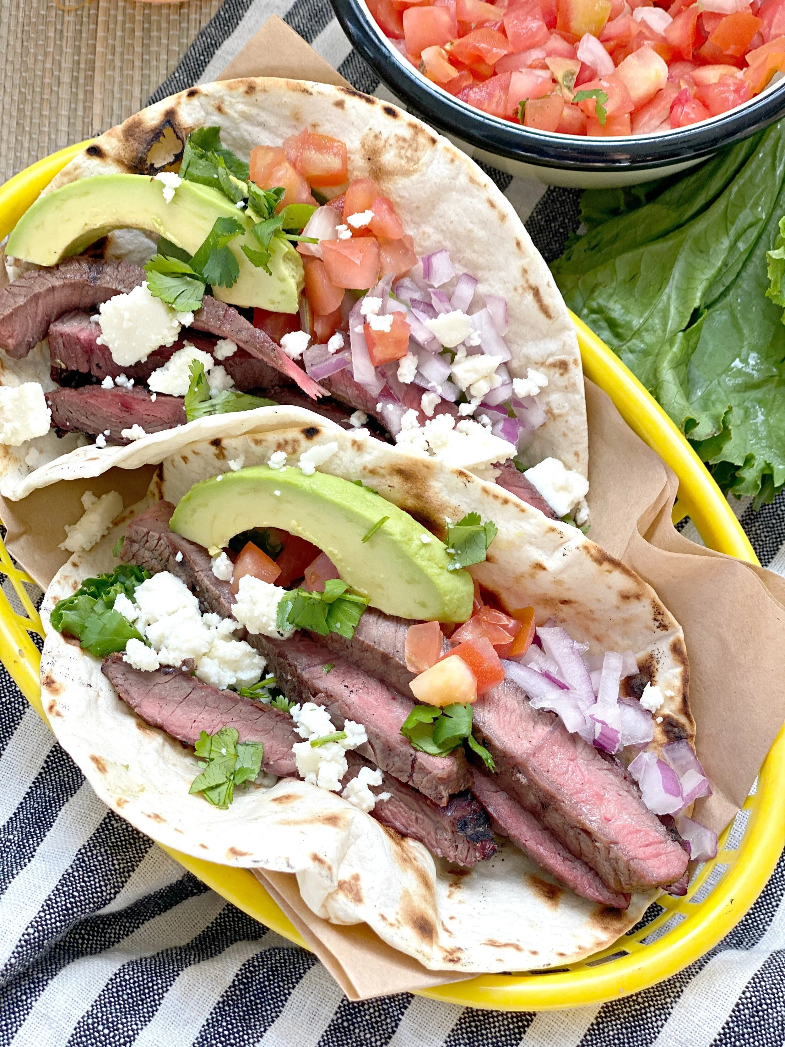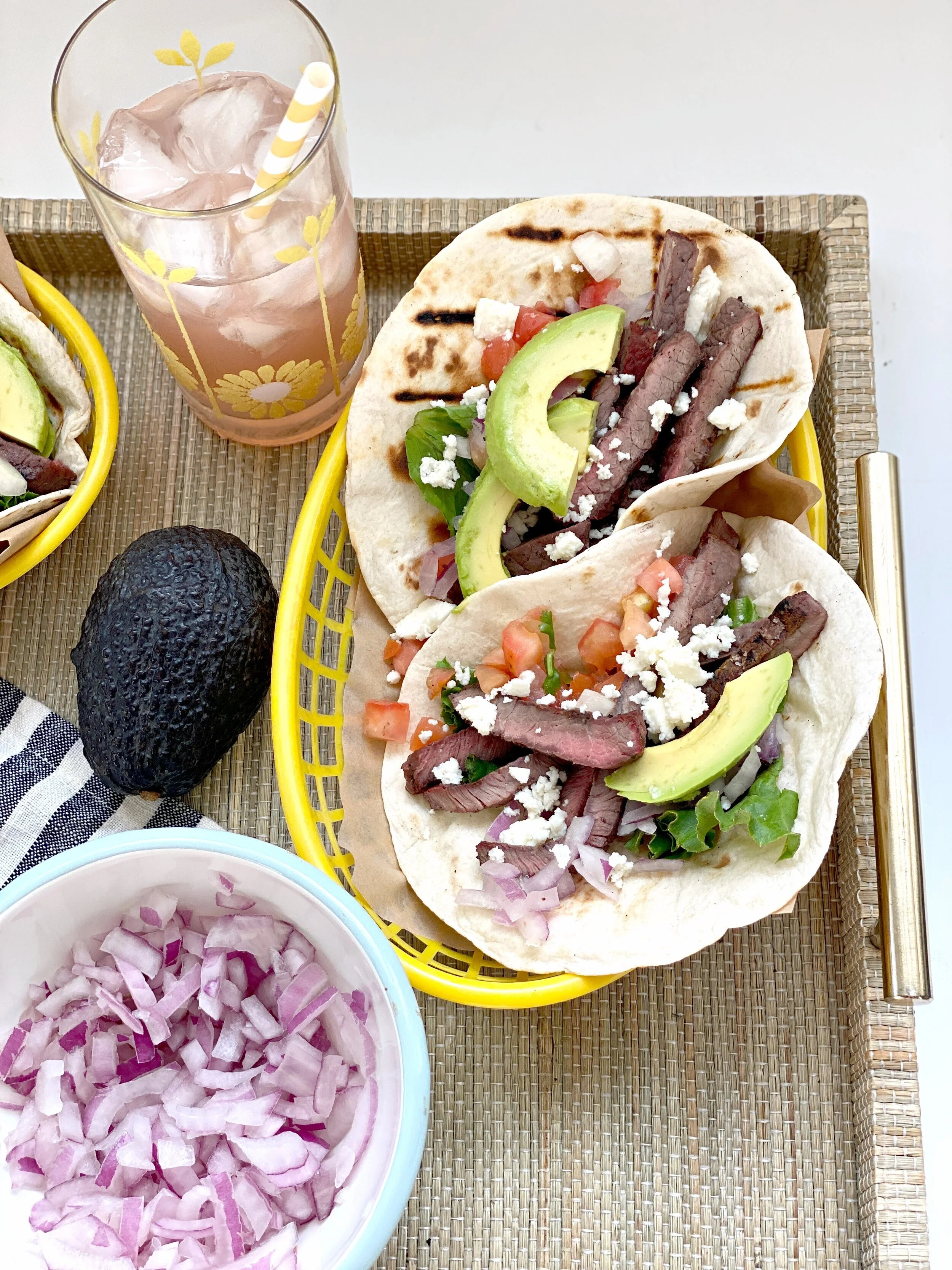 Tacos have always been one of our favorite quick summer meals and it seems like we’ve been eating some version of these at least once a week lately! This recipe is for super simple yet delicious summer steak tacos piled with tons of fresh ingredients and flavors. You can use any kind of steak really for this recipe but flank steak works best. We actually went ahead and grilled a one pound flank steak and even had half left over for extra recipes (steak salads anyone?)! You can really customize this recipe with your favorite toppings but I like to keep it simple so all the ingredients and flavors can really shine! Let me know how you like them!