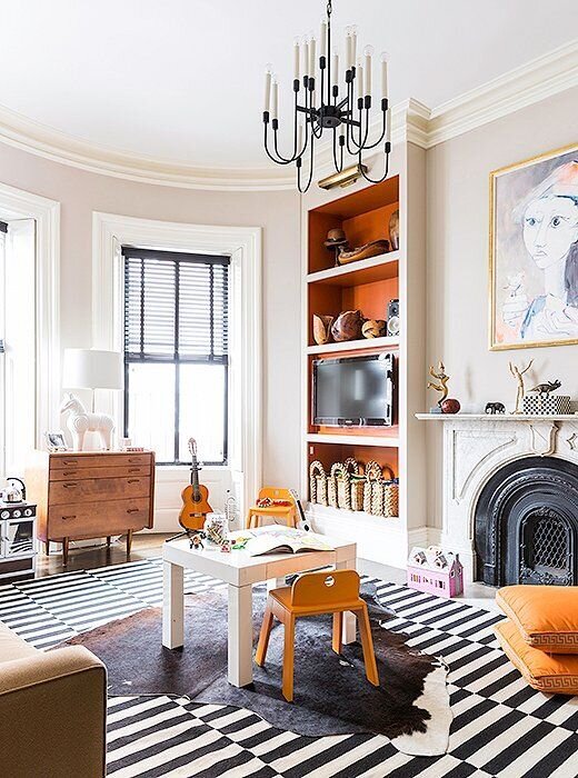 I was originally thinking something more along these lines on each side of the fireplace for storage or filling one entire wall, but now I’m thinking not this much/heavy cabinetry and something more open/smaller scale. I still do love the overall look of this room though and especially all the vitnage toys!