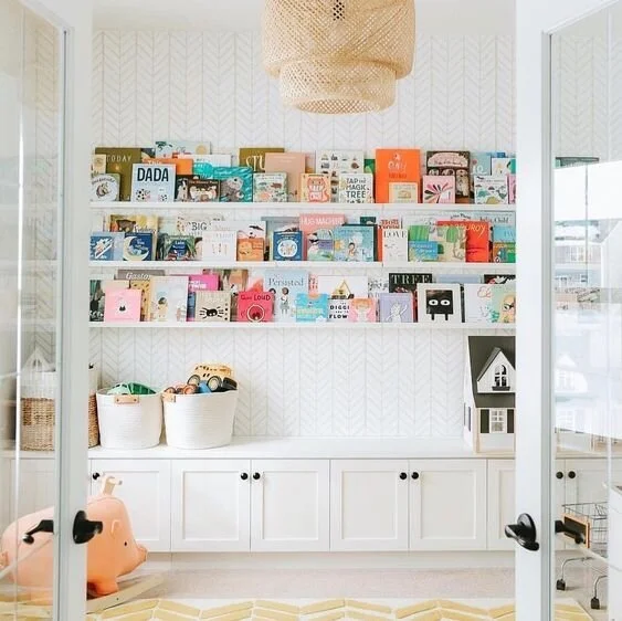 I am in love with this GIANT book wall and would love to incorporate something like this for the space. We have SO many books because I’ve been collecting children’s books for years. I would love to show them off with something like this.