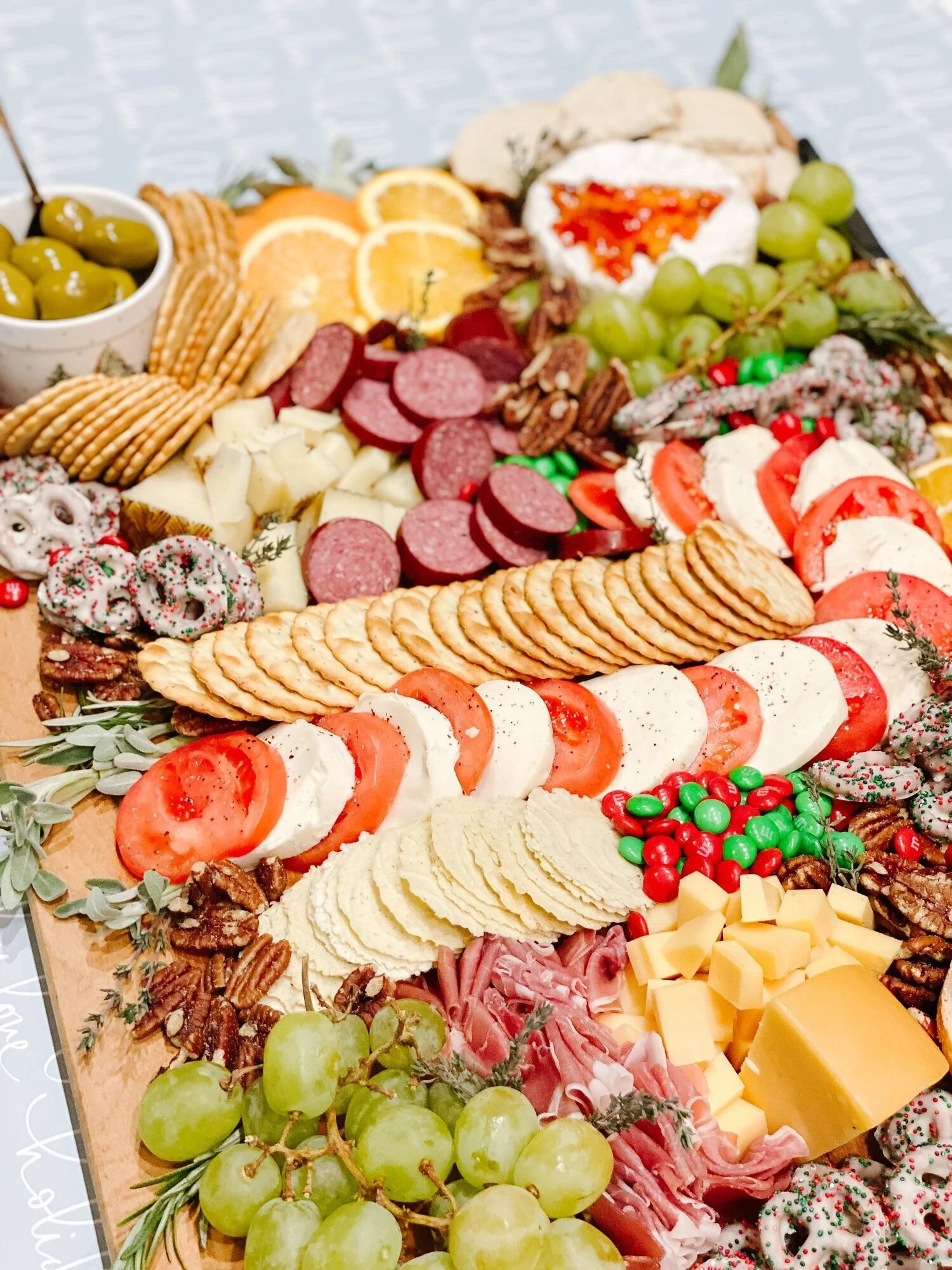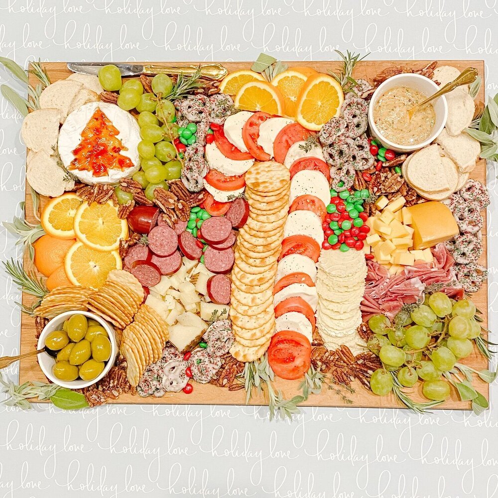 I love to share giant charcuterie boards for any holiday event and this one is very quick and easy to put together! It features all the holiday colors and a variety of flavors too! Find all the ingredients and instructions for putting this one together here.