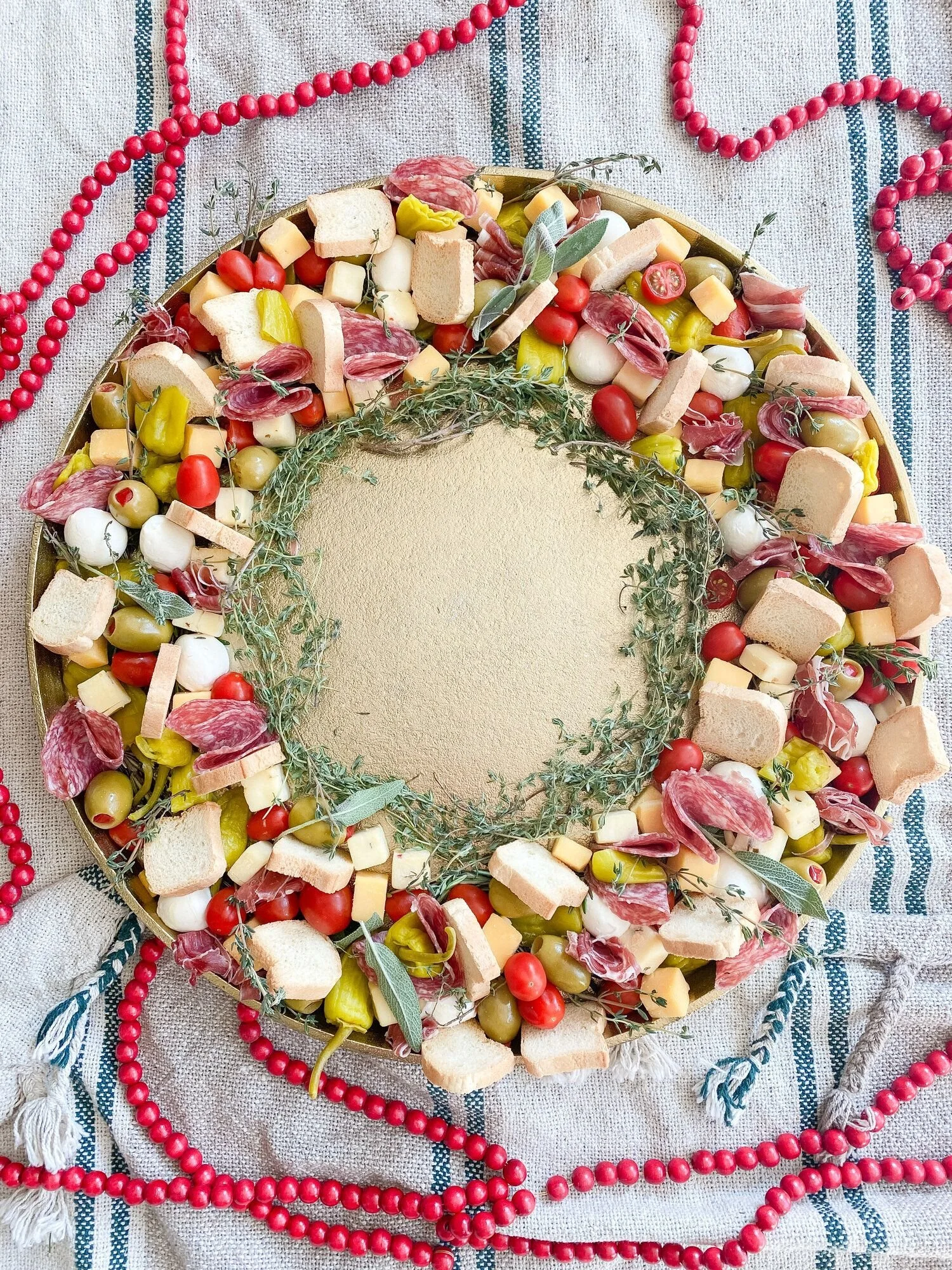 Whenever I'm entertaining during the holiday season, my go-to dish is a festive and colorful charcuterie board. Not only is this super quick and easy to make, but it is a perfect shareable dish for feeding a crowd. There's hardly any prep involved aside from a little slicing and arranging. A giant wood bread board or platter is the perfect base for serving your charcuterie and creating a stunning display that looks just as good as it tastes. Click here for this recipe.