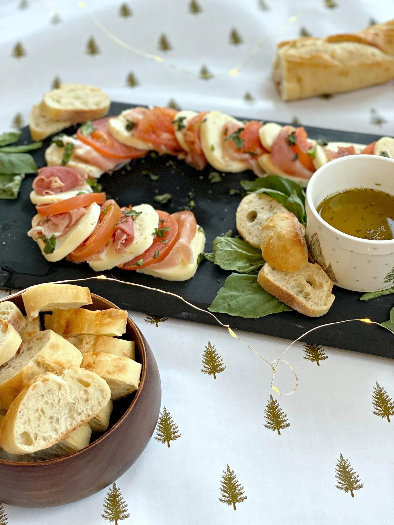 I’m sharing the quickest, easiest, and cutest holiday appetizer around- candy cane caprese! This is just like a traditional caprese except you make it in the shape of a candy cane for a festive holiday touch! I also added prosciutto to make it a little heartier (and even more delicious). It seriously doesn’t get much easier than this as far as holiday appetizers go and I promise all your guests will love eating this as well! Click here for this recipe.