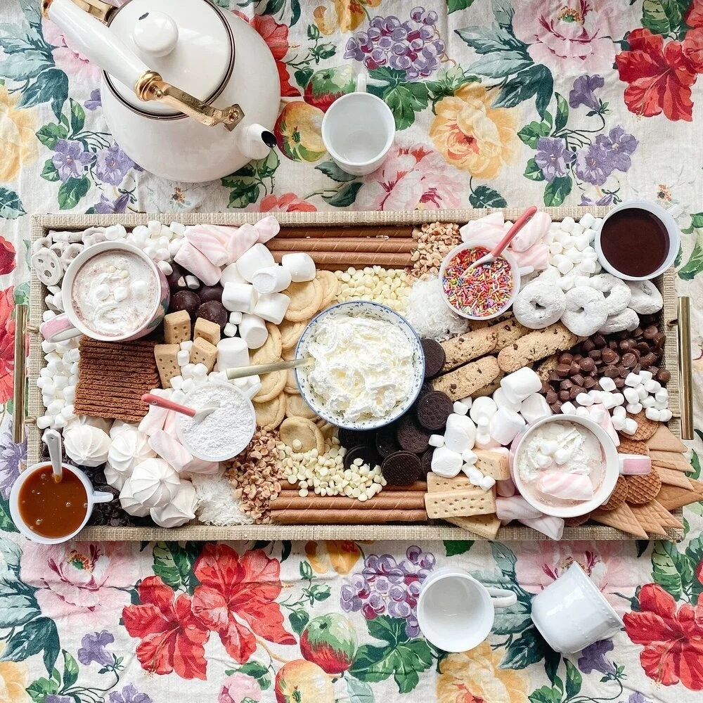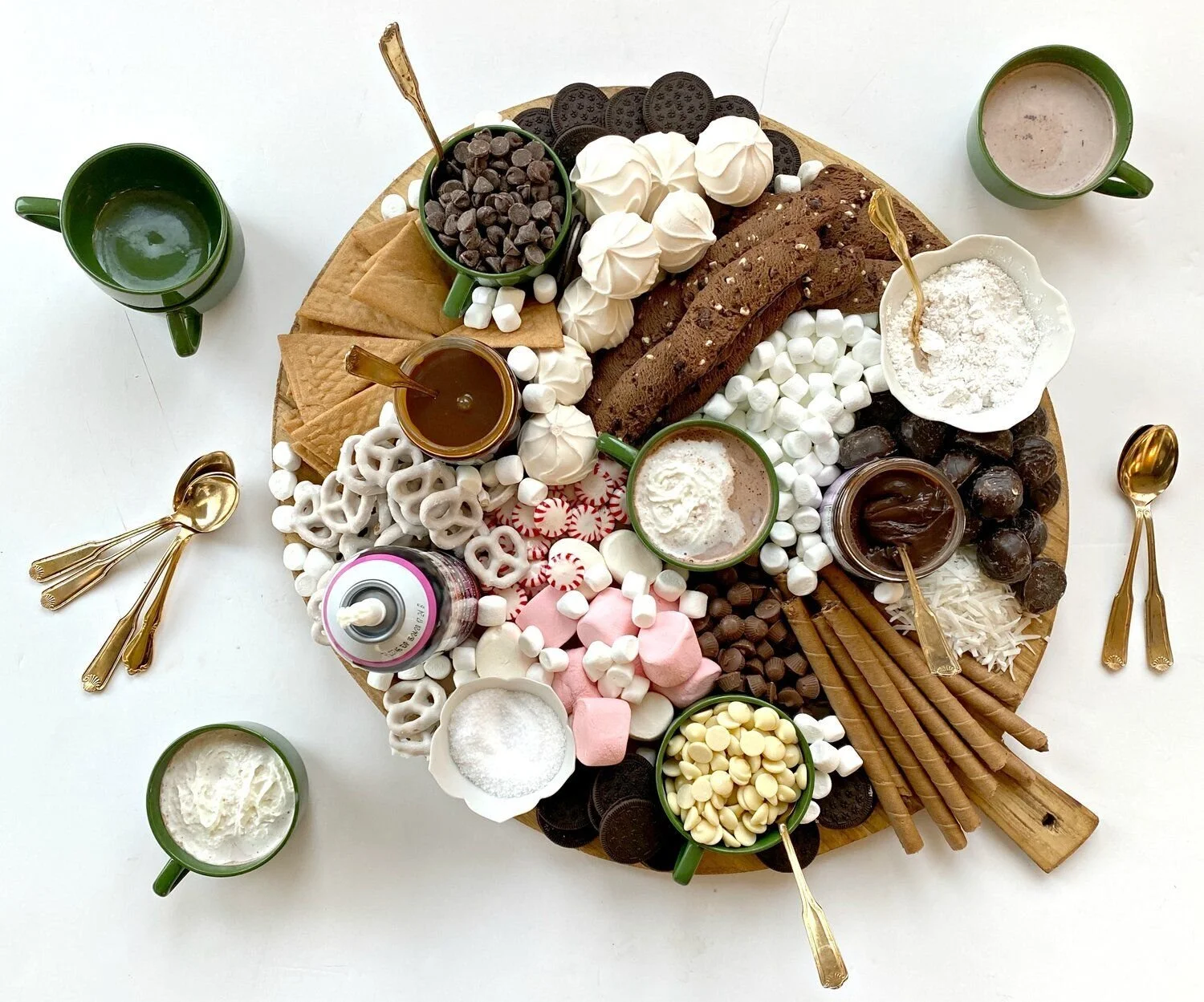 This is such a perfect winter treat full of toppings and treats to pair with your hot chocolate. I got everything for this board from Trader Joe’s and Kroger. This board can serve 8-10 people or more depending on how many toppings everyone wants! You can customize this too with a variety of different desserts and toppings- you definitely do not have to use everything listed or the exact same items either. Click here for this recipe.