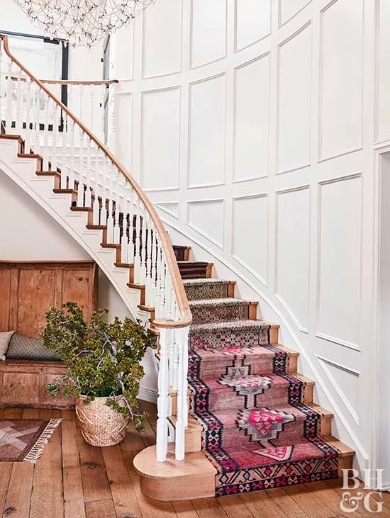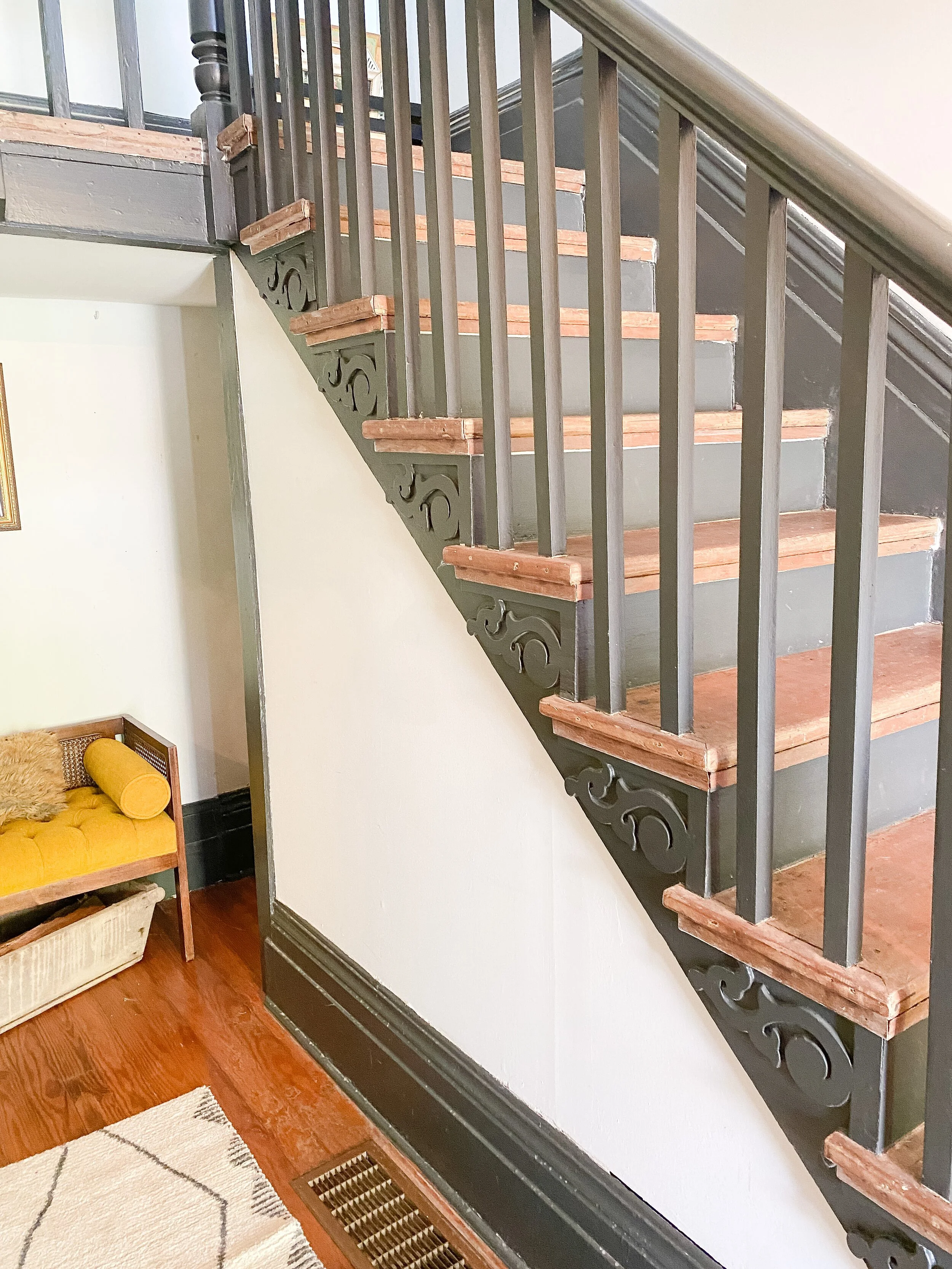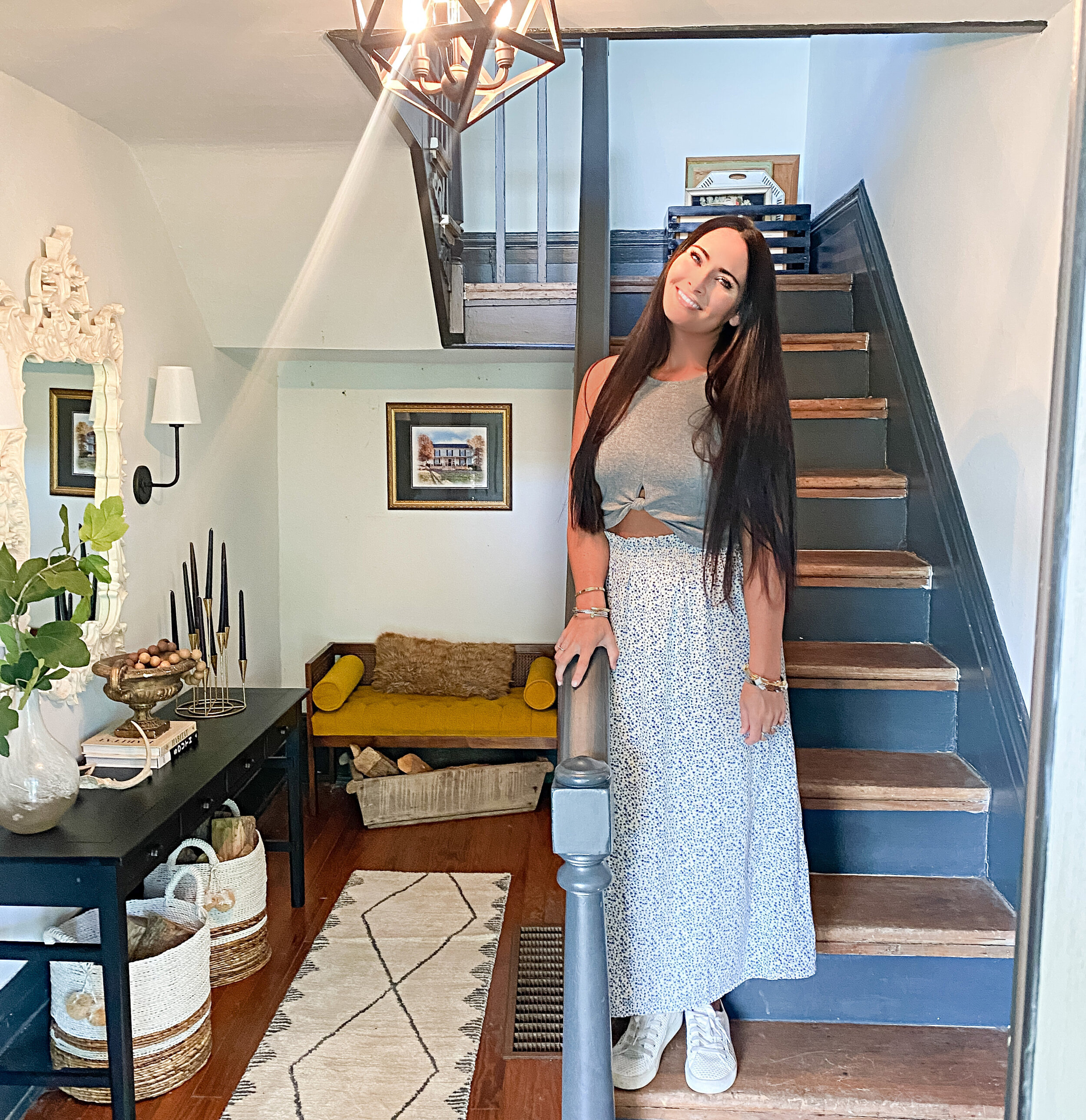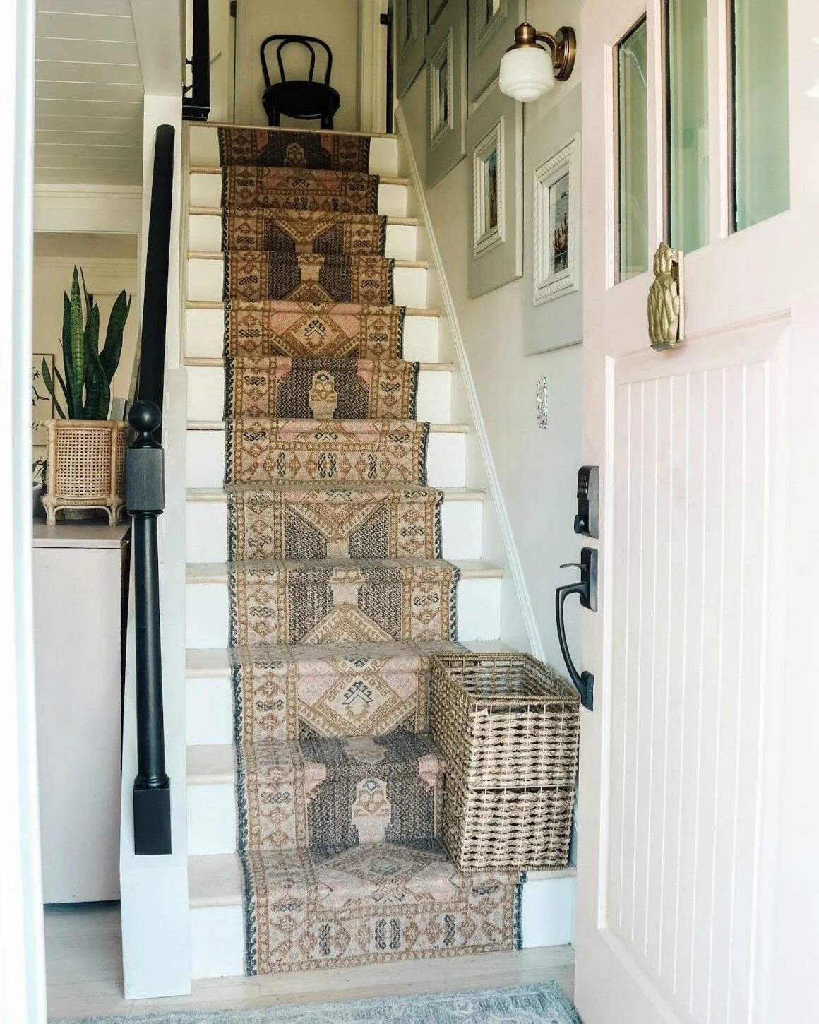 I first pinned this idea years ago and haven’t stopped thinking about it since. I think my entry was made for this pop of vintage print and color and it kind of combines all my favorite things. I have yet to decide if I’m going to attempt to DIY this or call in a professional carpet person for help. I’m going to do a little more research and see how difficult it looks. I mostly worry about my ability to keep it straight all the way down! I can’t wait to finally do this in our entryway and a stair runner is much needed as our hardwoods are very worn in this area.