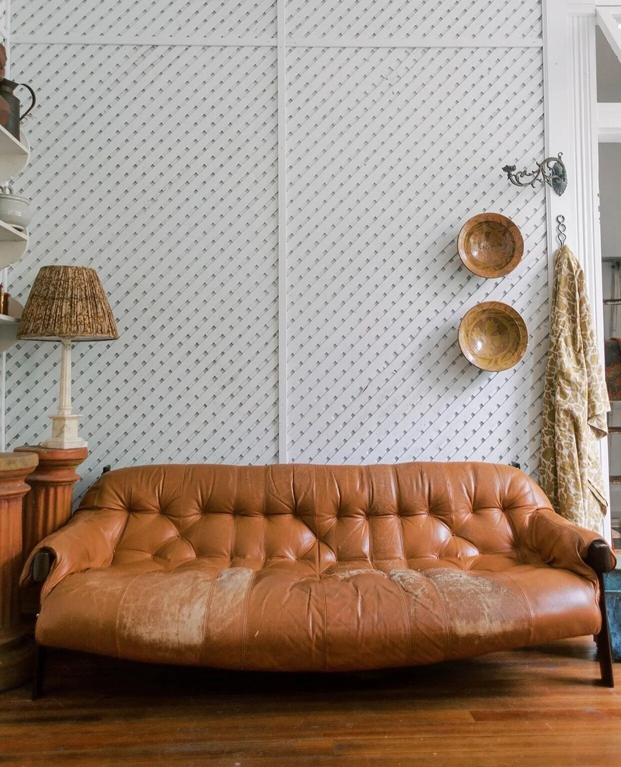 Wall treatments are going to make a huge impact in this space. Our walls are currently in horrible shape in this area especially- old plaster and very rough! I think adding some wall treatments like trim-work and wallpaper will really help this and also create a warmth this space needs. I am currently very drawn to this white trellis wall by Claire Brody. I think this could be a perfect accent for the space and really help cover those rough walls.
